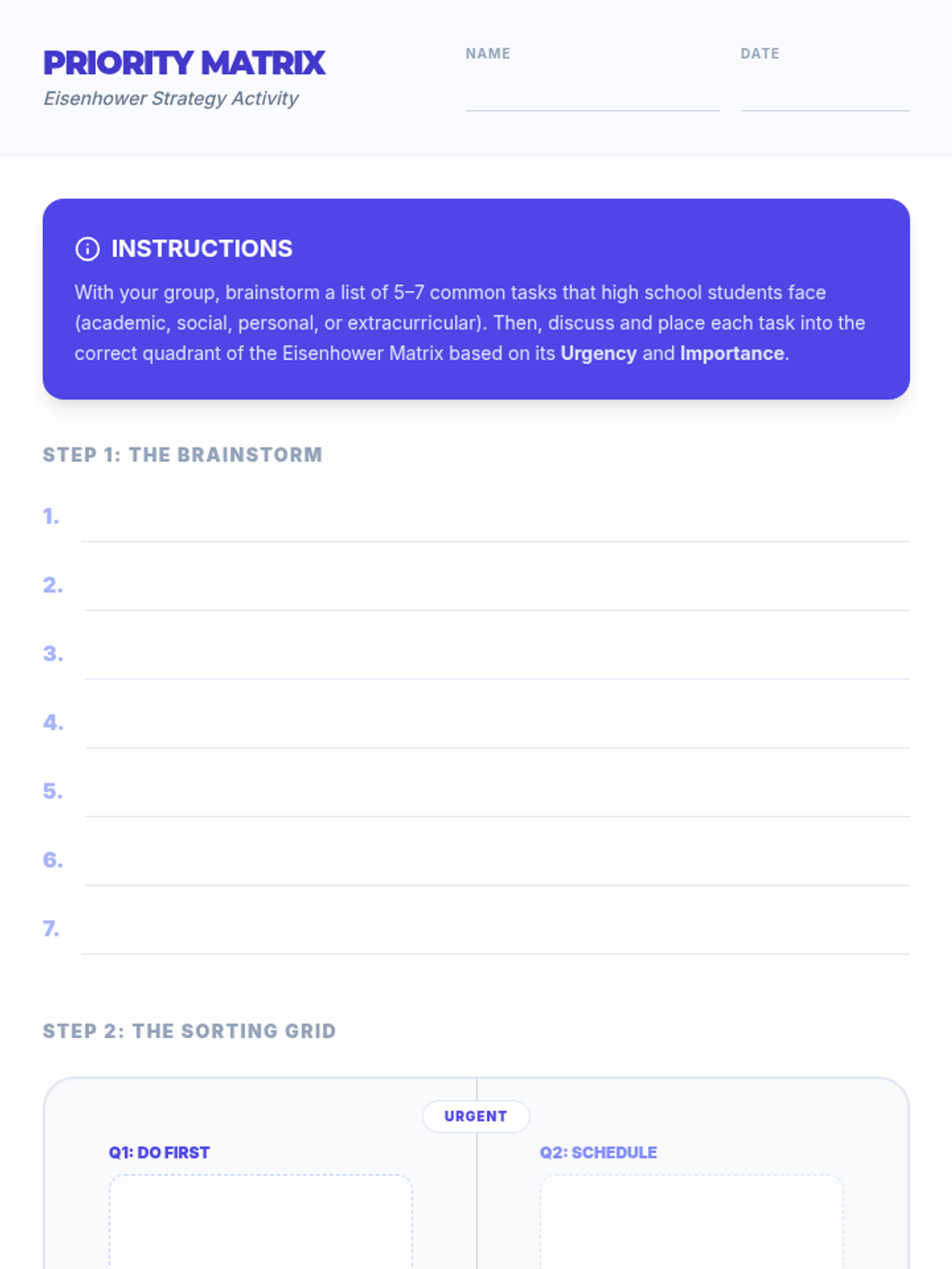 A high-impact 5-lesson sequence designed for credit-deficient high school sophomores to reclaim their academic path. The curriculum reframes impulse control as a strategic 'power move' for achieving independence, career success, and graduation through cognitive discipline and environmental awareness.