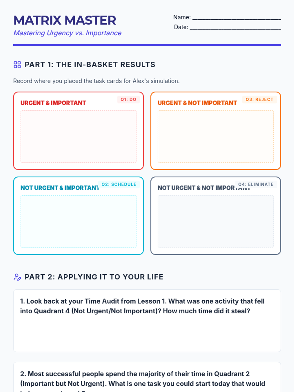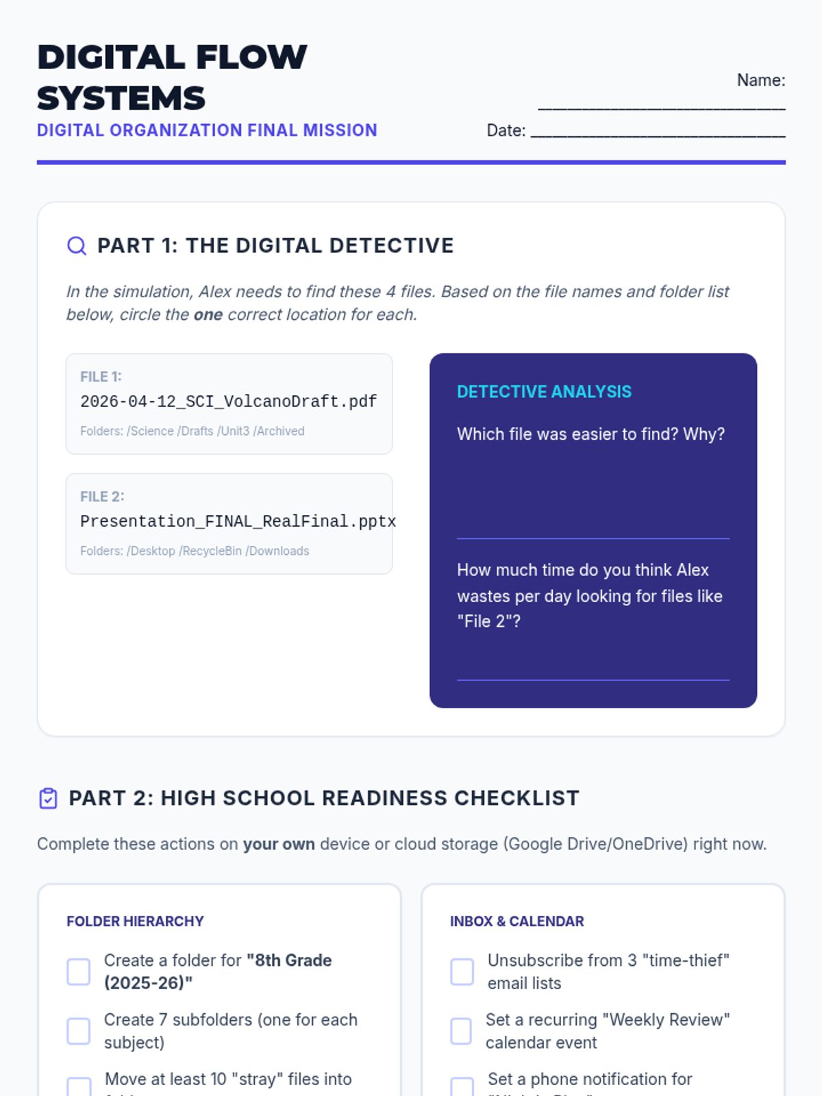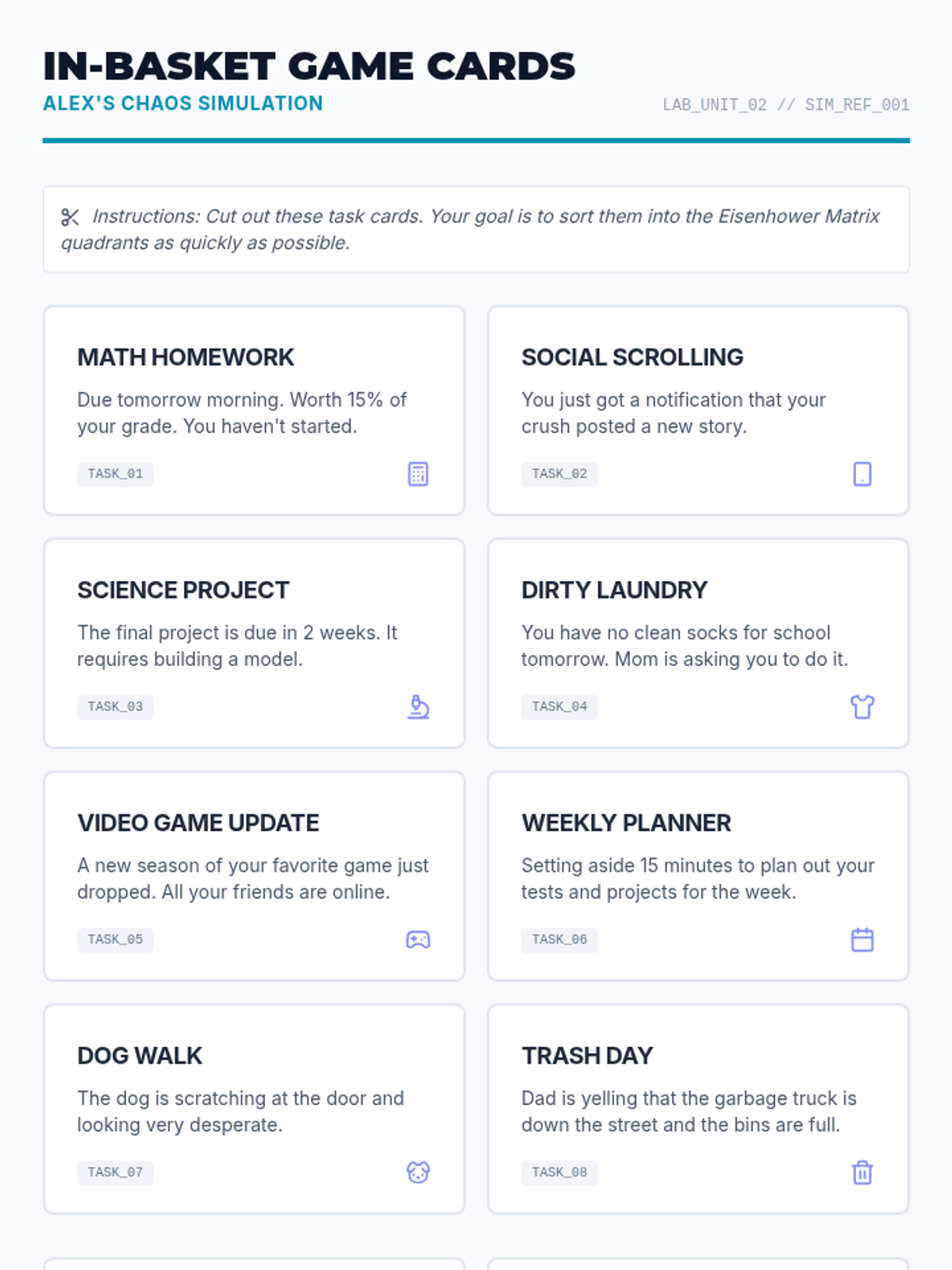 A comprehensive 5-lesson unit designed to equip 8th-grade students with essential executive function skills. Students transition from passive observers of their time to active managers of their academic and personal lives through data analysis, strategic prioritization, and environmental design.