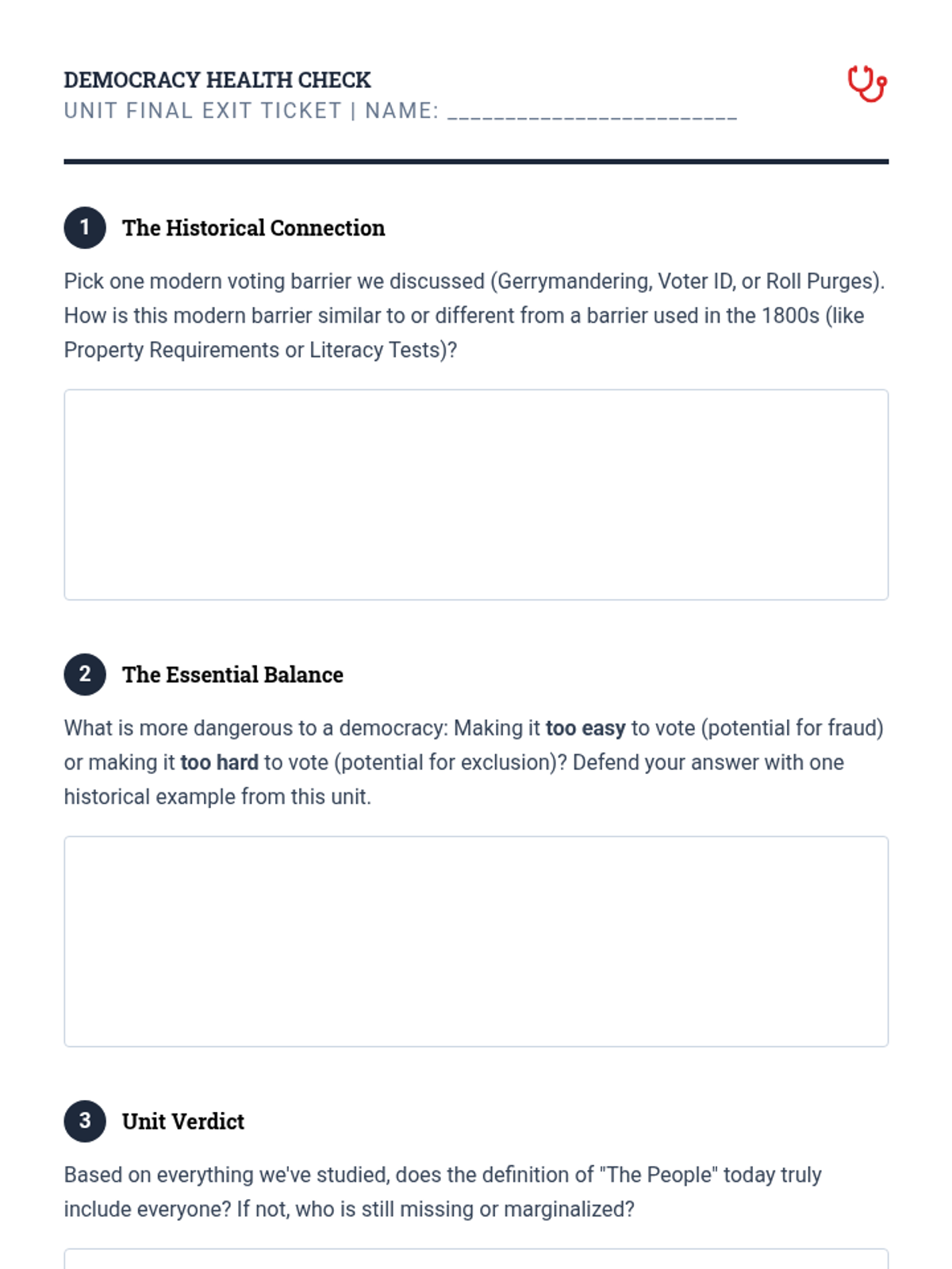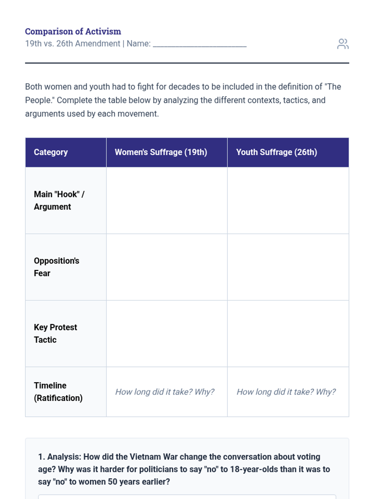 This historical analysis sequence tracks the evolution of the electorate, examining how the definition of 'citizen' has expanded over time through amendments and activism. Students explore the struggle for suffrage faced by various groups and analyze the tools used to disenfranchise voters.