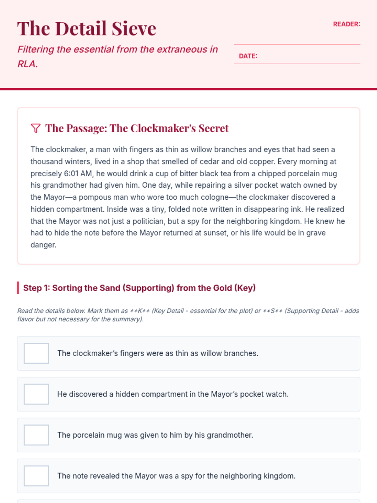 A comprehensive intervention program designed for high school students to master summarization across RLA and Social Studies. The sequence focuses on identifying main ideas, using signal words, and distinguishing between key and supporting details through discipline-specific texts.