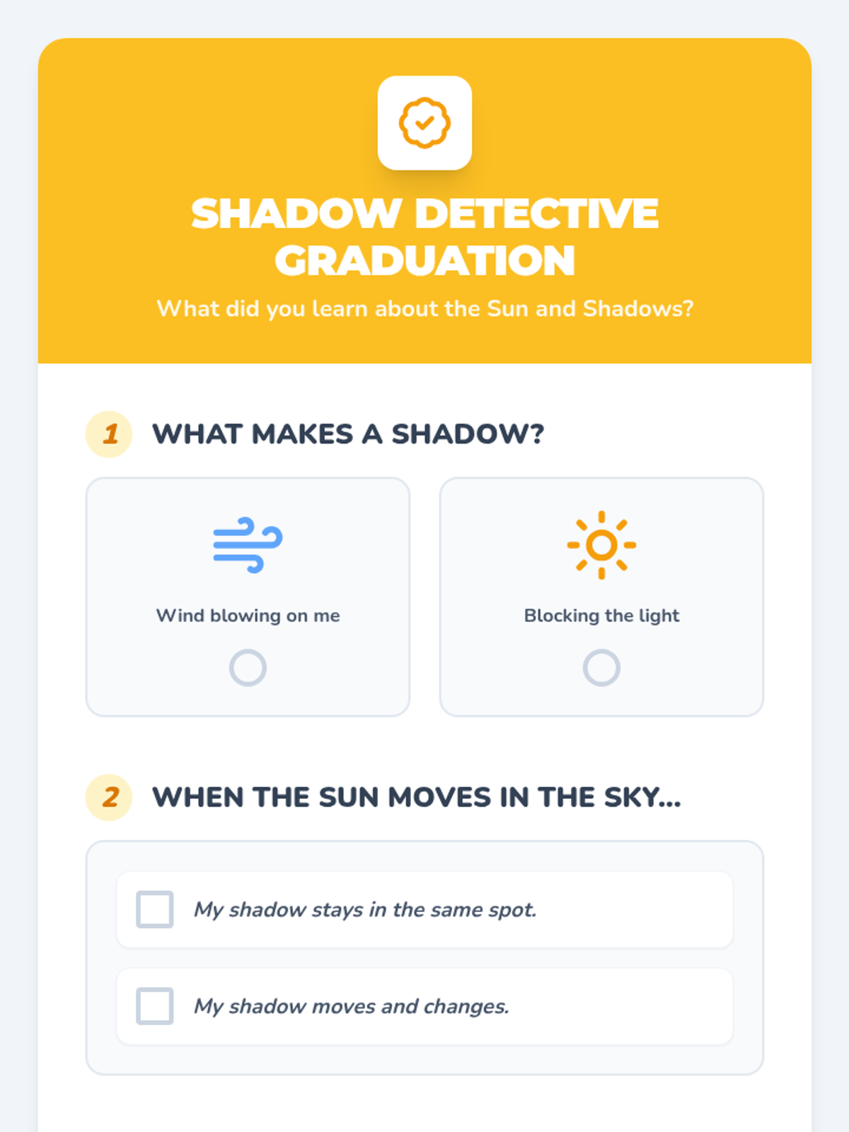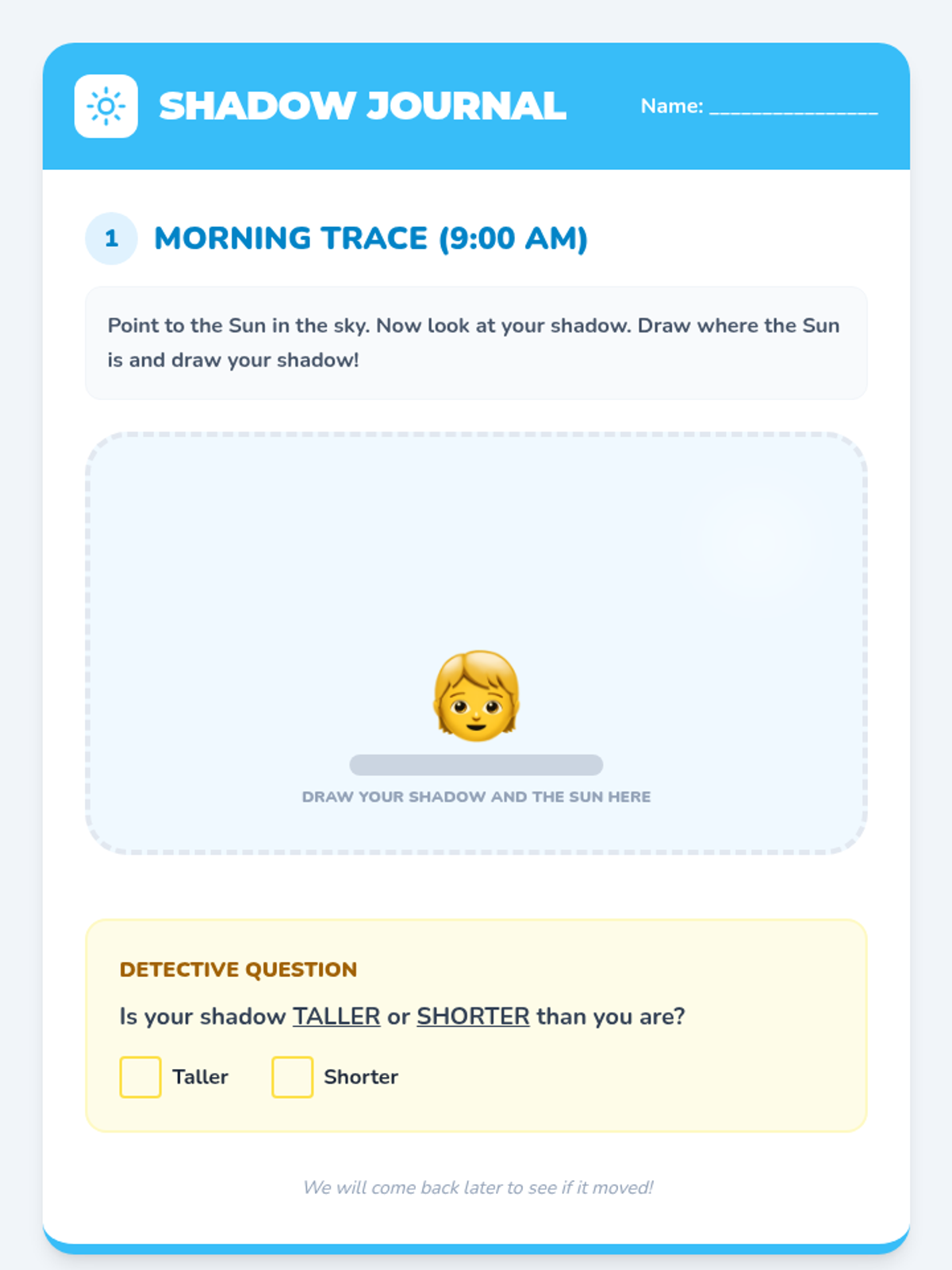 A hands-on exploration for Kindergarteners to discover how shadows are formed and how they change based on the Sun's position in the sky, concluding with the Sun's role as a heat source.