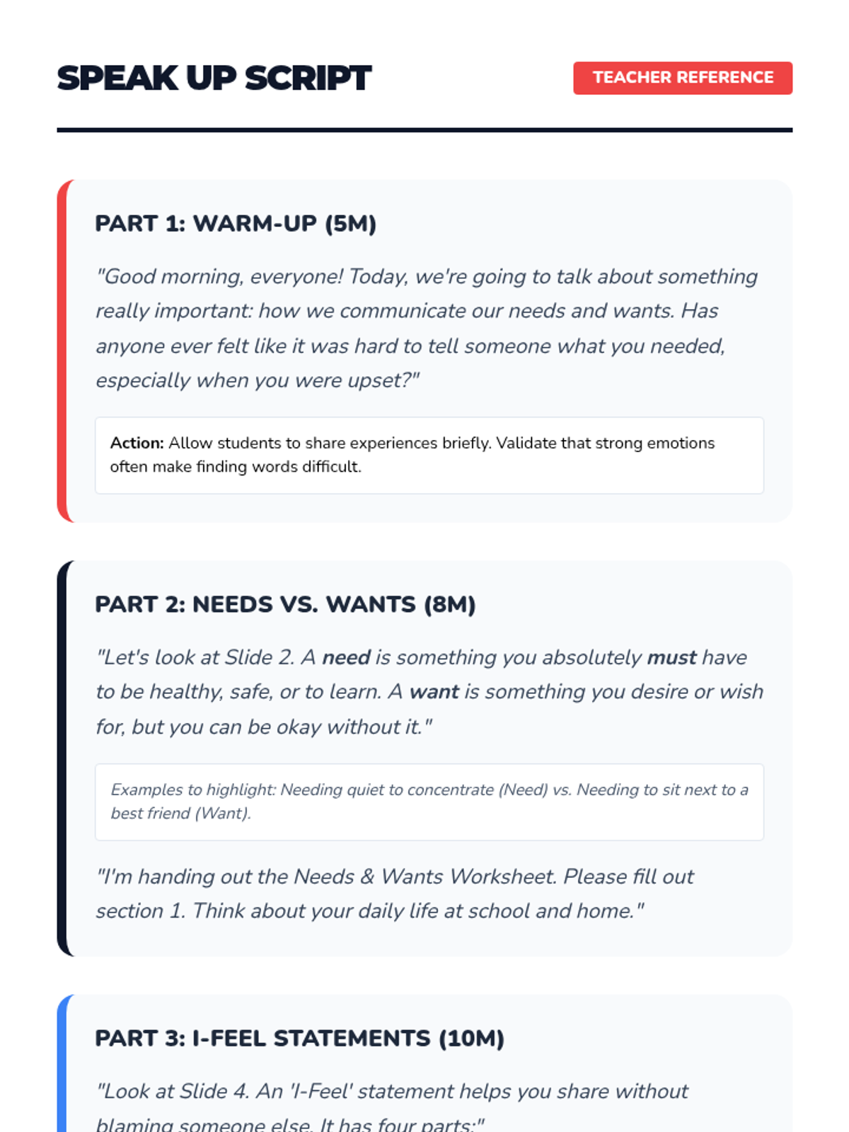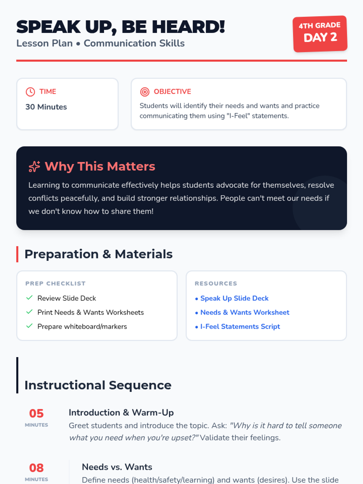 A multi-day social-emotional learning sequence that teaches students how to identify, manage, and communicate difficult emotions like anger and conflict using the metaphor of an 'Emotional Backpack'. Designed with high-visual support for EAL and neurodivergent learners.