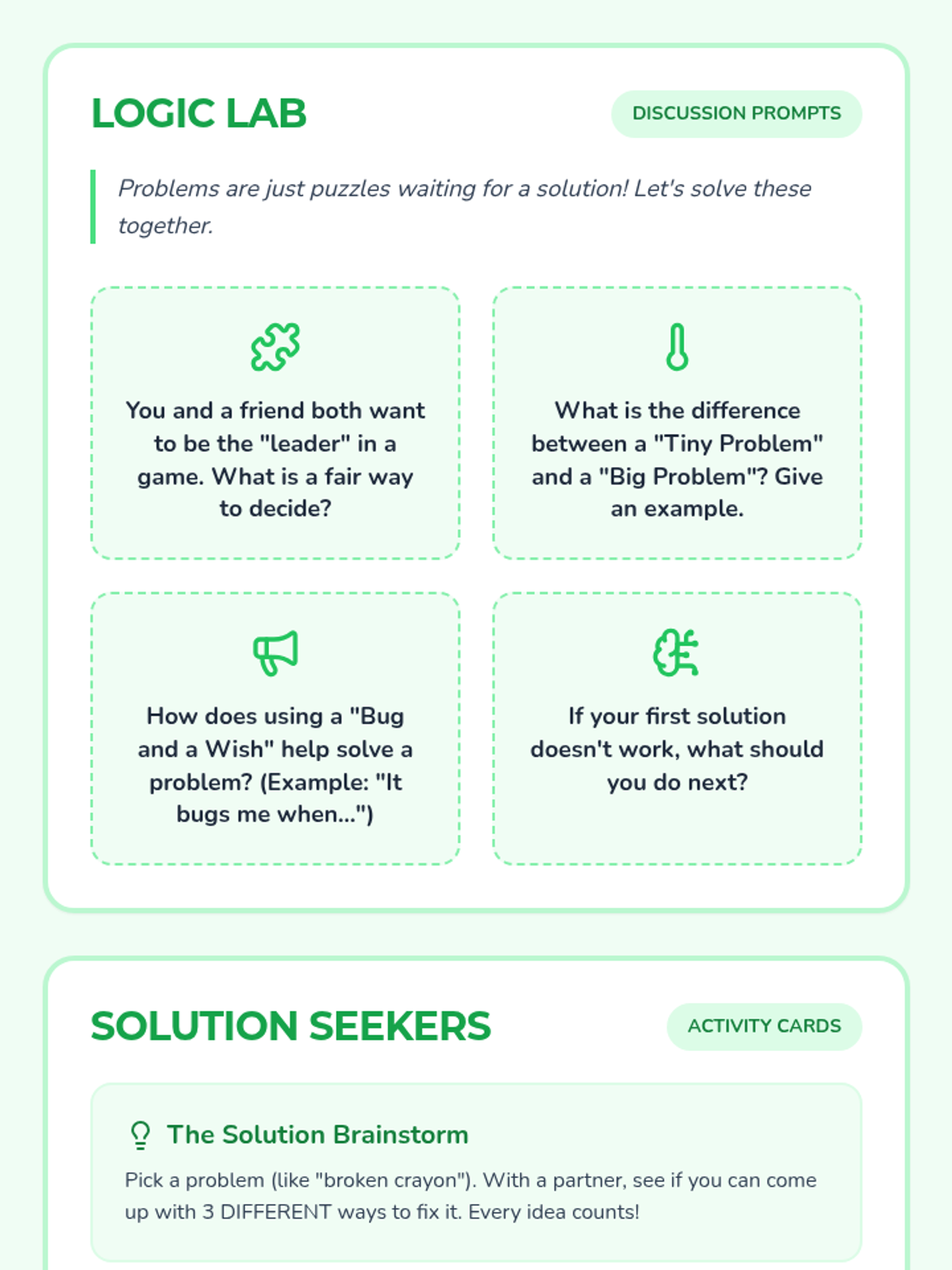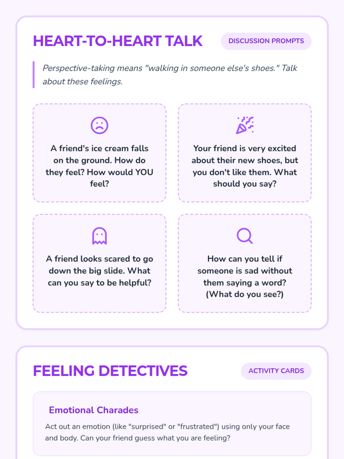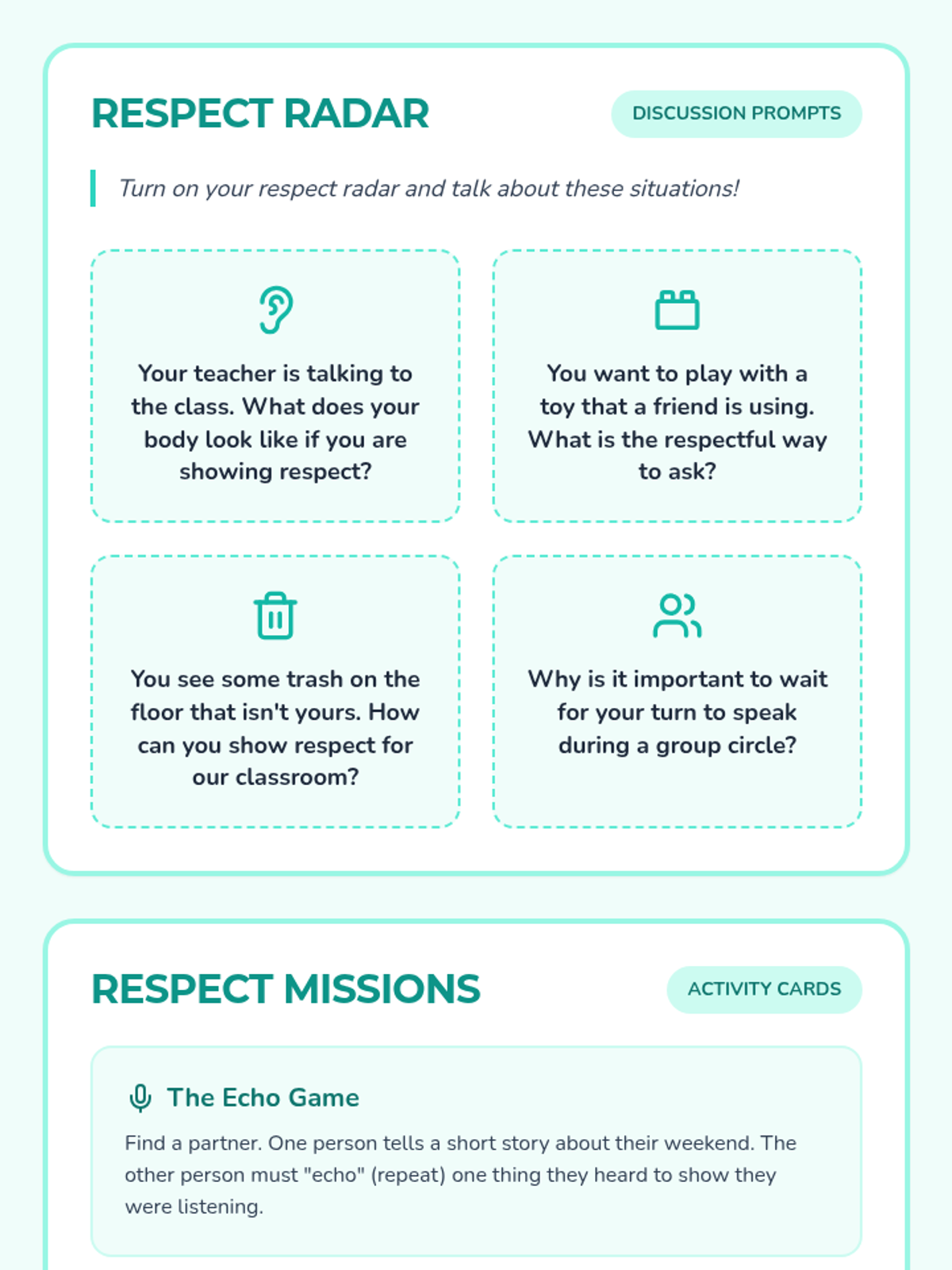 A comprehensive social-emotional learning sequence for first graders, focusing on building advanced skills in kindness, respect, peer interaction, empathy, sportsmanship, and conflict resolution. This sequence provides Tier 2 support through hands-on activities, discussion-based learning, and reflective worksheets.