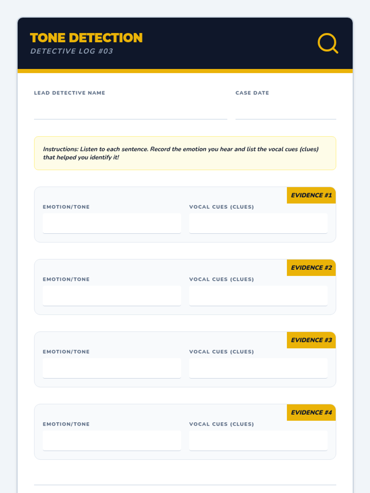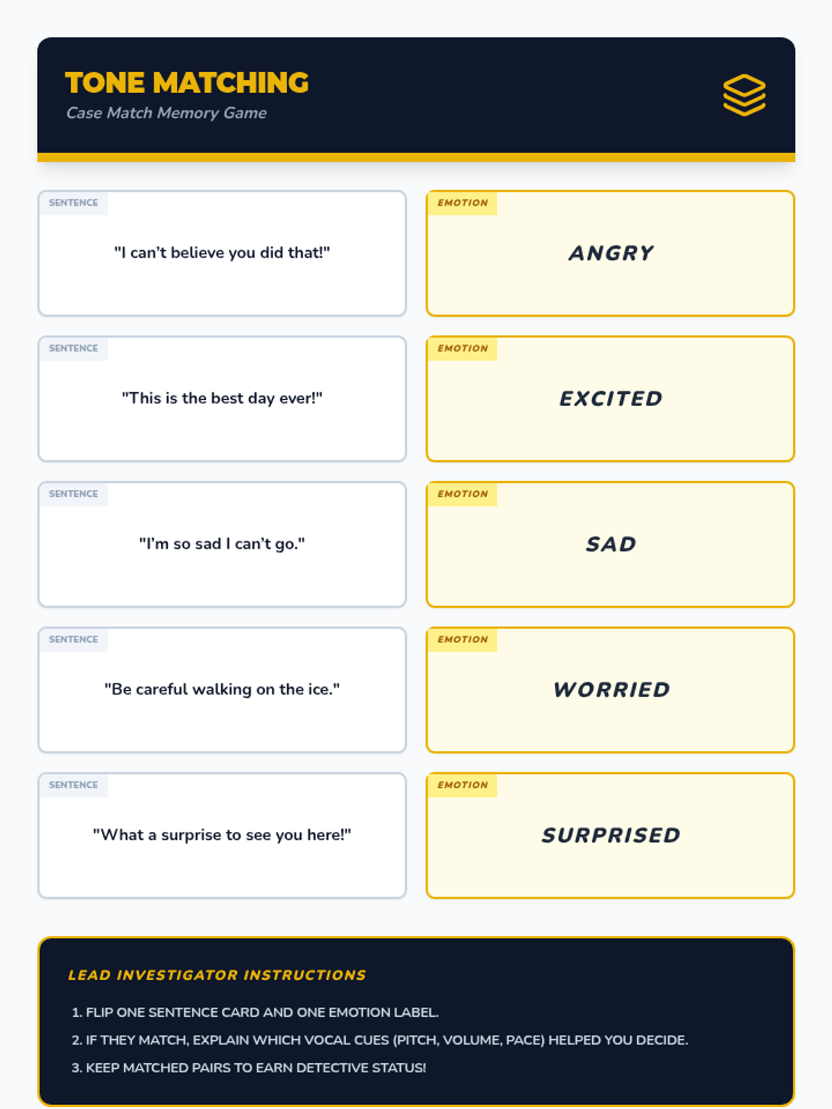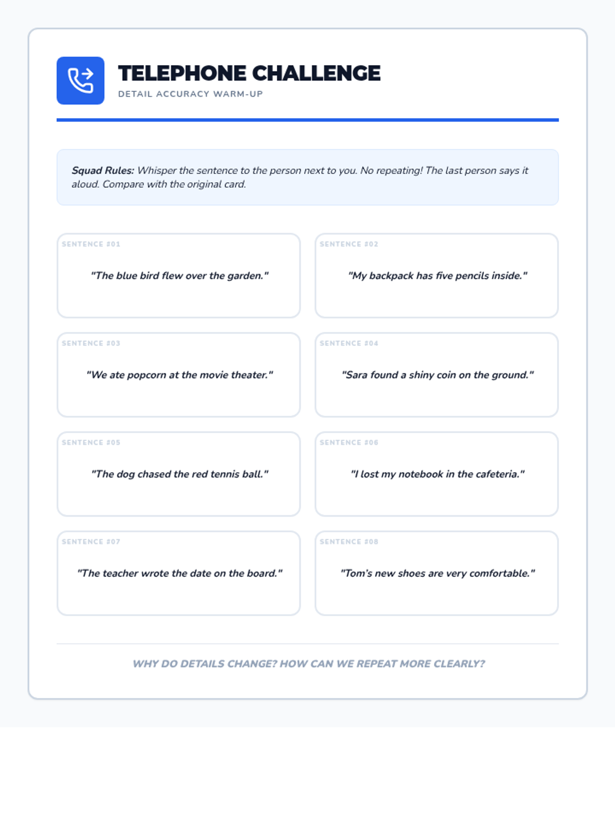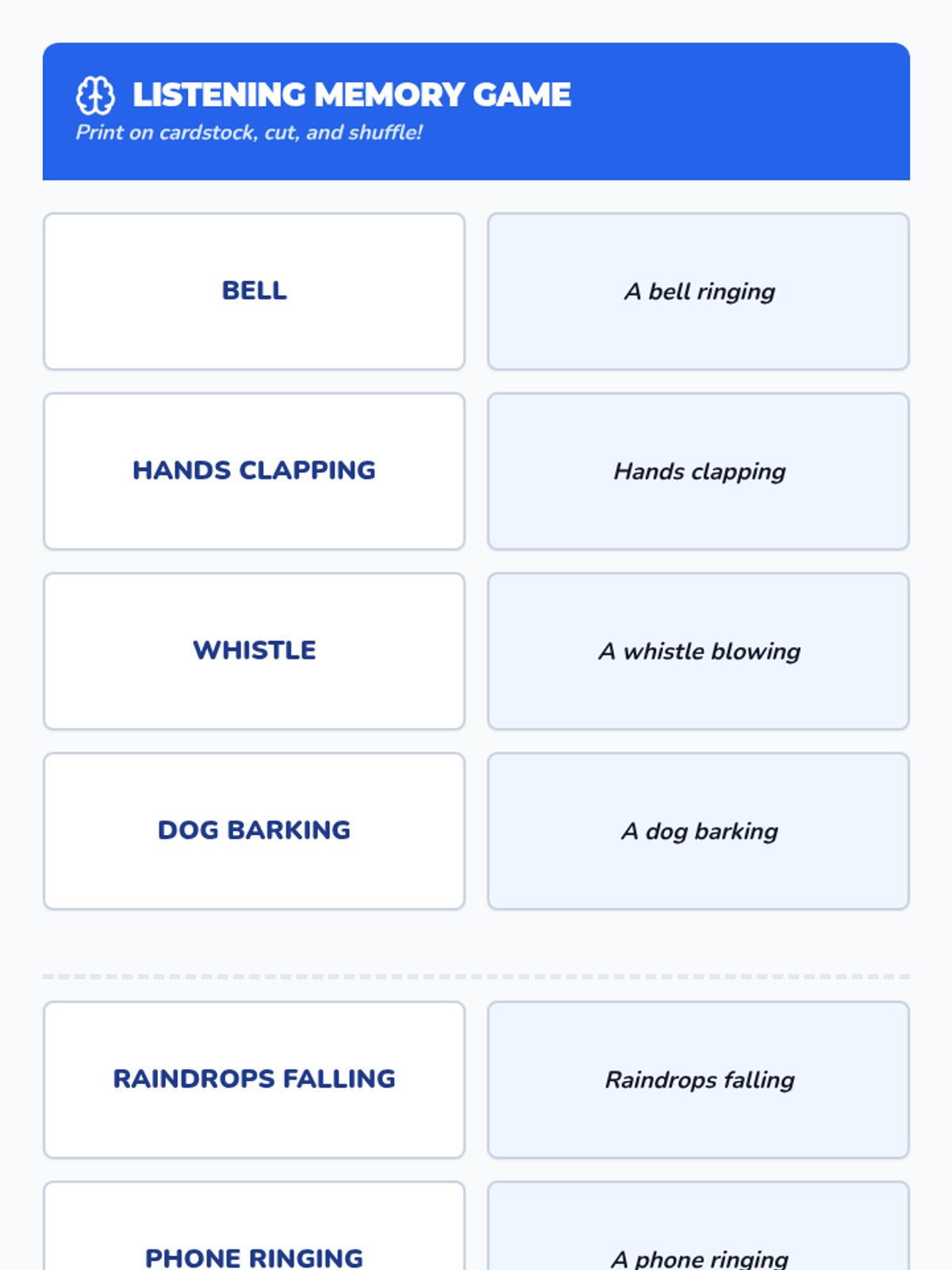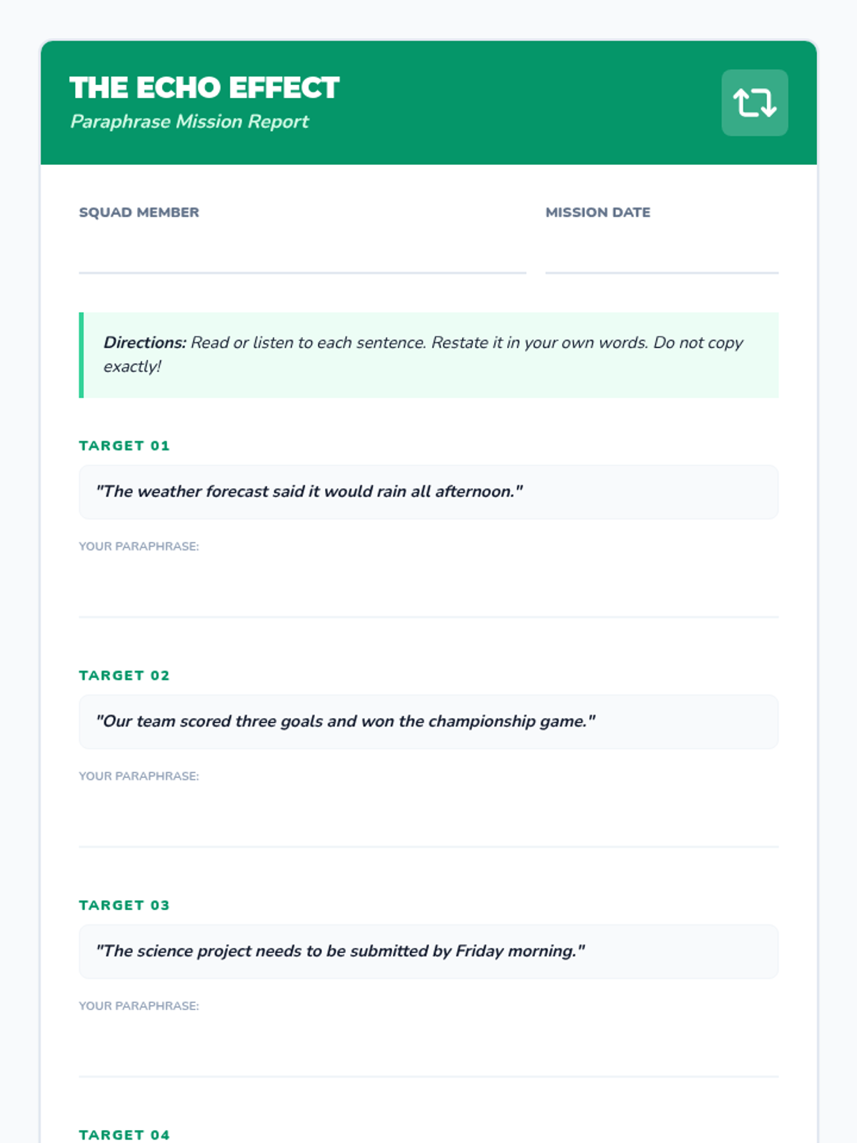 A 5-session unit for middle school special education students to build key listening skills, including active listening, paraphrasing, tone detection, and following multi-step directions through interactive games and structured practice.