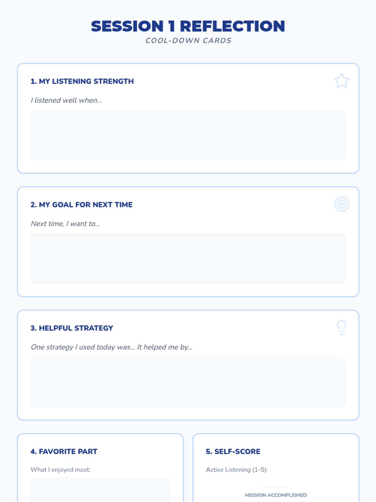 An 8-session executive functioning group for middle schoolers covering planning, organization, and time management. Each session is designed for a 20-minute small group format, providing practical tools and reflective practices.