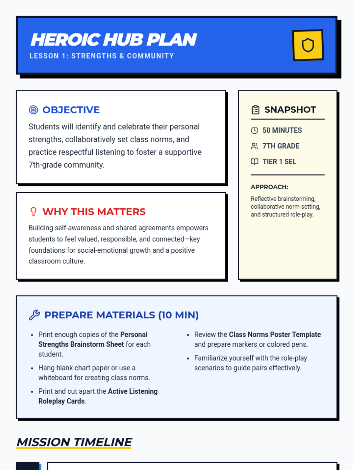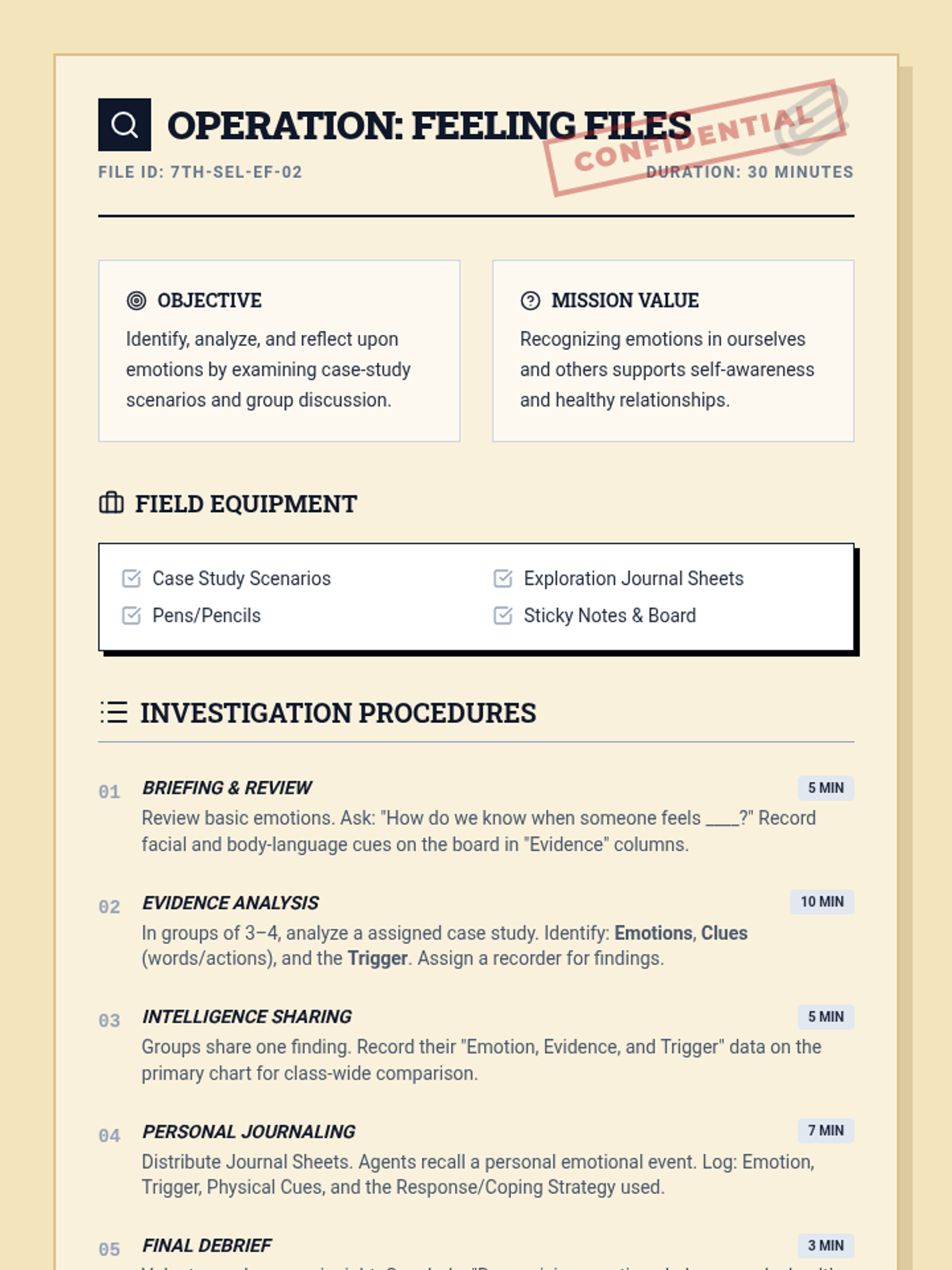 A comprehensive SEL sequence designed for 7th graders to build self-awareness, establish classroom norms, and develop emotional literacy through strengths-based activities and case studies. Includes an additional module for early childhood emotion recognition.