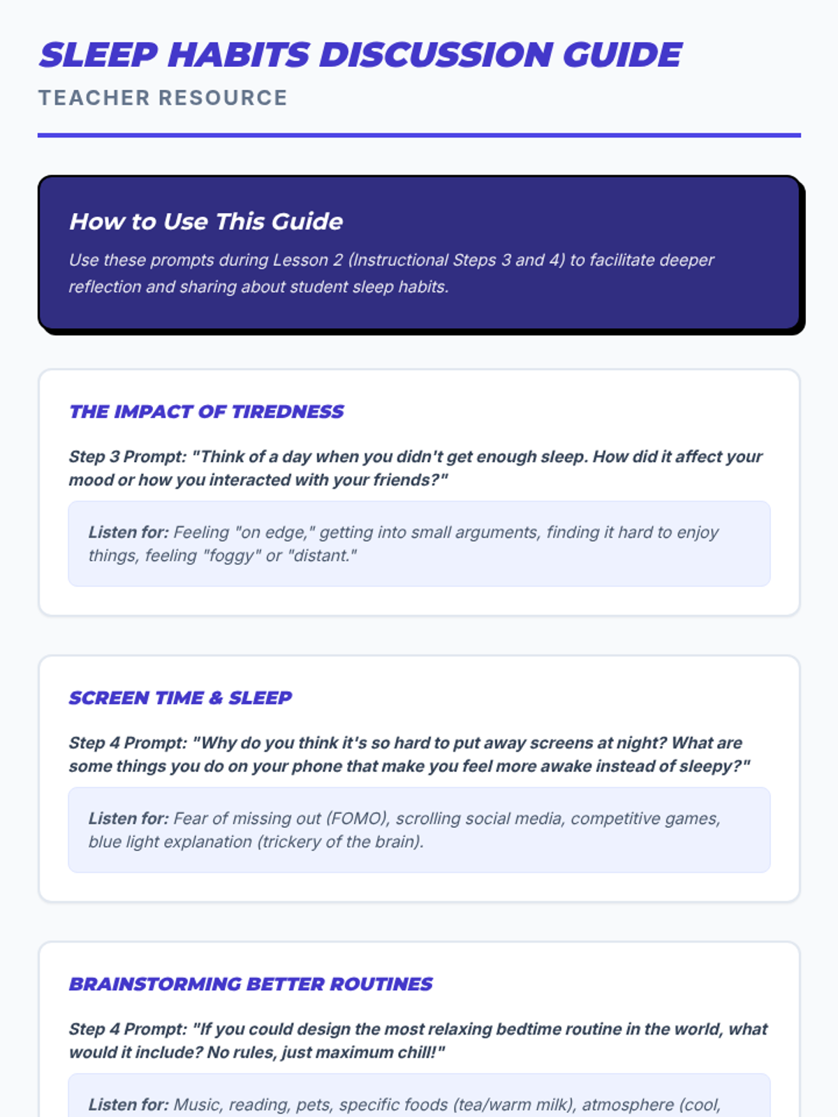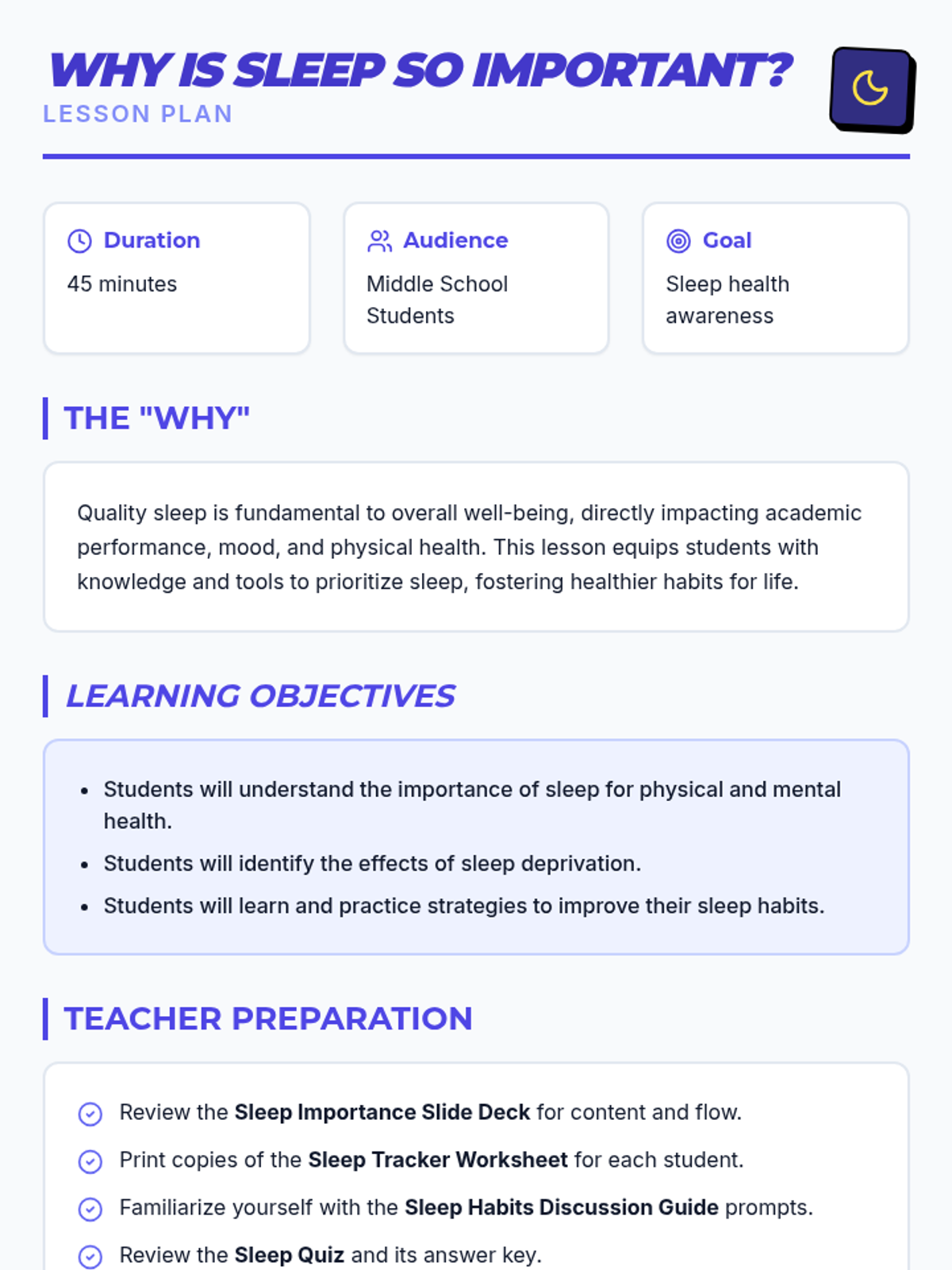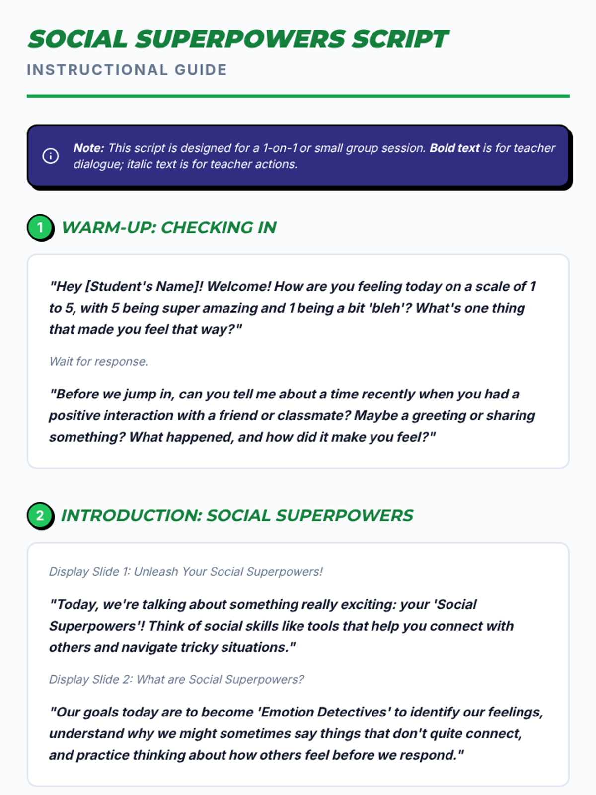 A comprehensive sequence of lessons designed to help middle school students identify personal strengths, understand the importance of sleep, and develop social skills using a superhero-themed 'superpower' framework.