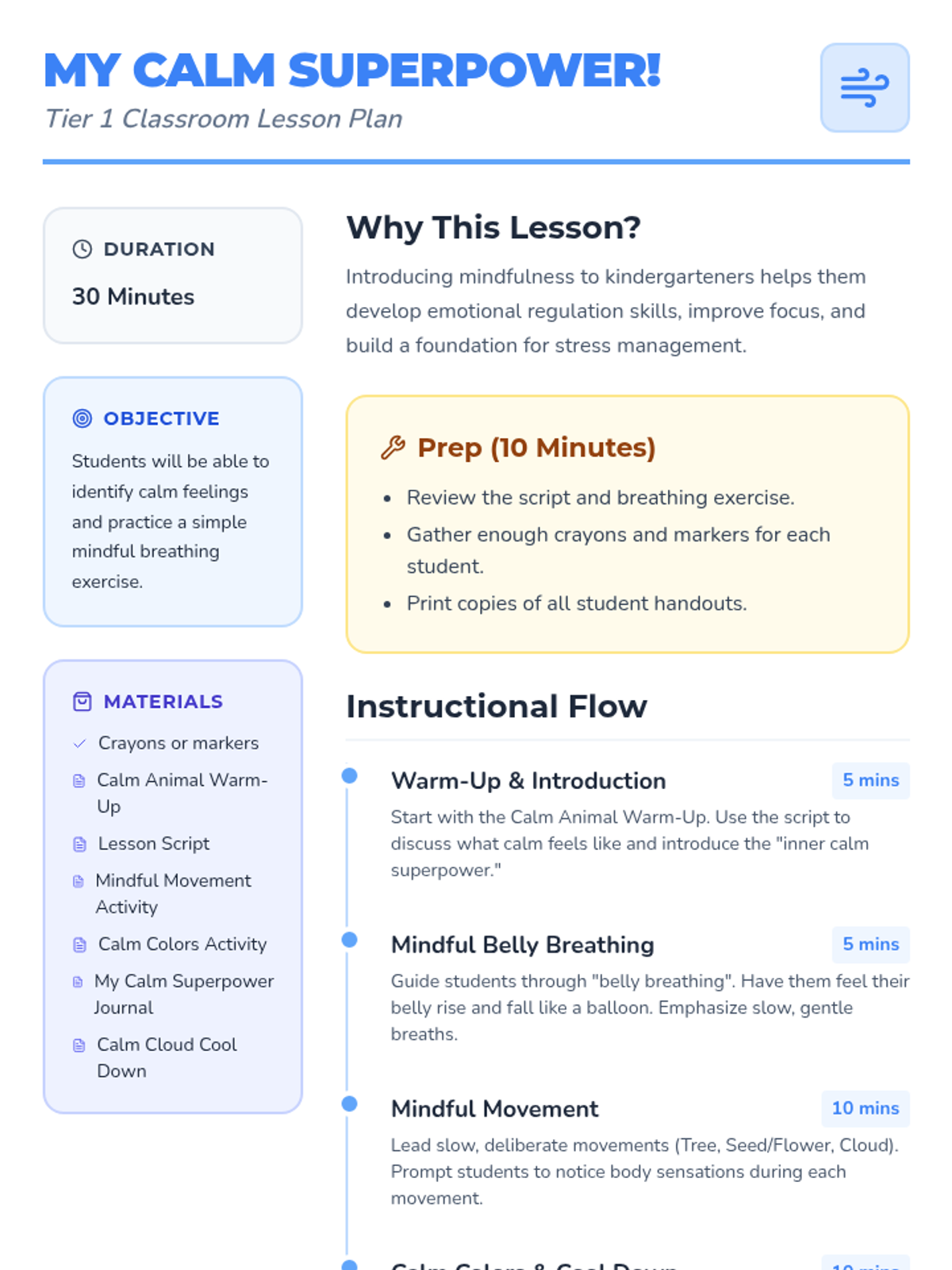 A comprehensive social-emotional learning sequence that guides students from Kindergarten through 5th Grade in exploring emotions, mindfulness, self-confidence, and kindness.