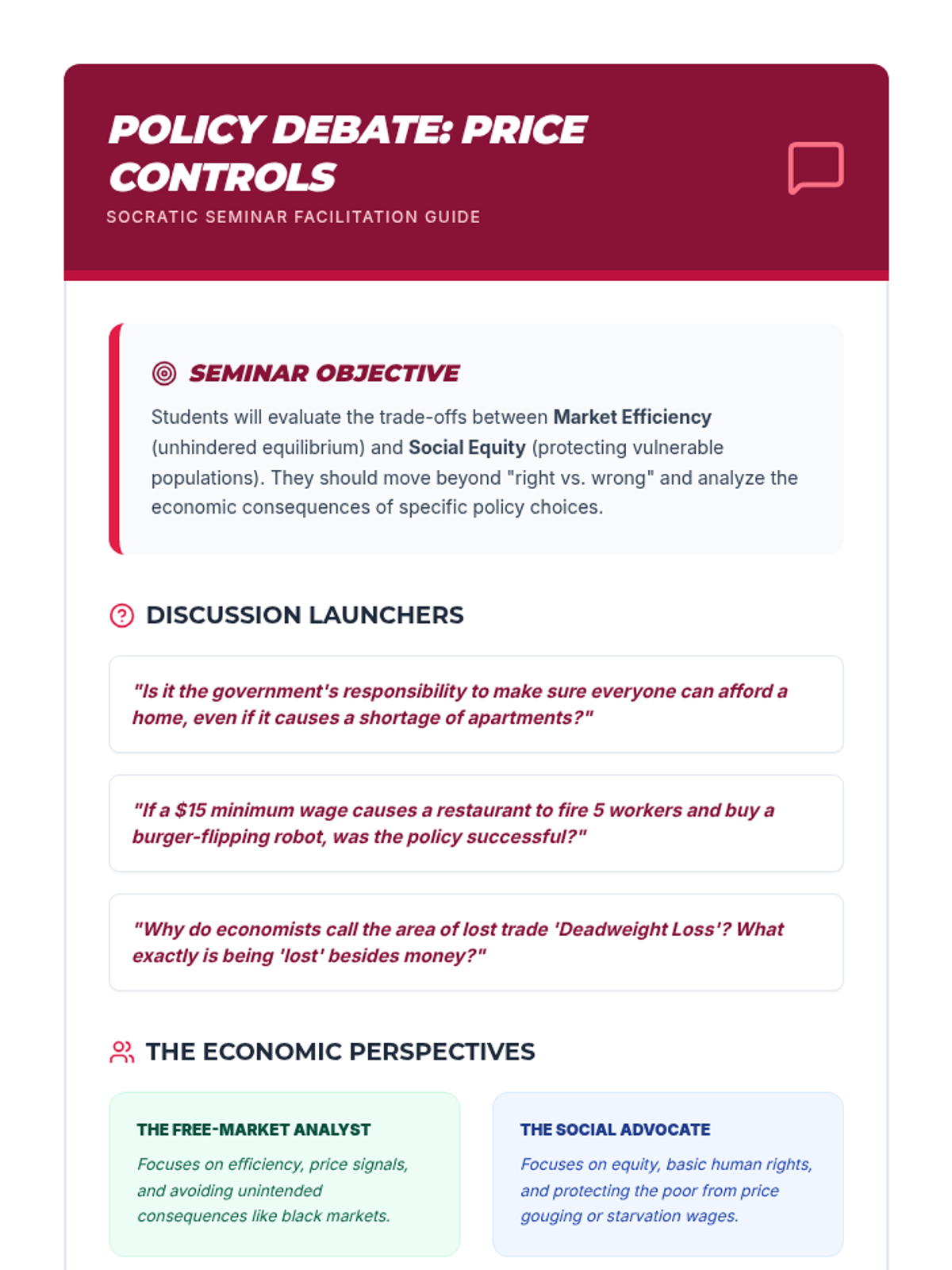 A comprehensive unit on the mechanics of microeconomics, covering the laws of supply and demand, market equilibrium, and the impact of price controls. Students will learn to graph and analyze market behavior using real-world scenarios and simulations.
