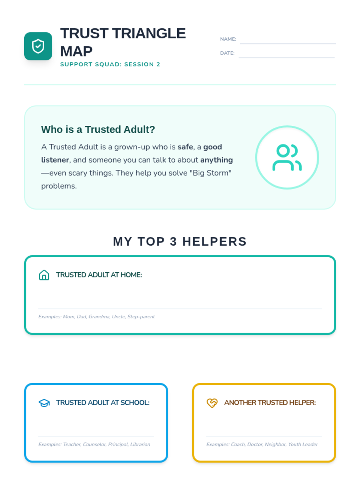 This sequence helps 3rd-grade students build a foundation for mental health awareness by identifying personal support networks, understanding the role of school counselors, and practicing communication skills for asking for help. Students learn to distinguish between small problems and big challenges while creating a concrete safety plan for emotional well-being.