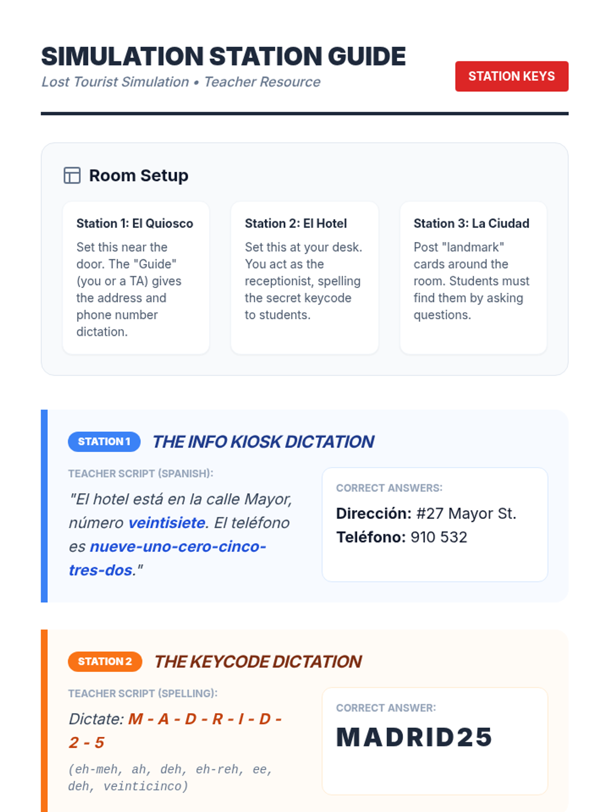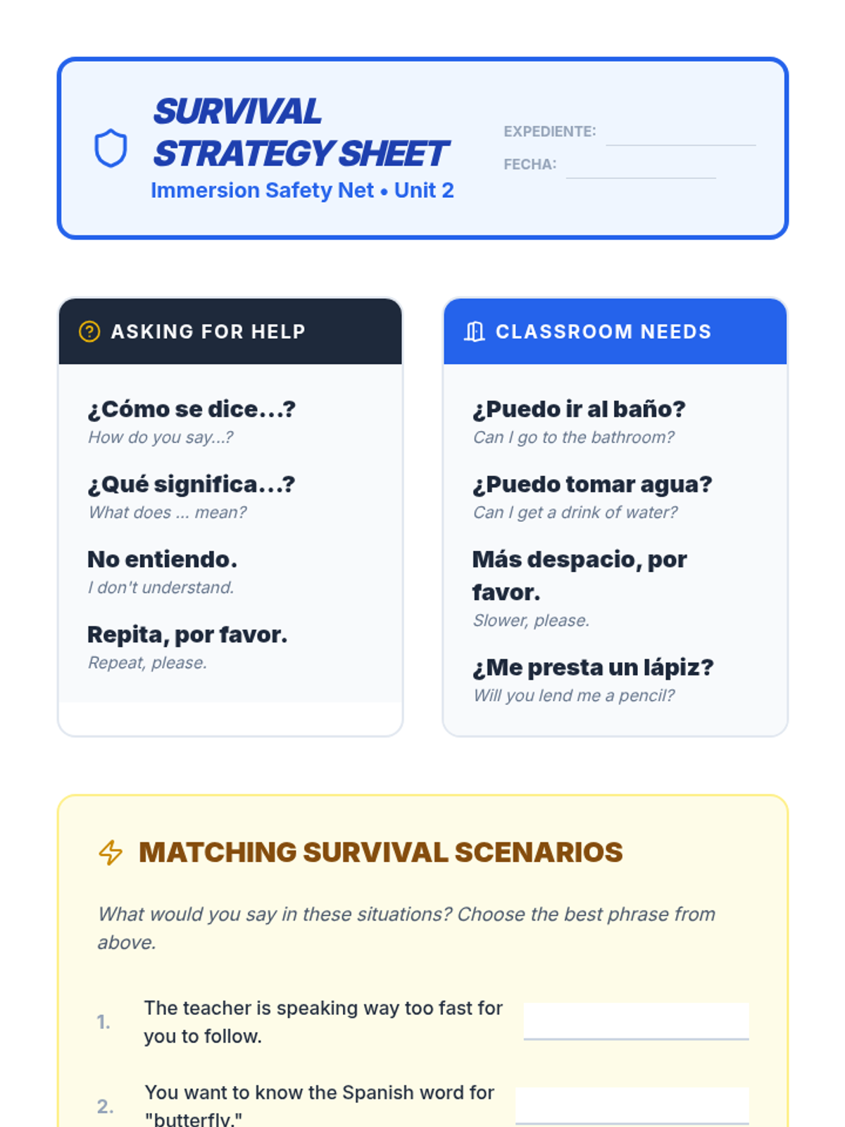 This sequence equips 9th-grade students with high-frequency Spanish survival vocabulary and communication strategies. Students progress from numbers and the alphabet to complex interrogatives, culminating in a real-world 'Lost Tourist' simulation that tests their ability to navigate an immersion environment.