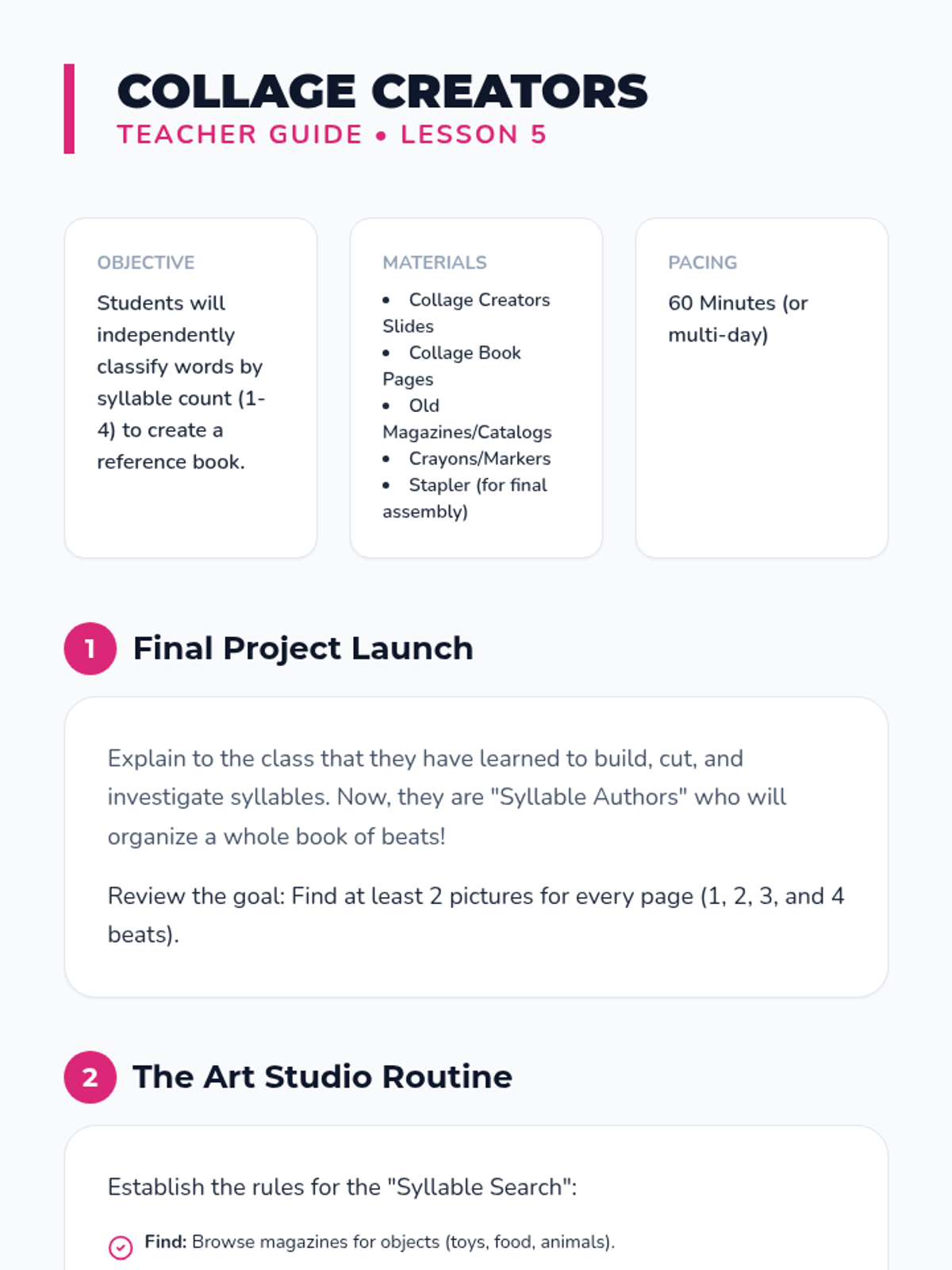A comprehensive workshop-style unit for 6th Grade ESL students focused on the linguistic mechanics of paraphrasing and synthesizing information. Students move from identifying core concepts to orally retelling information, transforming individual sentences, and finally weaving multiple sources into a single coherent paragraph without plagiarizing.