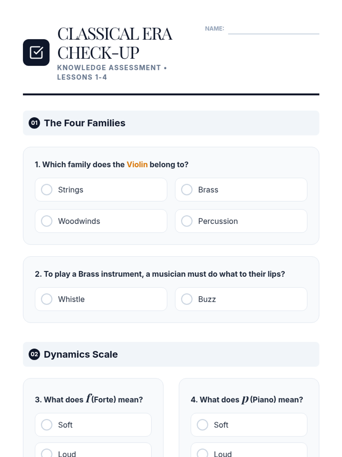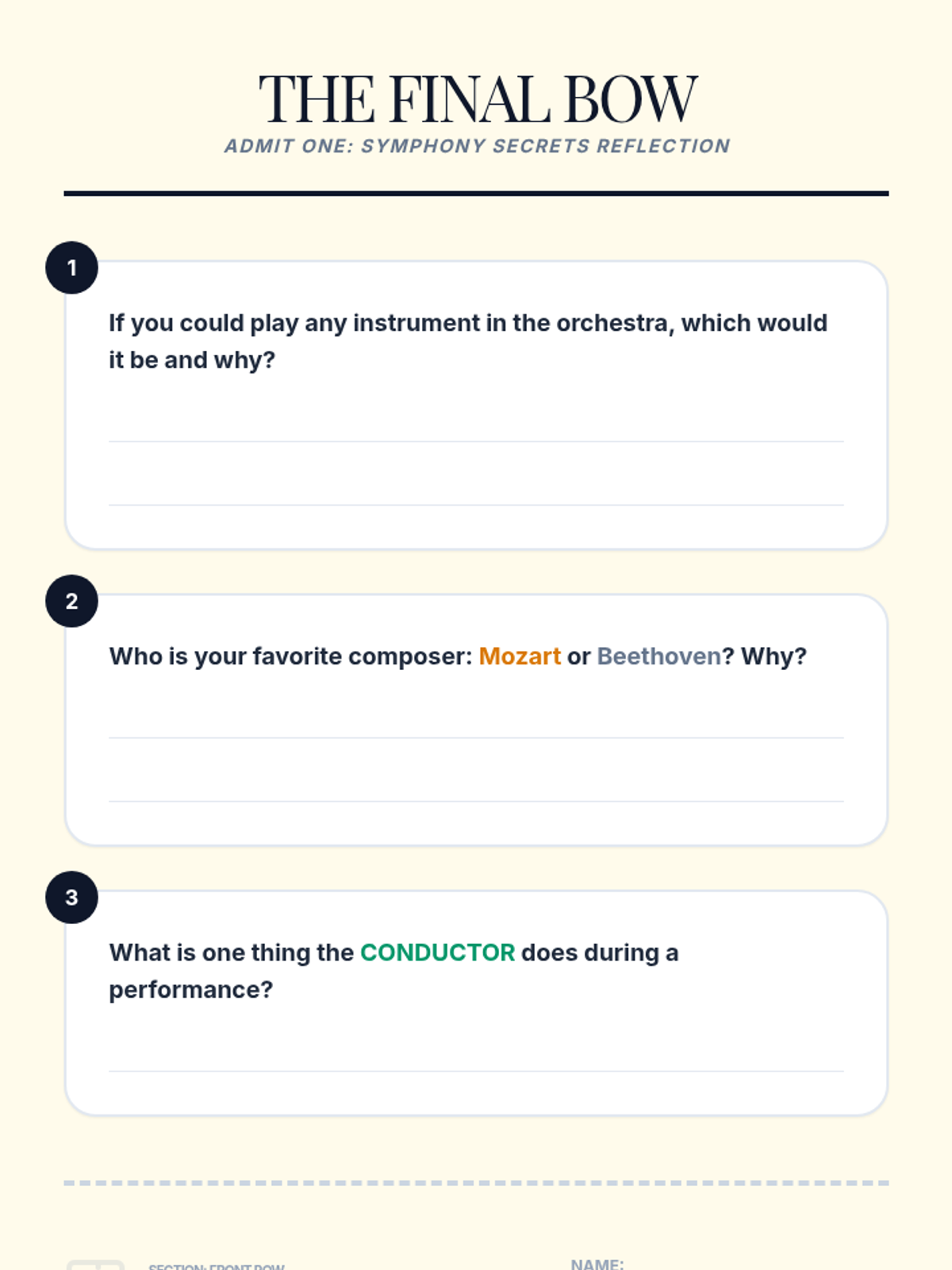 A comprehensive introduction to the orchestra and the Classical era for 3rd graders, covering instrument families, specific sections, key composers (Mozart and Beethoven), and the art of conducting.