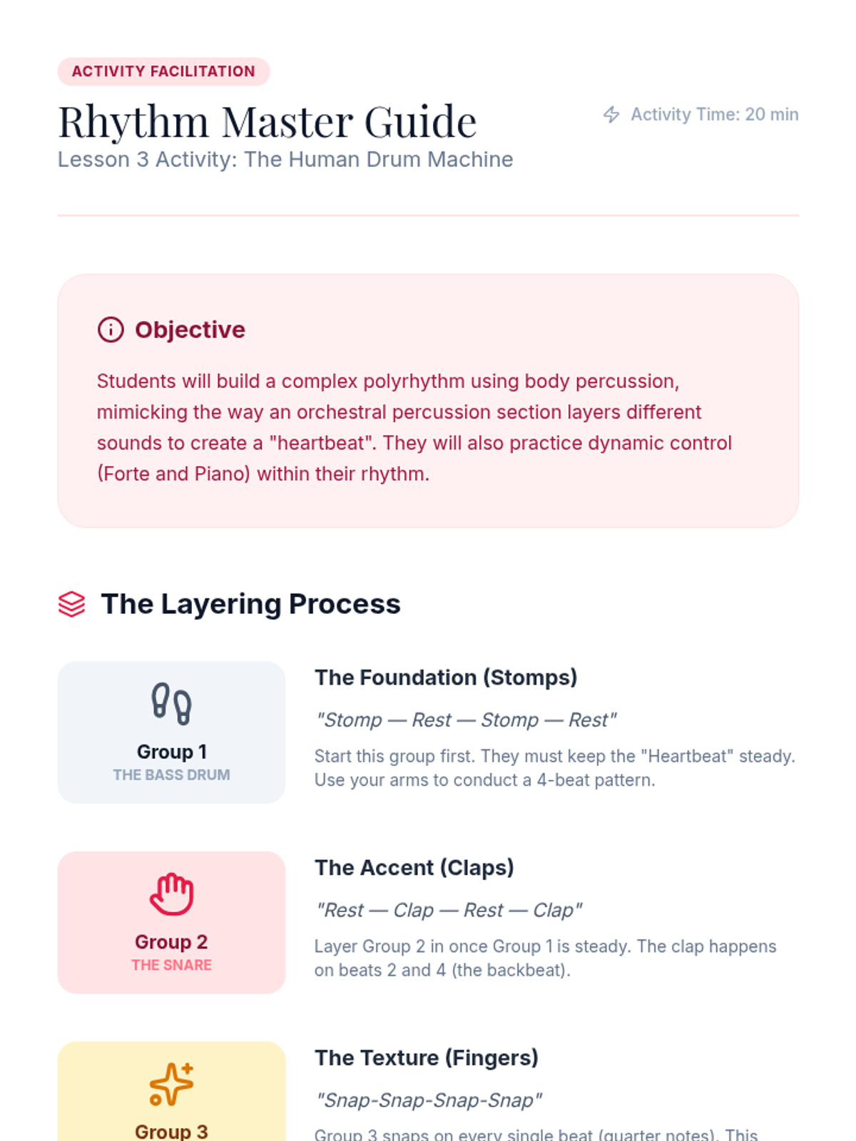 A high-energy, interactive unit focused on mastering rhythm and tempo through digital gameplay and body percussion, designed specifically for paperless classrooms.