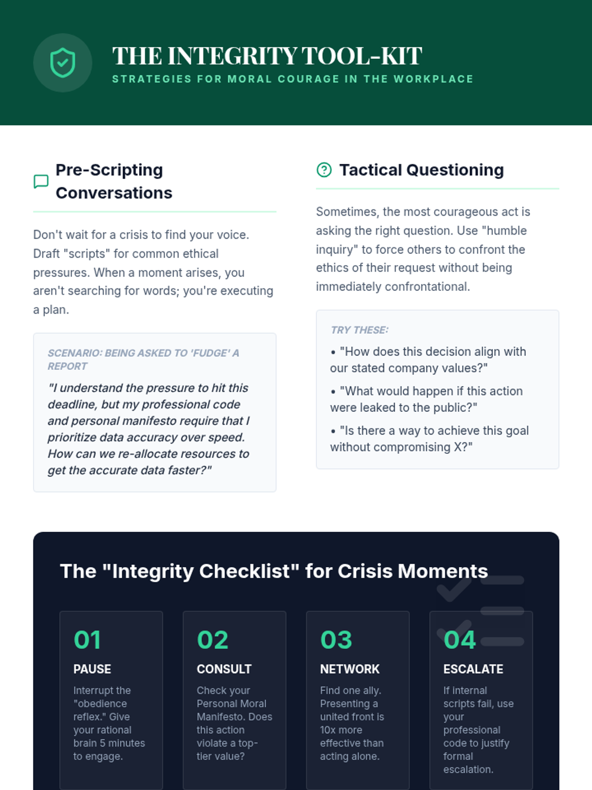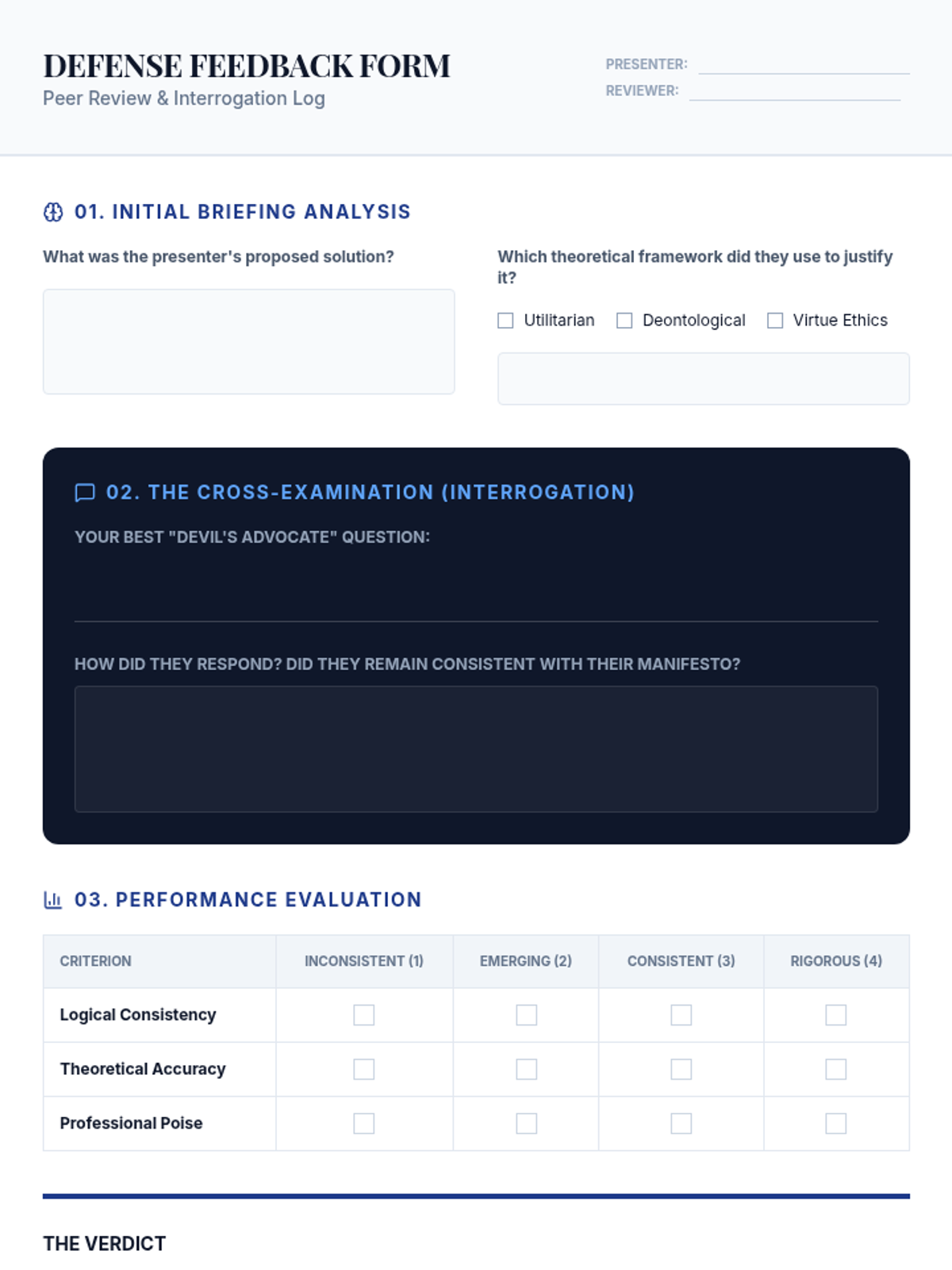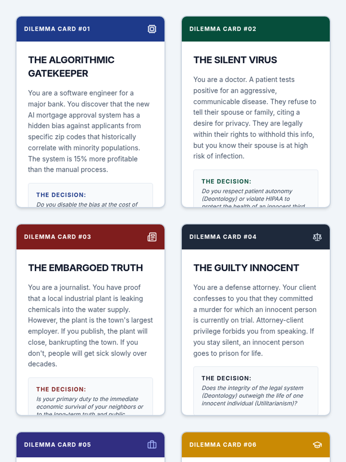 A capstone sequence for undergraduate students to synthesize ethical theories into a personal and professional framework. Students analyze professional codes, develop a moral manifesto, and practice defending ethical decisions under pressure.