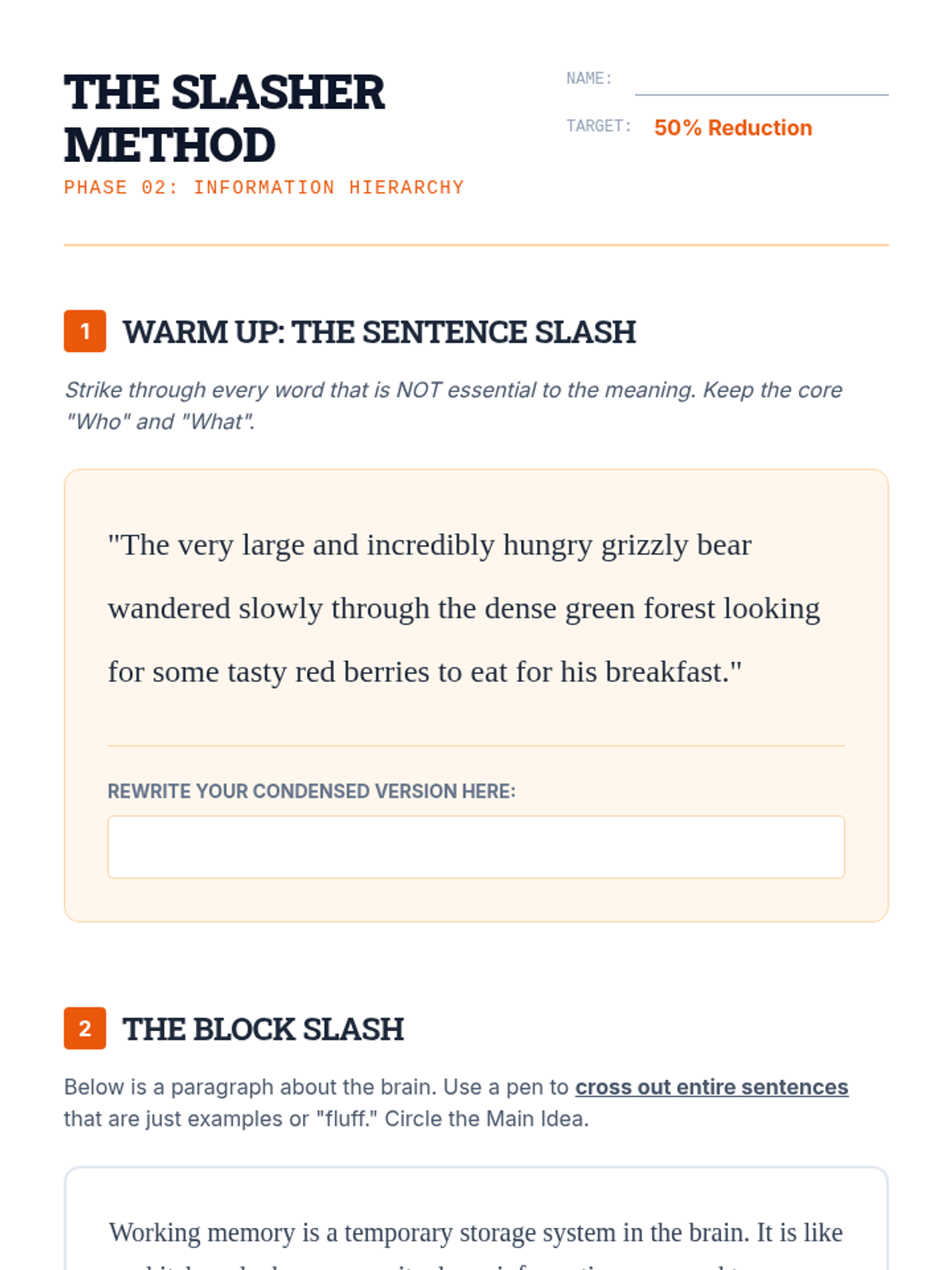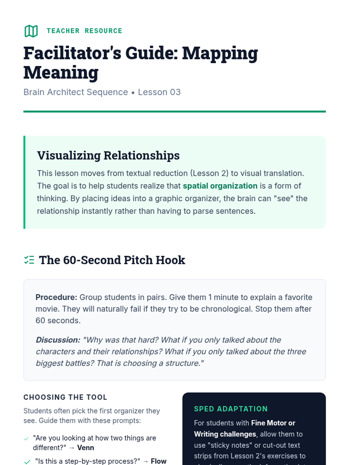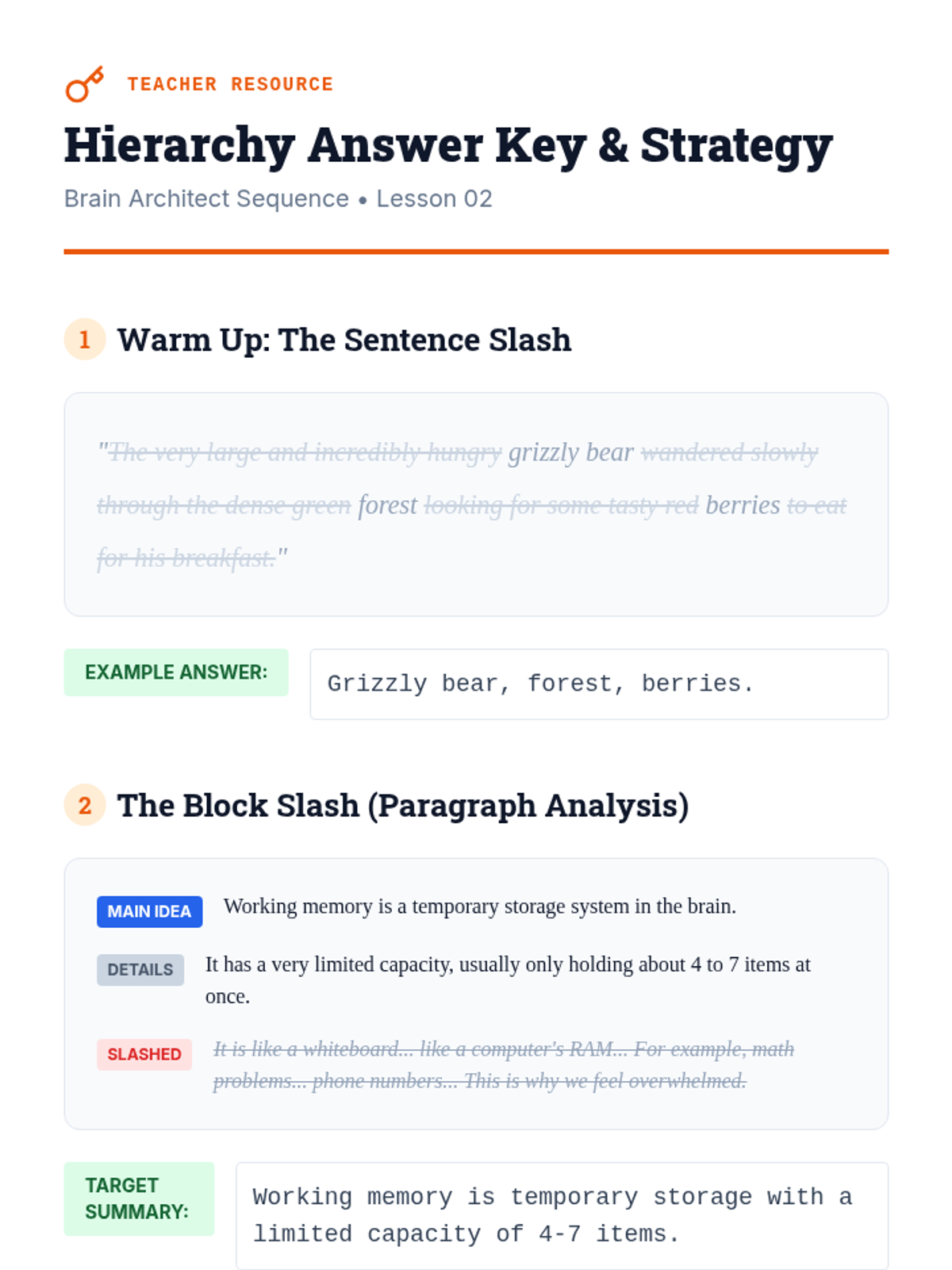 A 5-lesson unit for 10th-grade students focused on reducing cognitive load through information synthesis, chunking, and hierarchical organization. Students develop practical skills to manage working memory by creating external memory aids like one-pagers and master study guides.