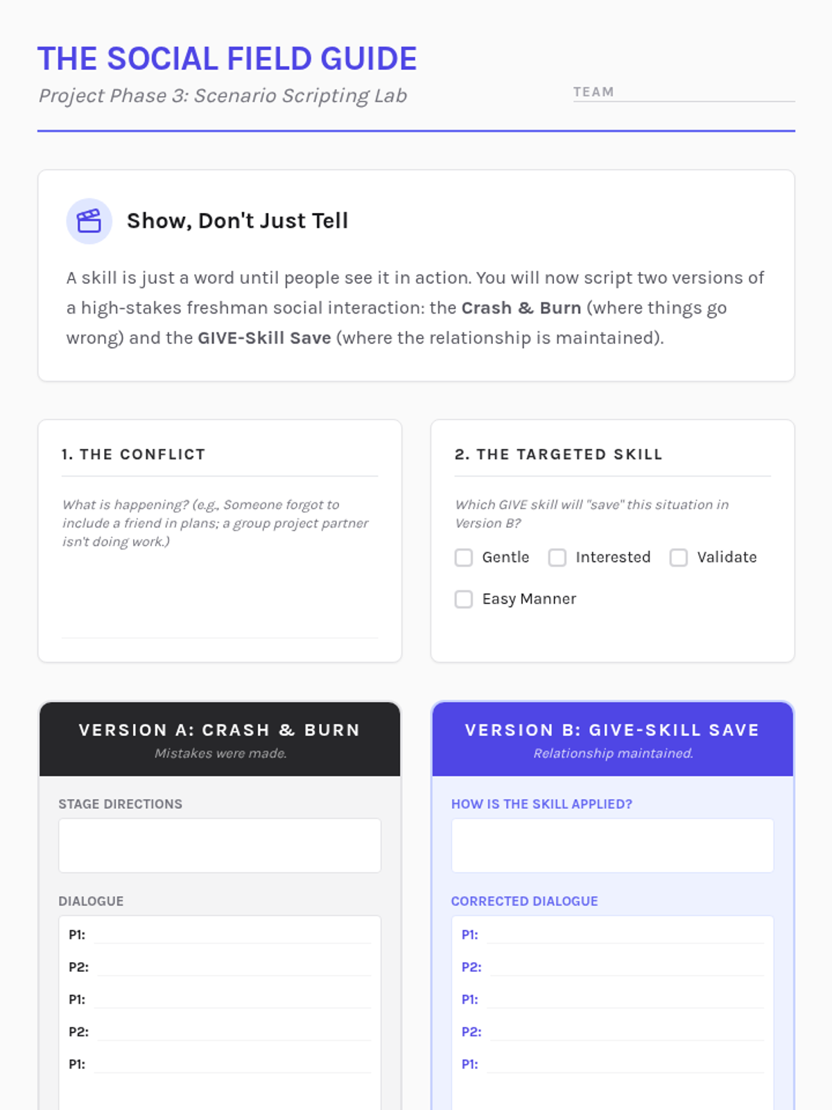 Students synthesize their understanding of DBT's GIVE skills by creating a mentorship resource for younger students, transitioning from learners to teachers of relationship maintenance strategies.
