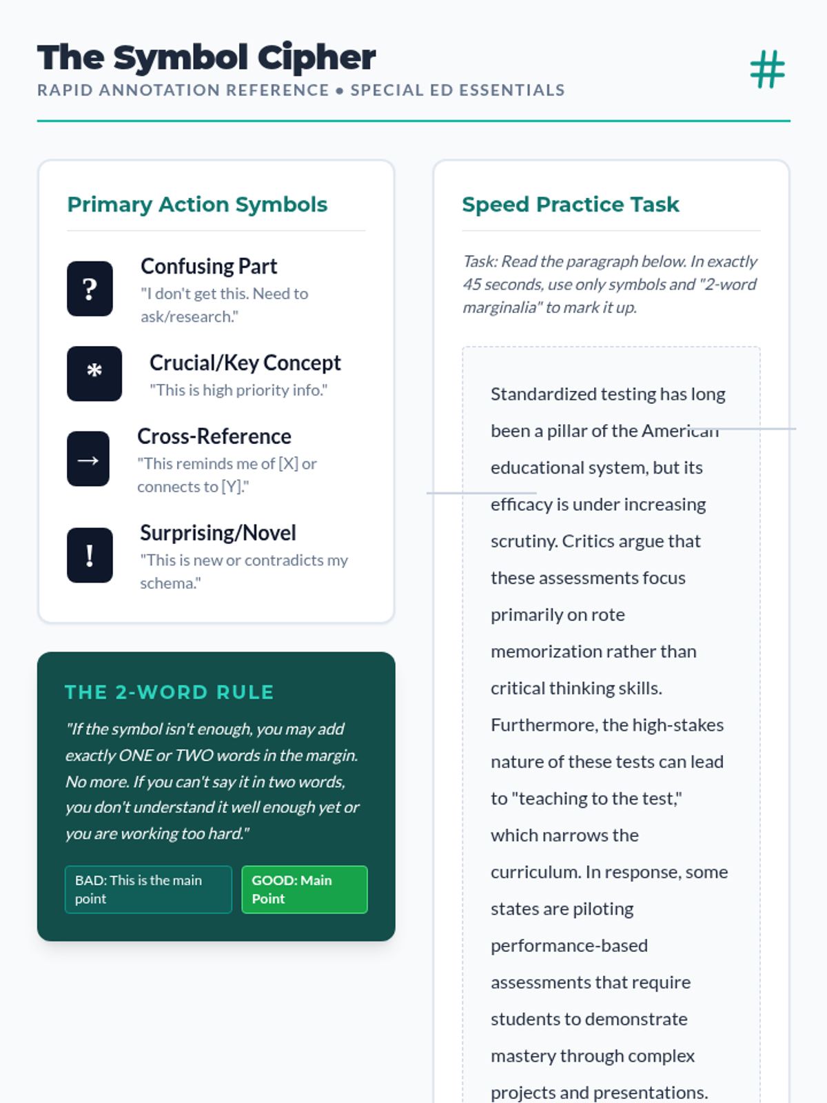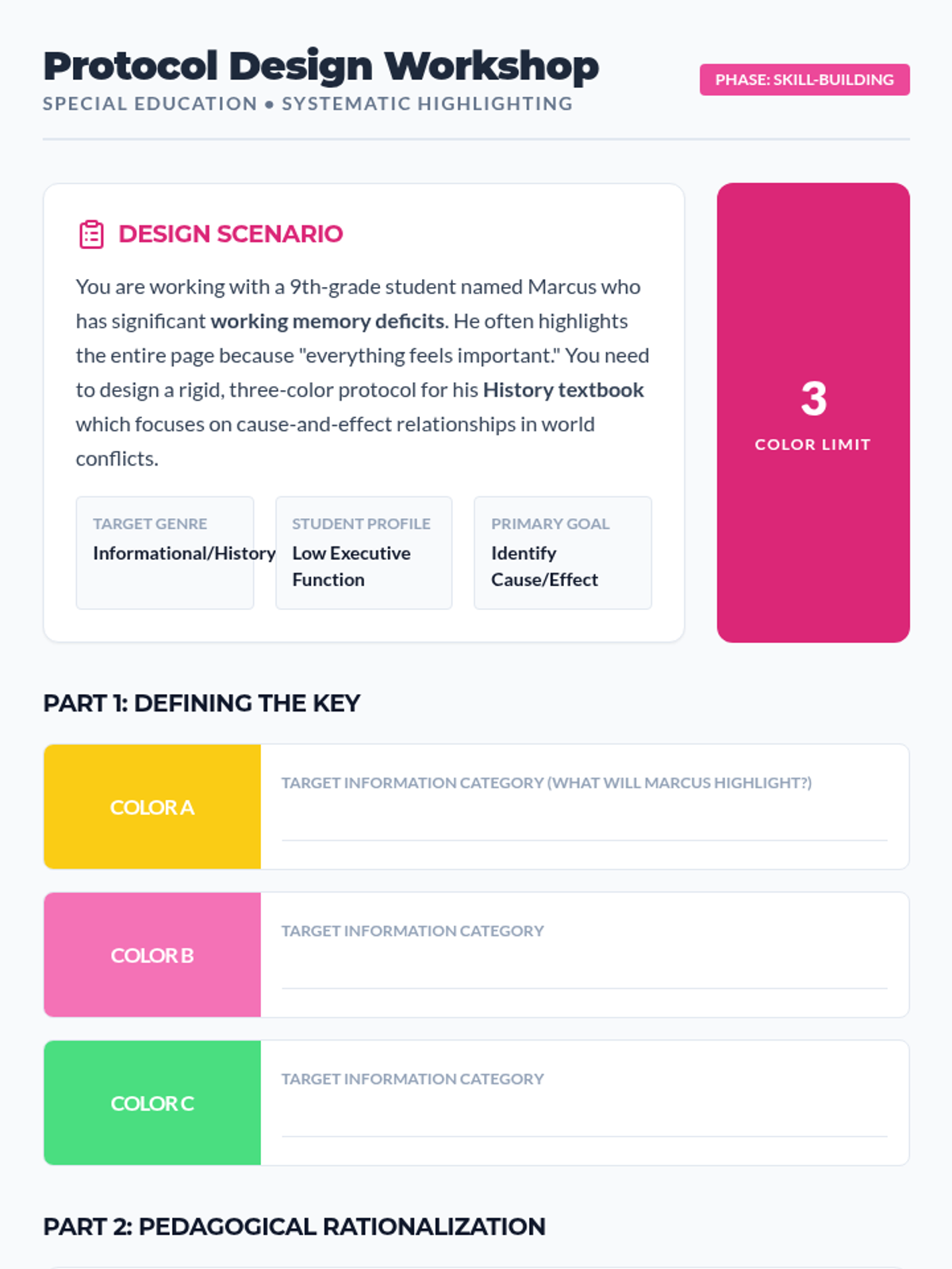 This sequence equips pre-service teachers with evidence-based frameworks for teaching text interaction to students with executive function deficits. It moves from cognitive science foundations to the practical design and assessment of systematic annotation protocols.