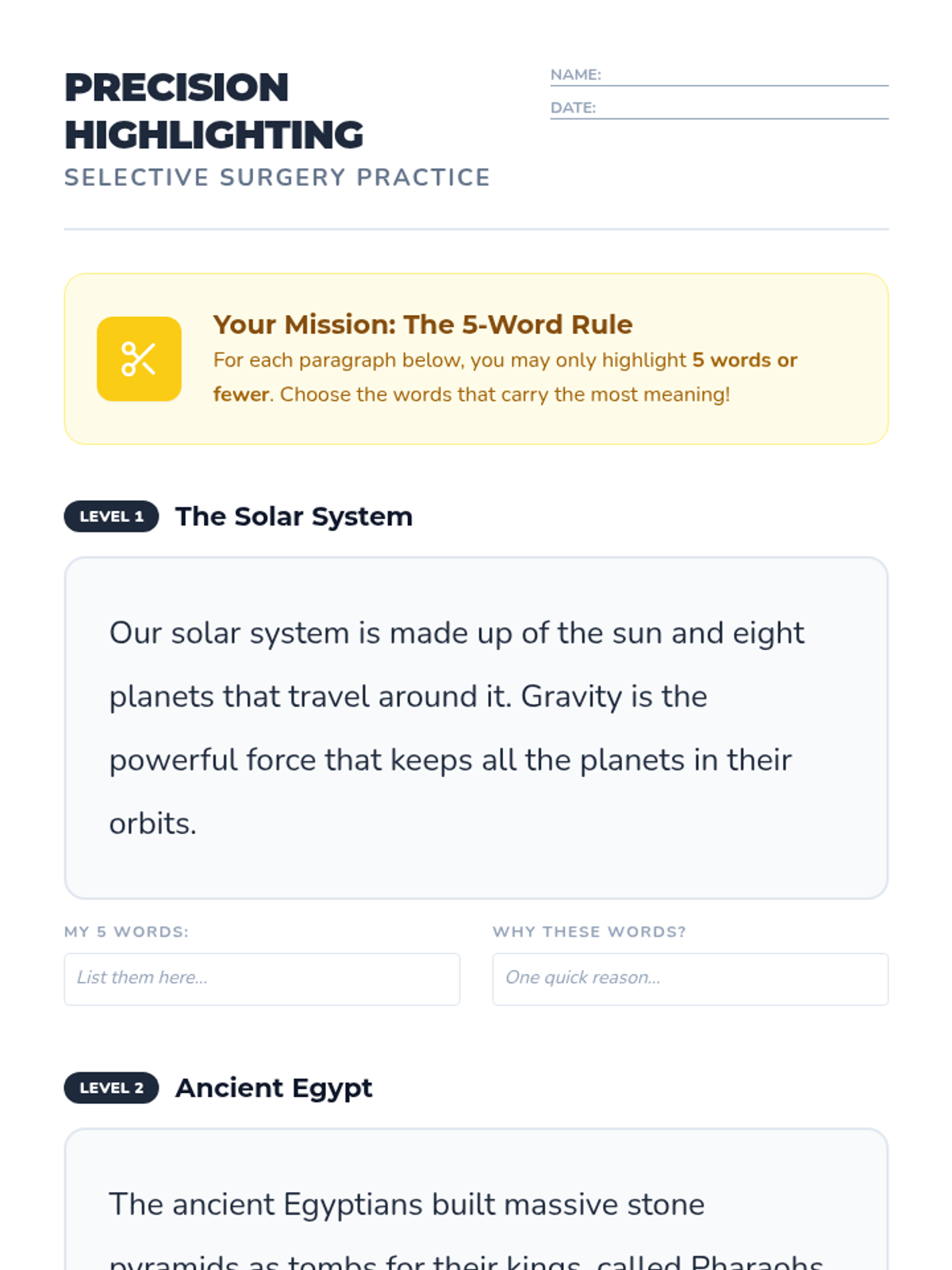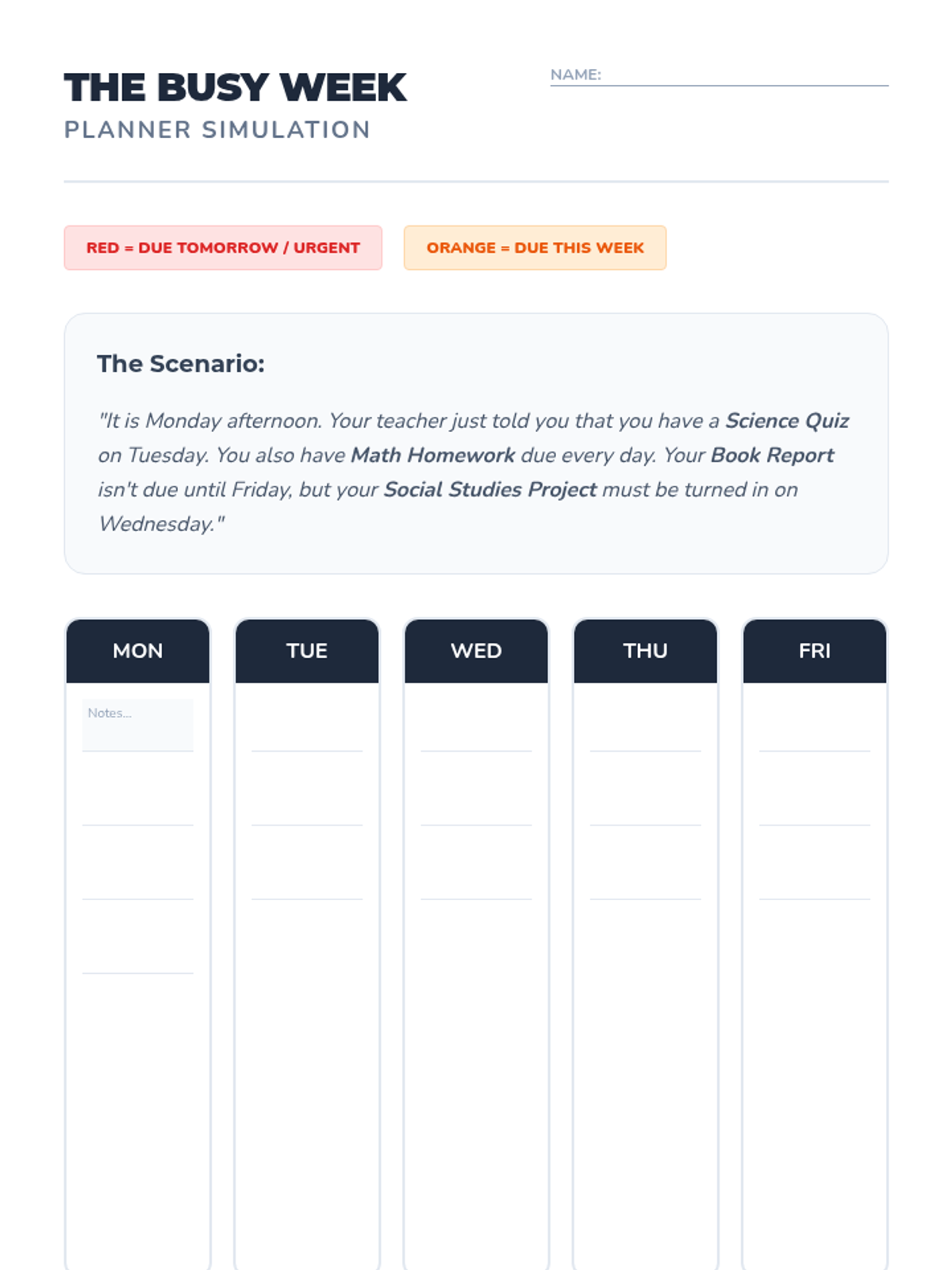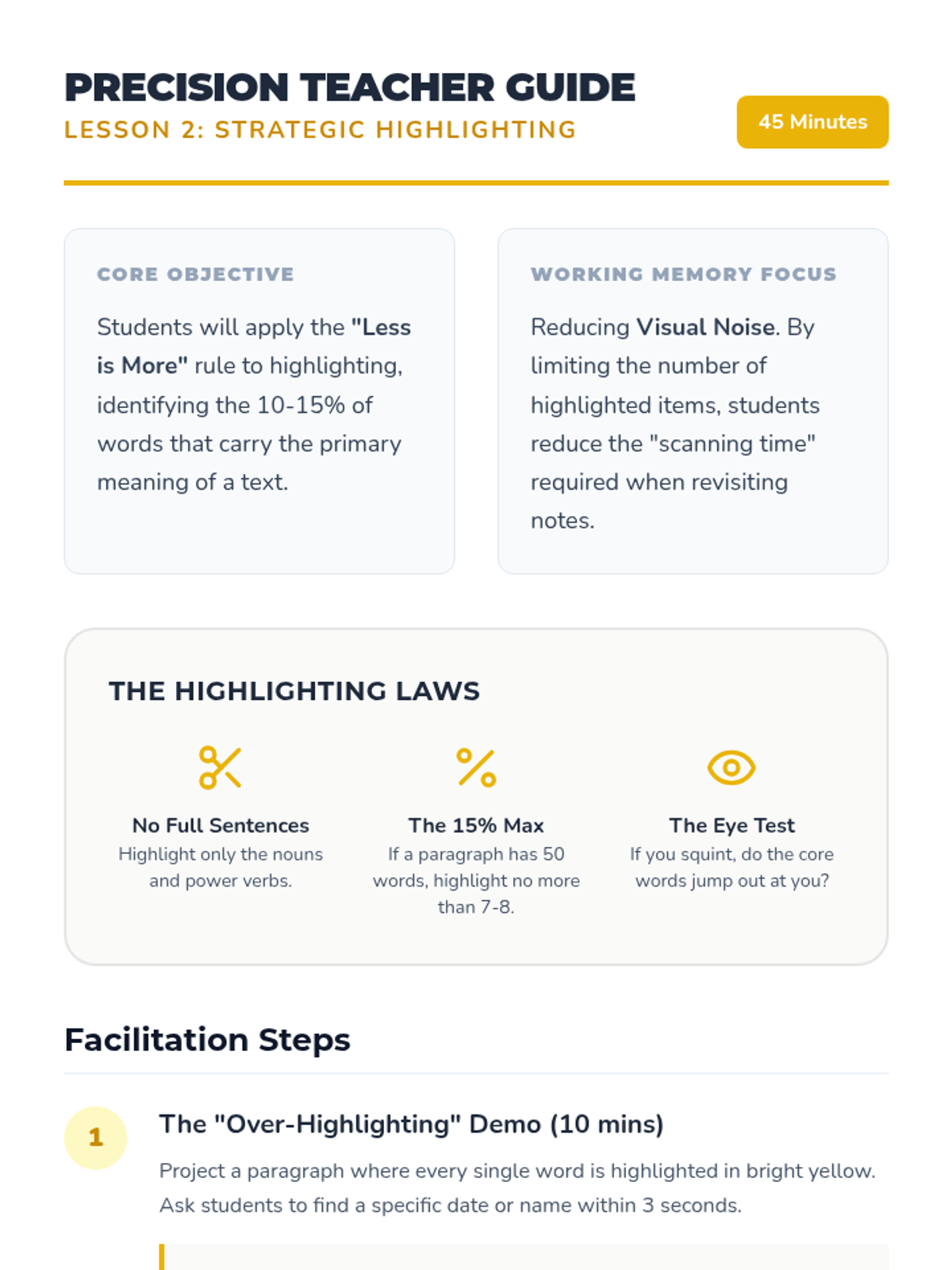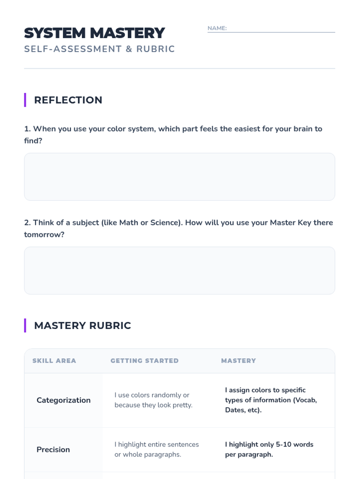A 5-lesson sequence designed to help 5th-grade students with working memory challenges develop a systematic, color-coded organizational system for note-taking and task management. Students move from basic categorization to creating a cross-subject color key and using it for rapid information retrieval.