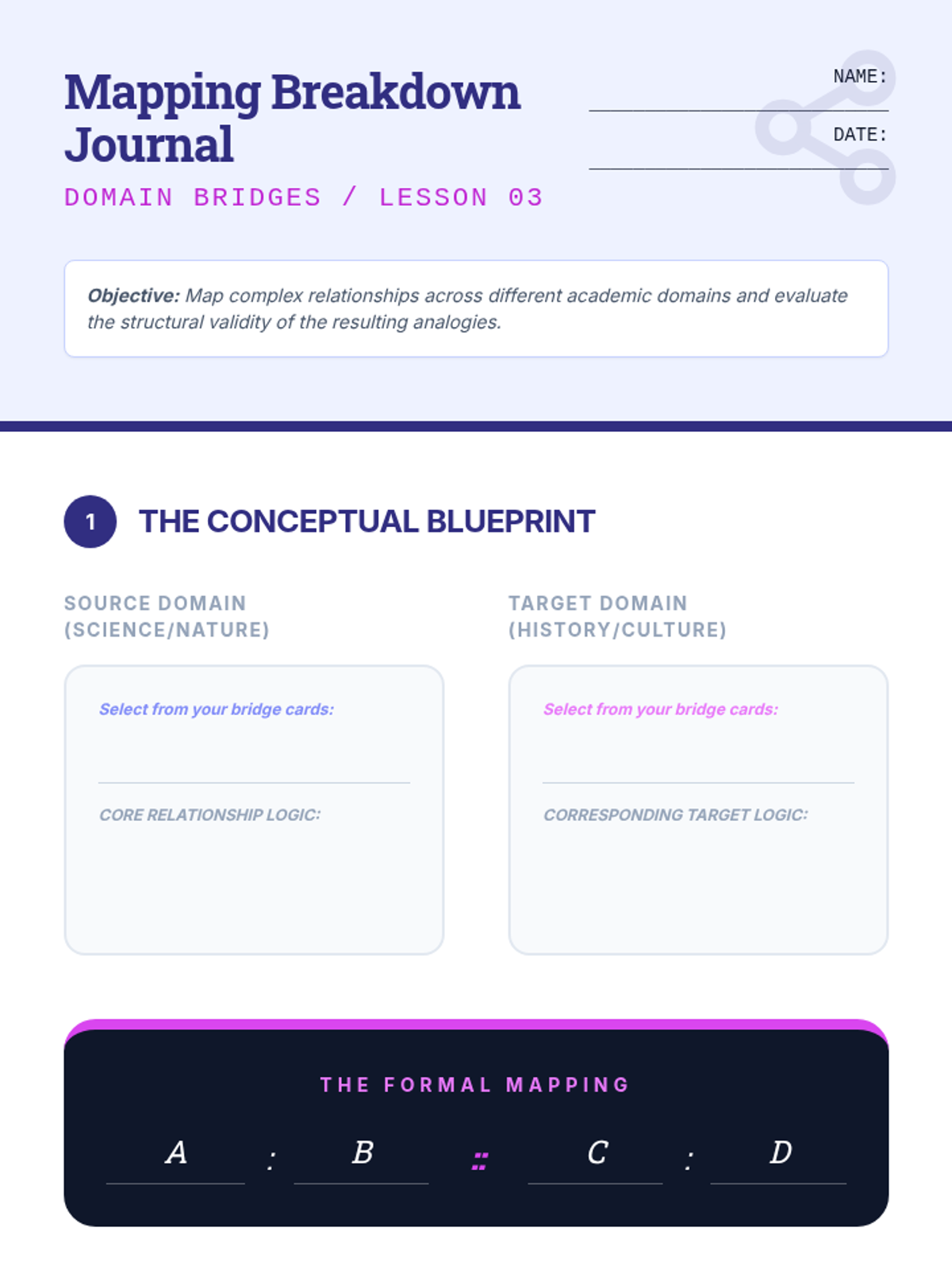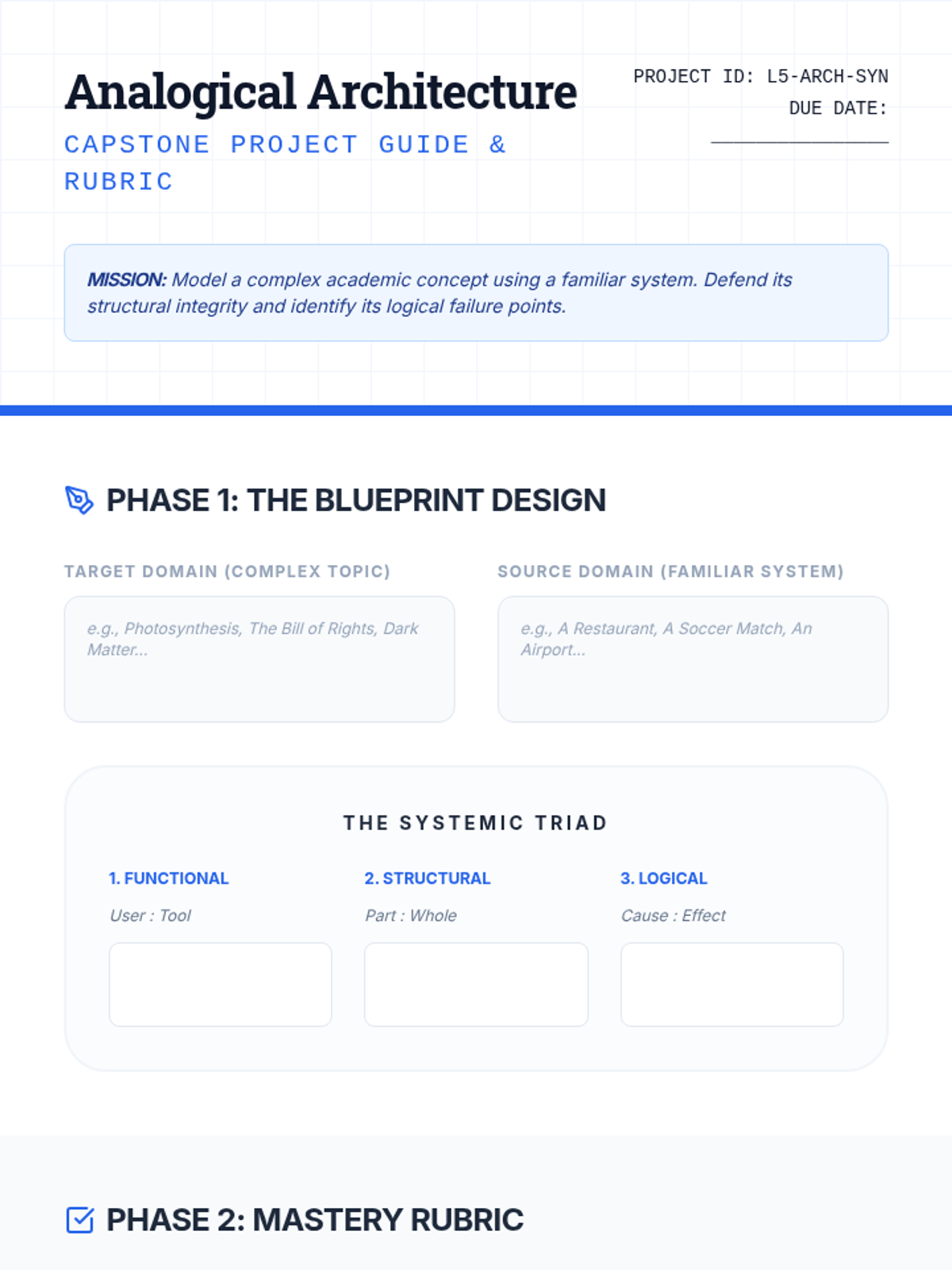 A high-level ELA sequence for 11th grade that explores analogies as cognitive models for complex systems across biology, physics, and history. Students progress from basic functional relationships to constructing and defending interdisciplinary models.