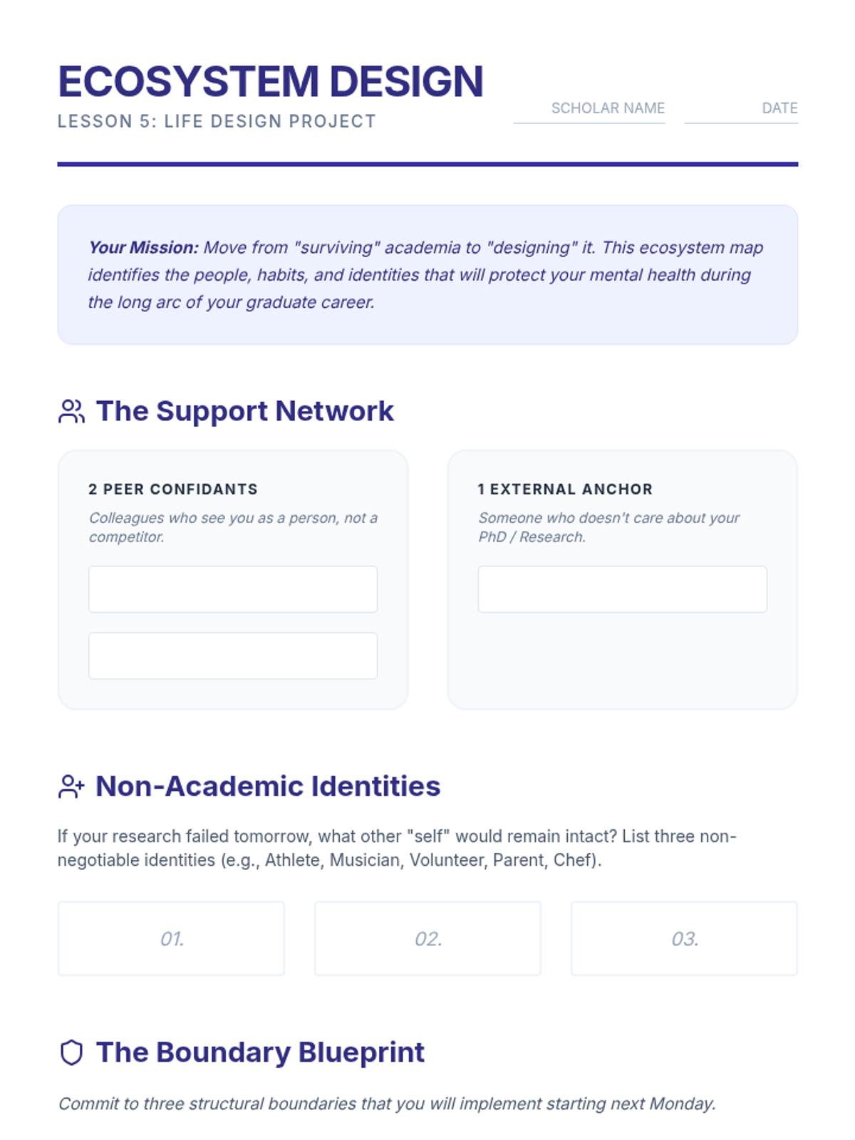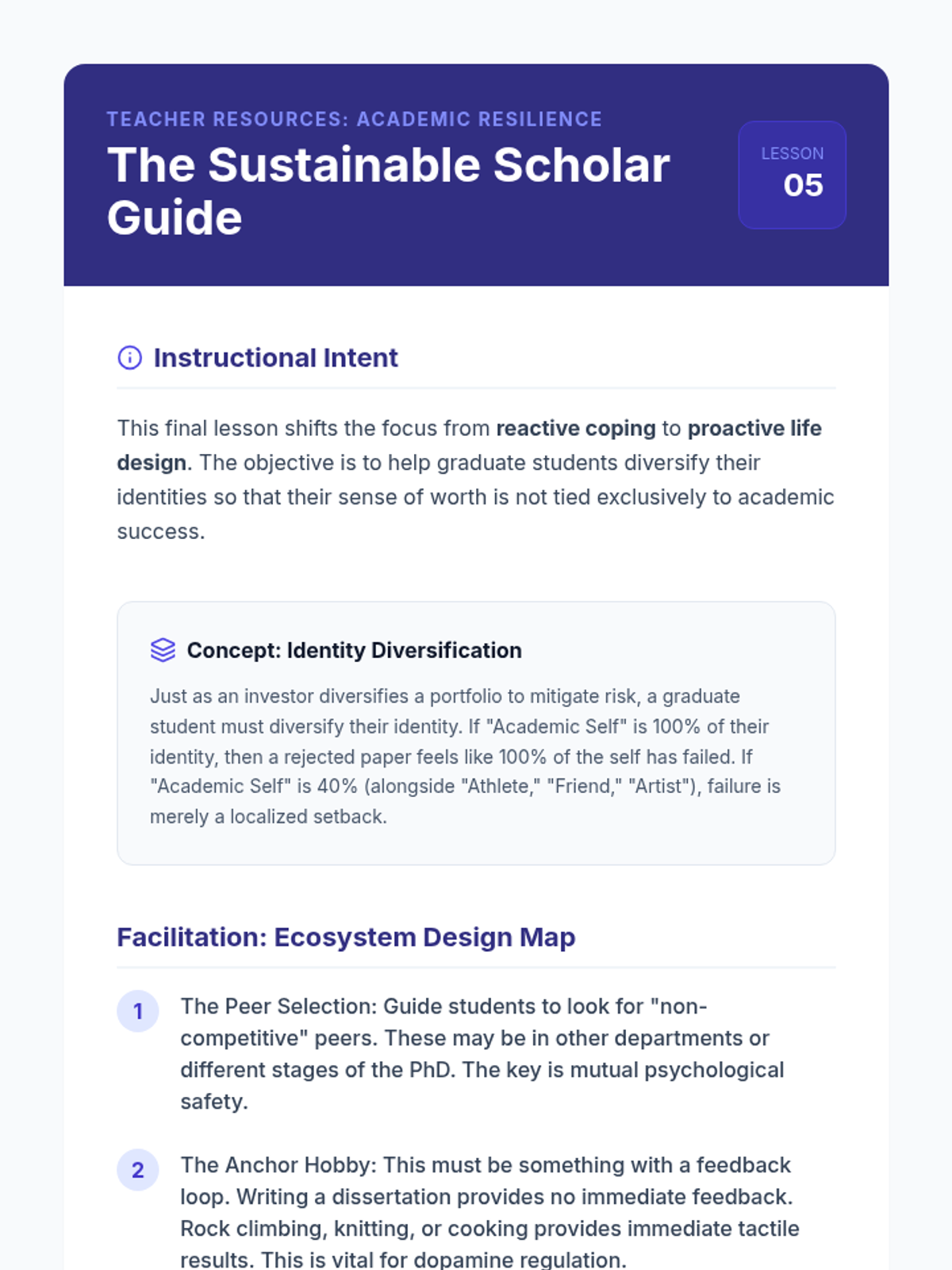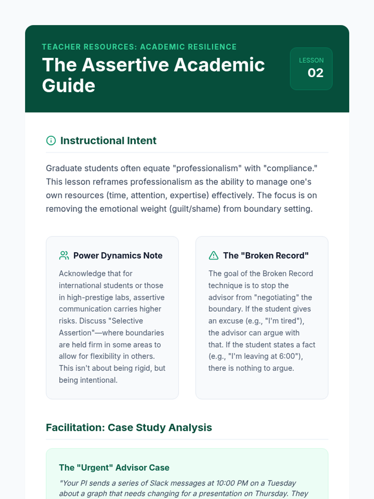 A 5-lesson series for graduate students focused on navigating the systemic stressors of academia, setting professional boundaries, and preventing burnout through neurobiological understanding and assertive communication.