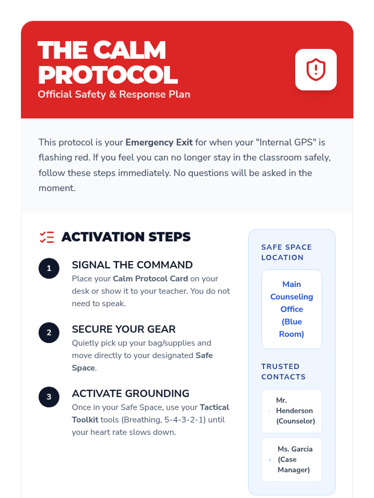 A comprehensive toolkit designed for a 6th-grade student to navigate emotional dysregulation. This sequence focuses on identifying internal triggers, building a personalized strategy toolkit, and establishing a clear safety protocol for crisis moments, providing stability in both school and home environments.
