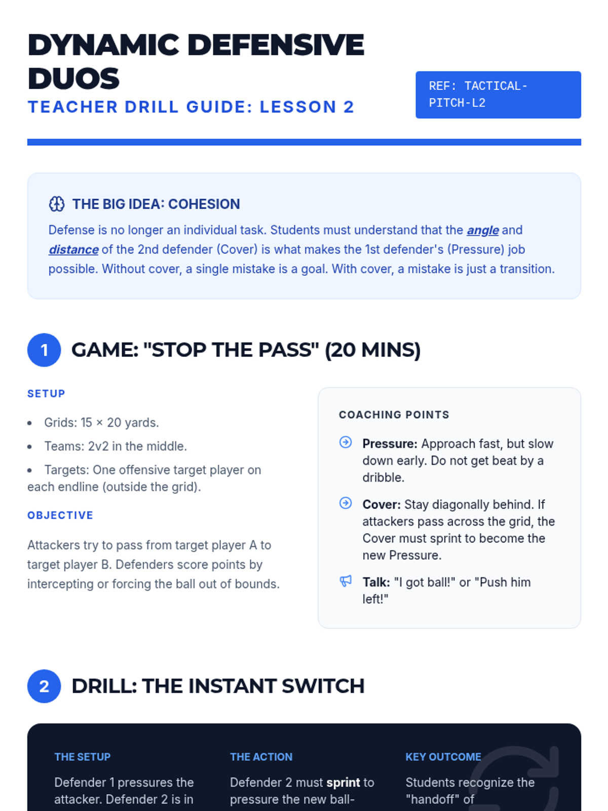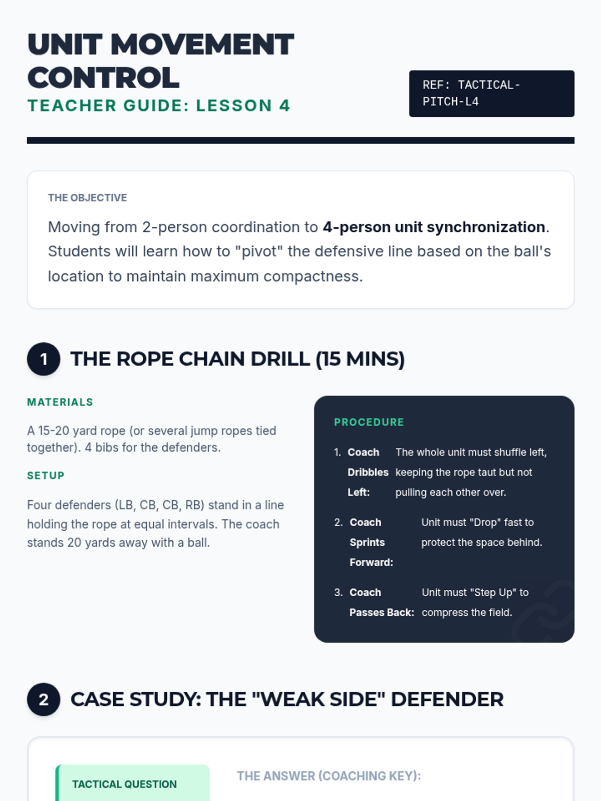 A comprehensive 8th-grade physical education unit focused on the tactical side of soccer, covering defensive containment, unit coordination, spatial awareness, and transition play.