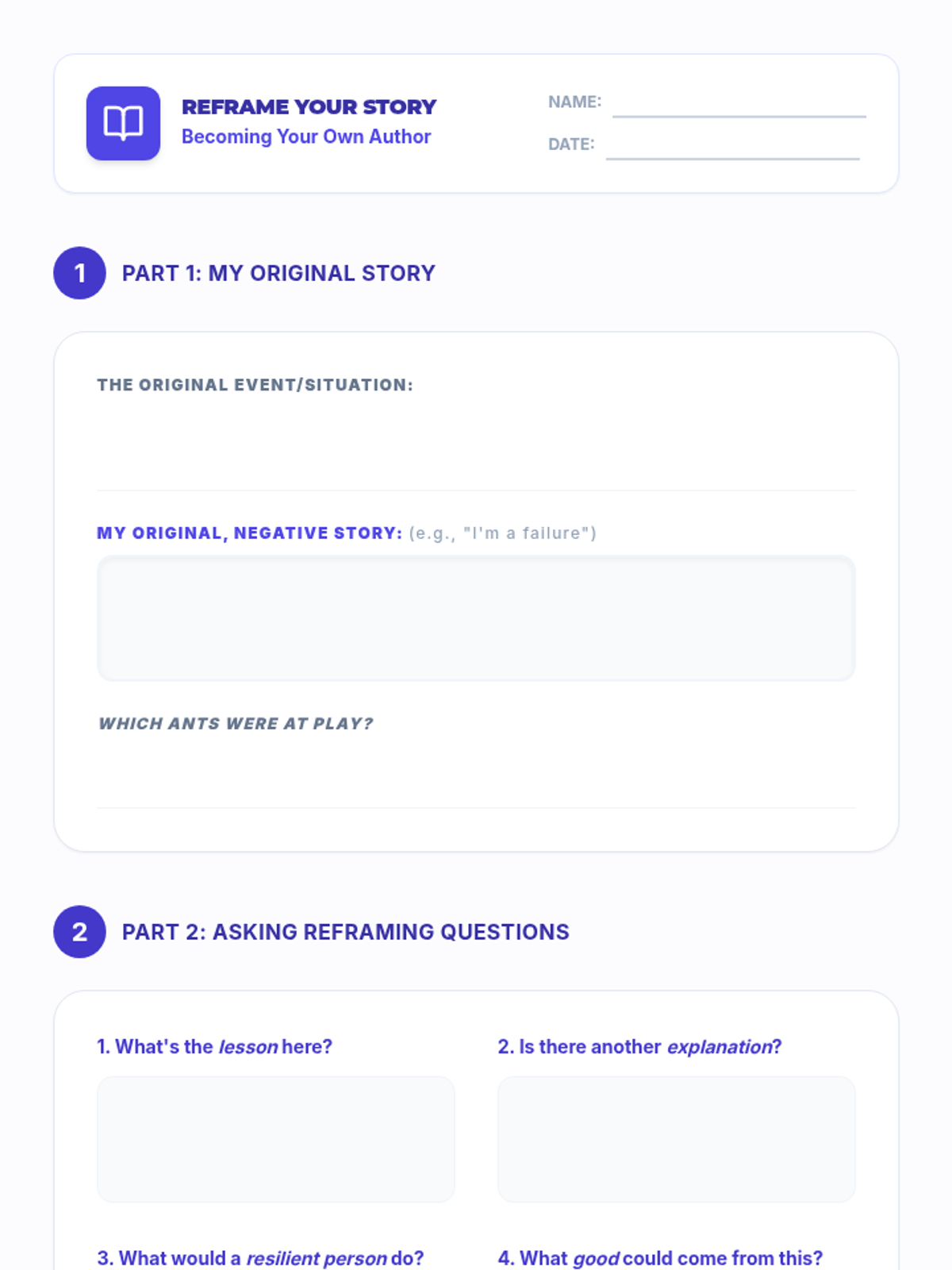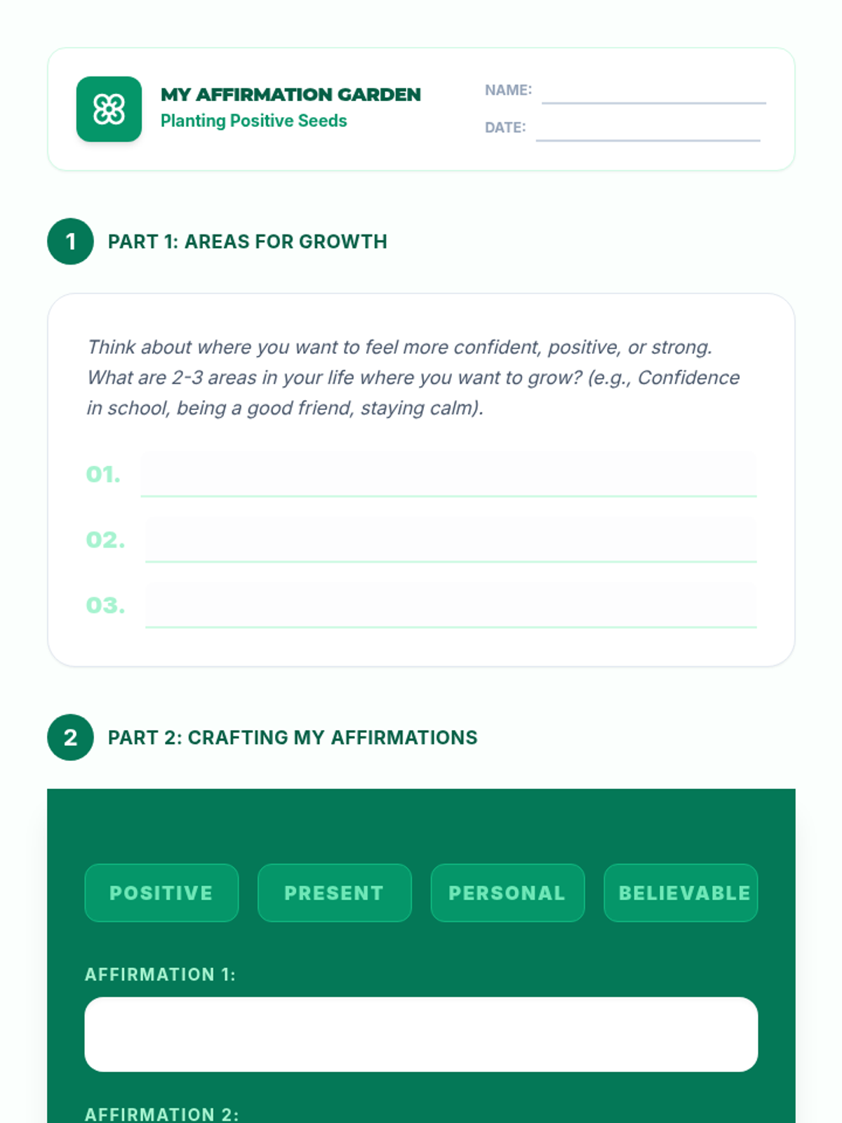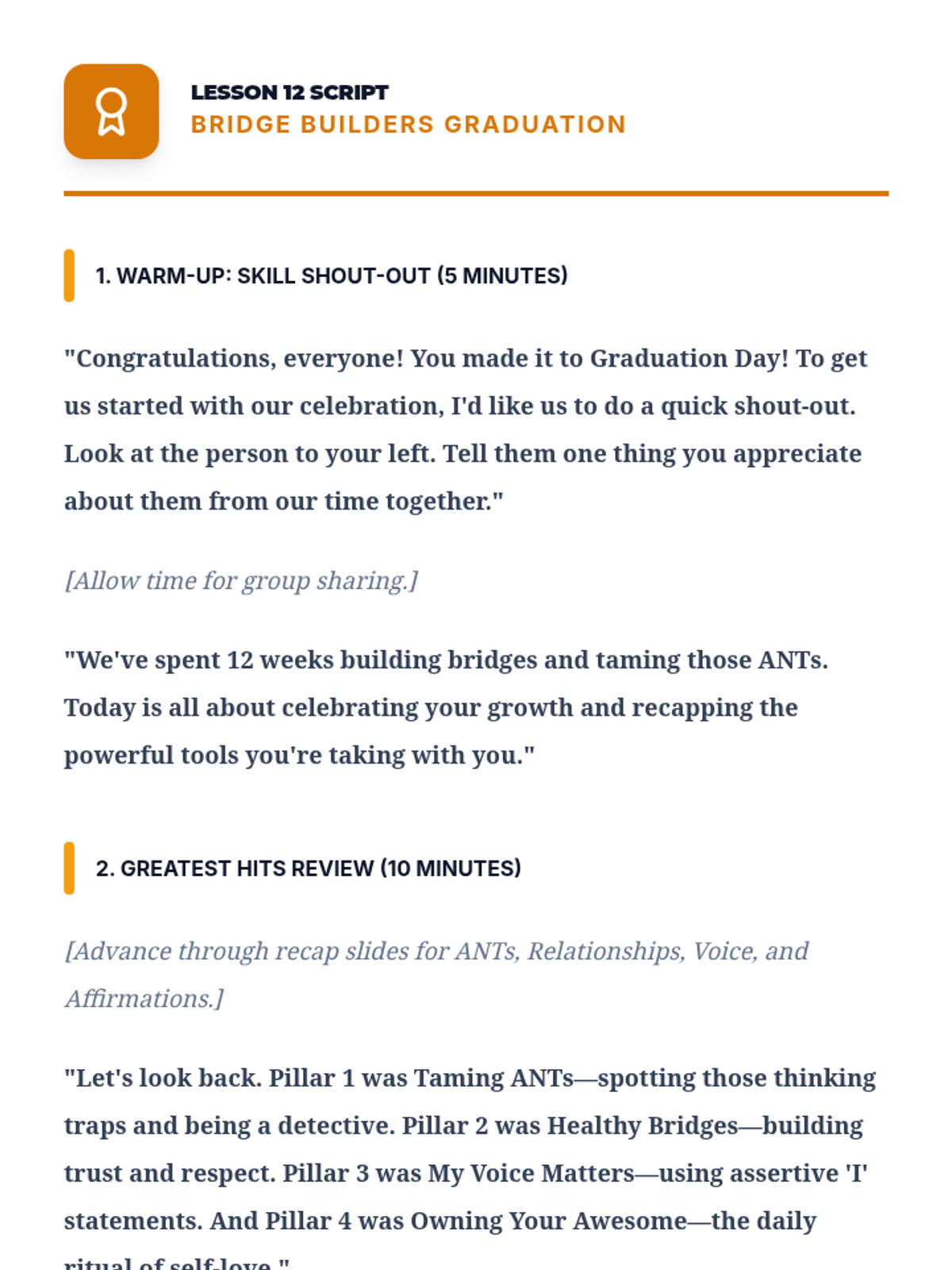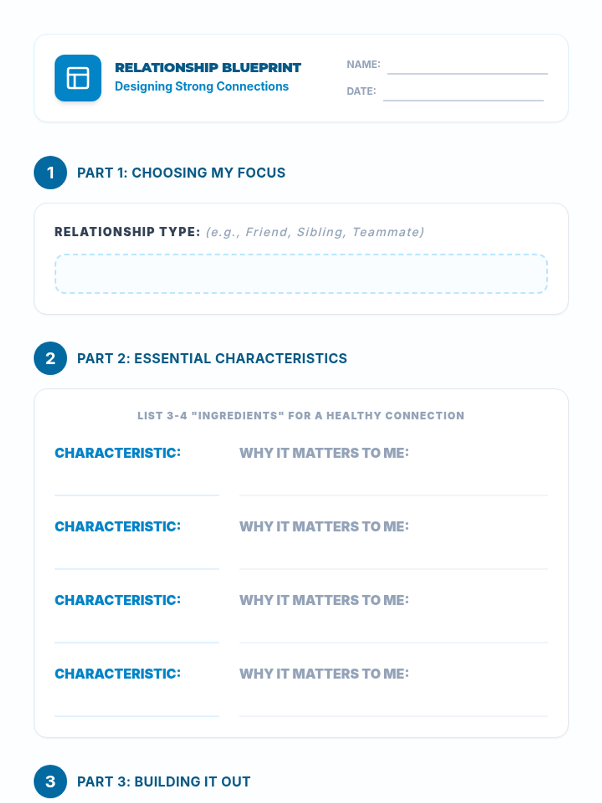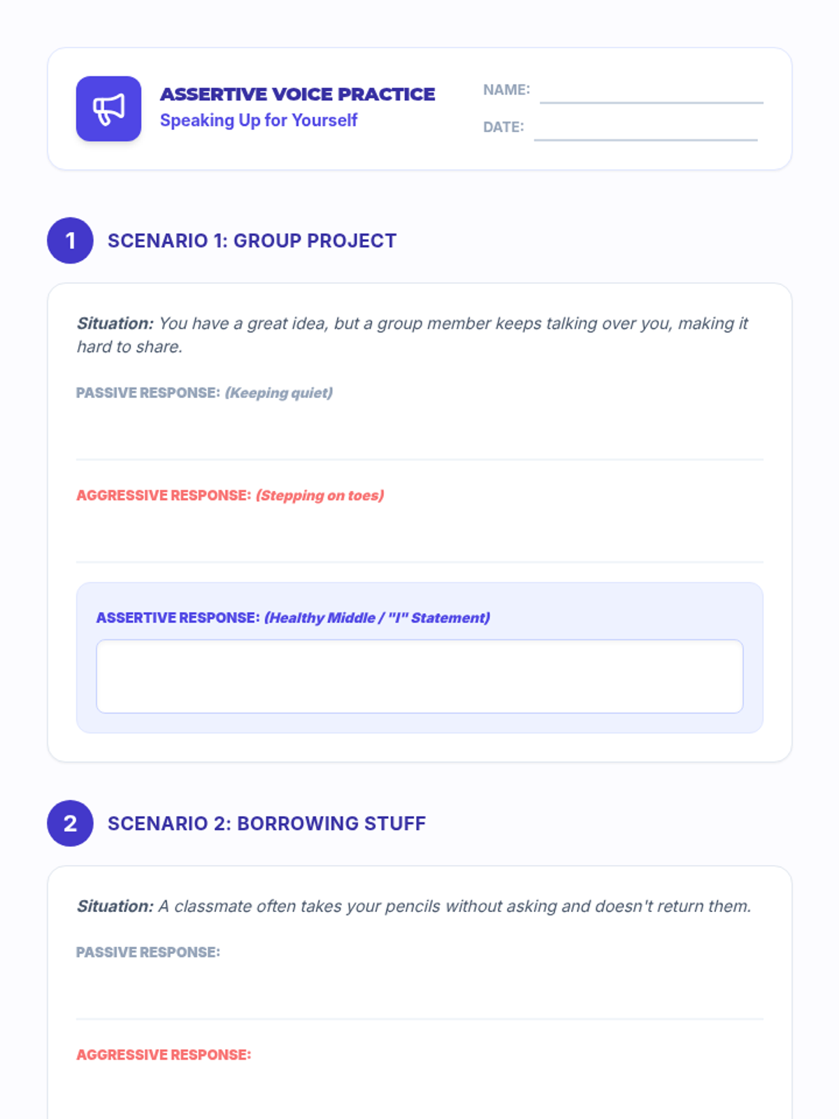 A comprehensive 12-lesson curriculum for 8th-grade small groups designed to build emotional resilience and healthy relationship skills. Students learn to identify and challenge automatic negative thoughts (ANTs), set healthy boundaries, use positive affirmations, and communicate assertively.
