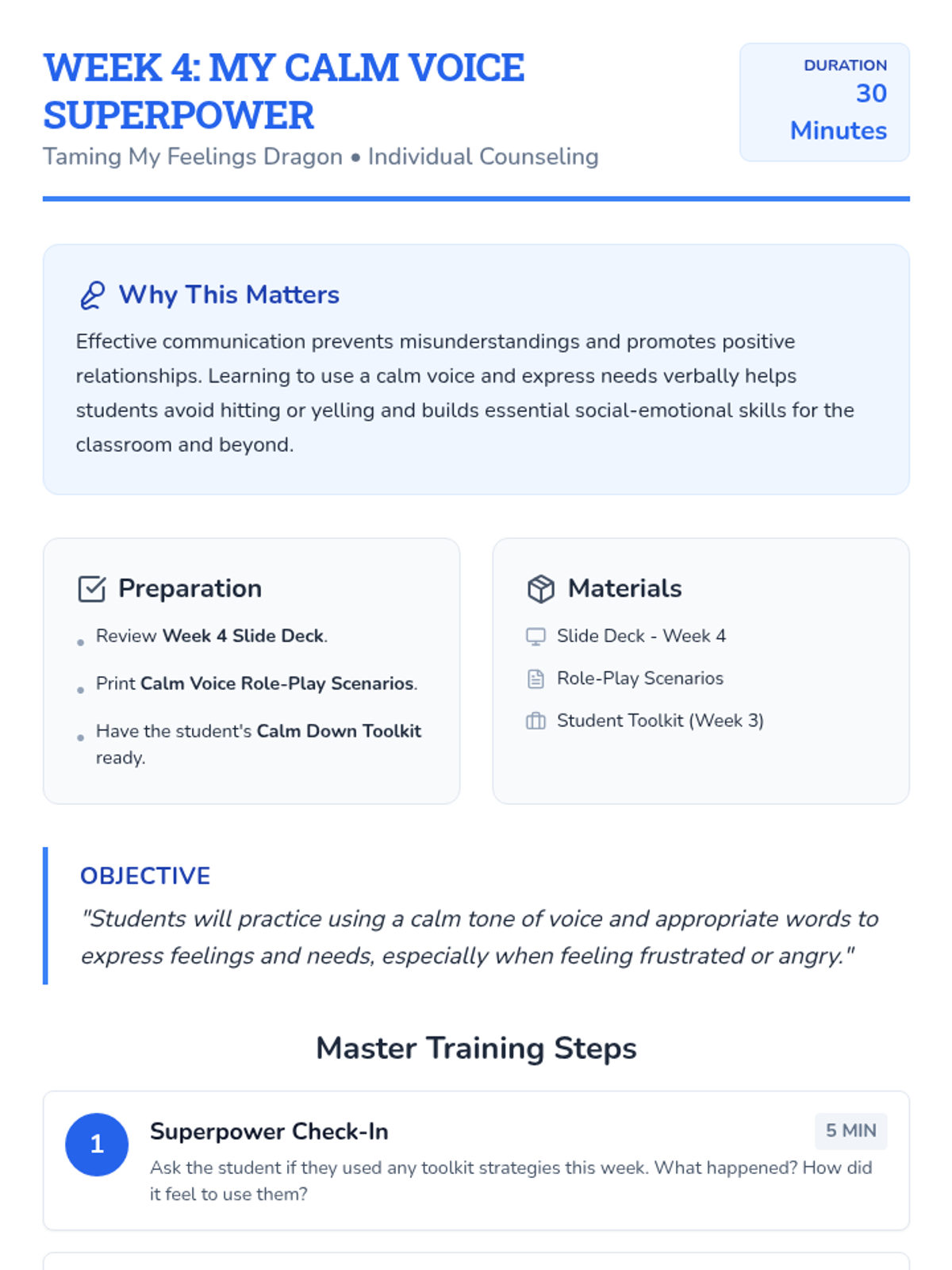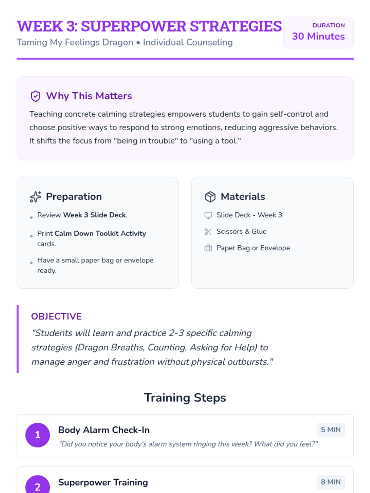 A three-part mentoring sequence blending Social Studies concepts (geography, citizenship, history) with ELSA principles to build emotional literacy, social skills, and resilience. Designed for short 30-minute sessions with minimal prep.