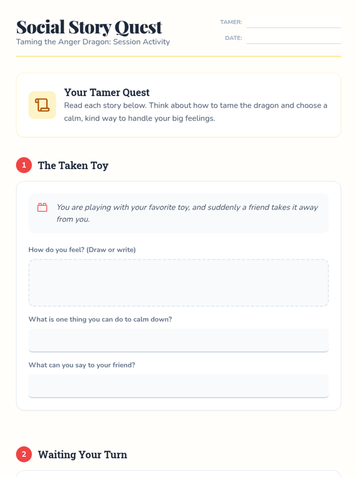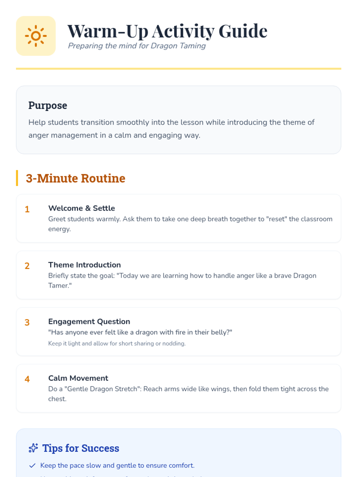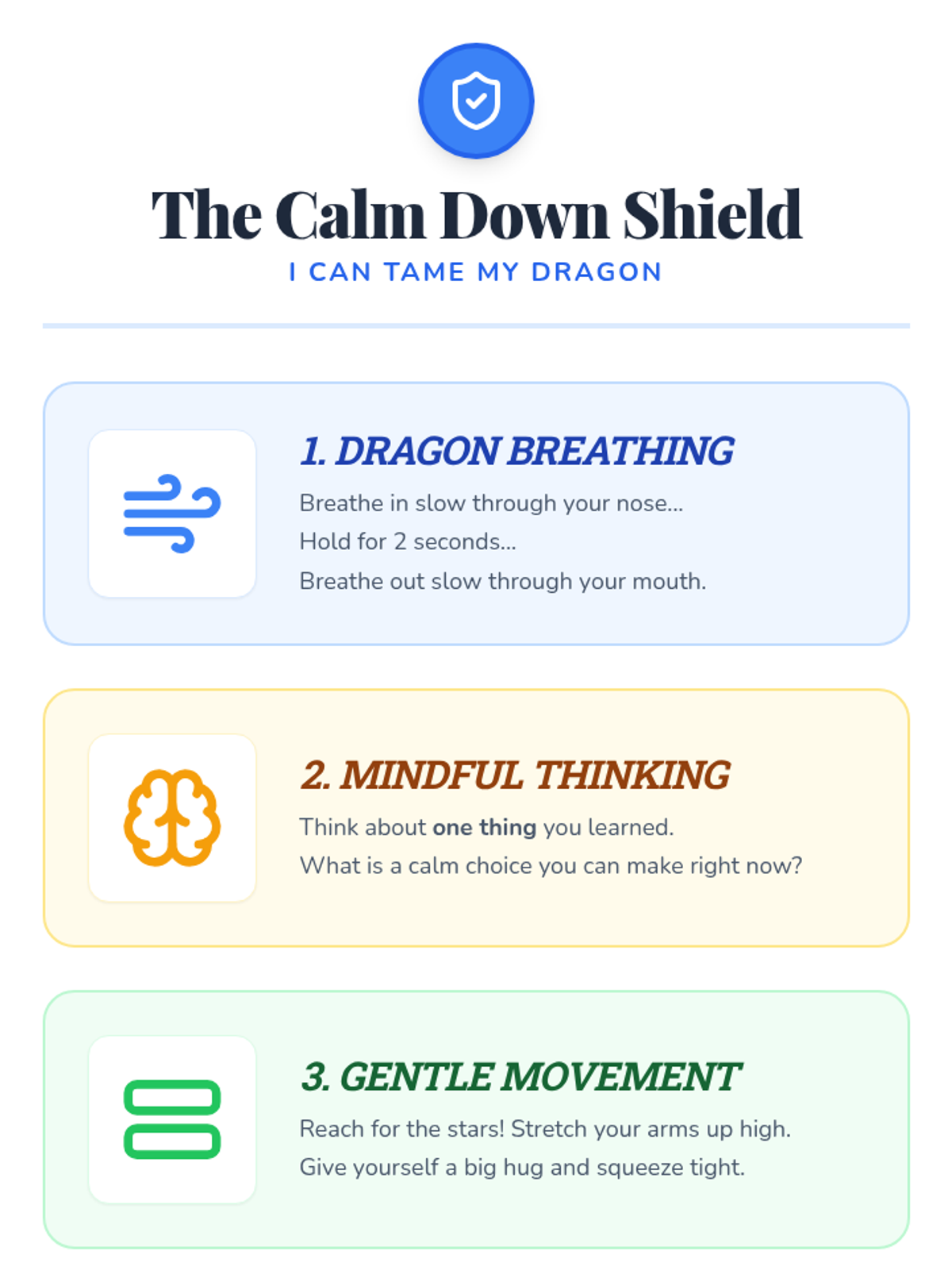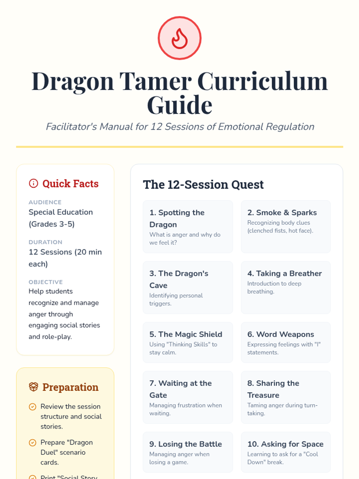 A 12-session social-emotional learning program for students with autism, focusing on identifying triggers and applying calming strategies through a dragon-taming metaphor.