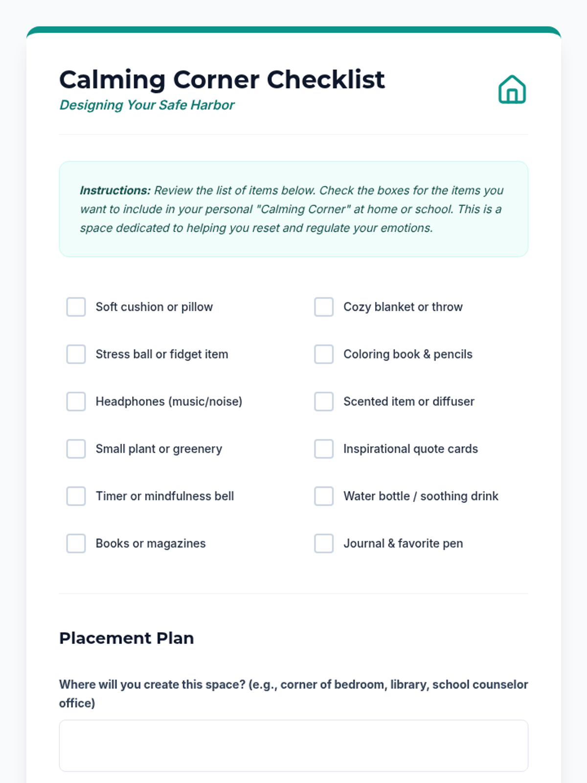 A series of three interactive counseling sessions for middle and high school students, focusing on self-discovery, emotional regulation, and future planning. Using a 'Blueprint' aesthetic, students engage in hands-on activities to map out their internal identities, manage external stressors, and construct actionable goals.
