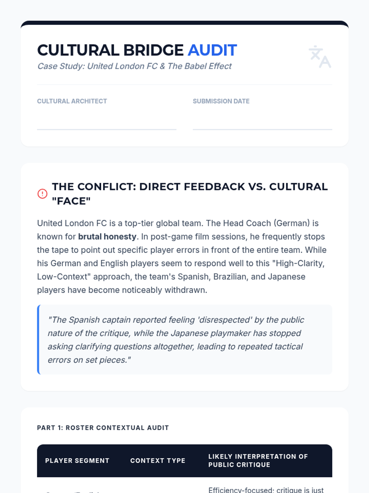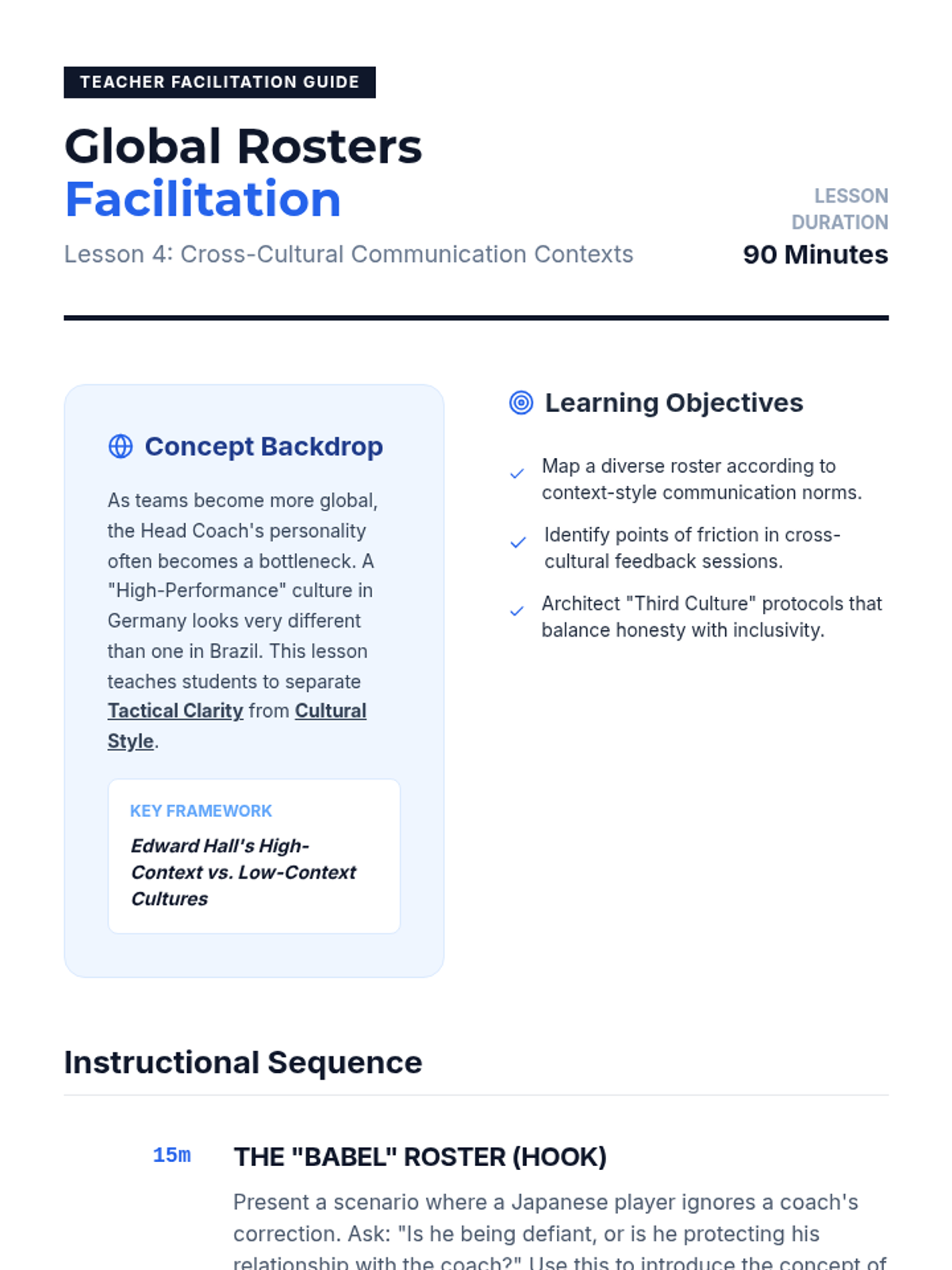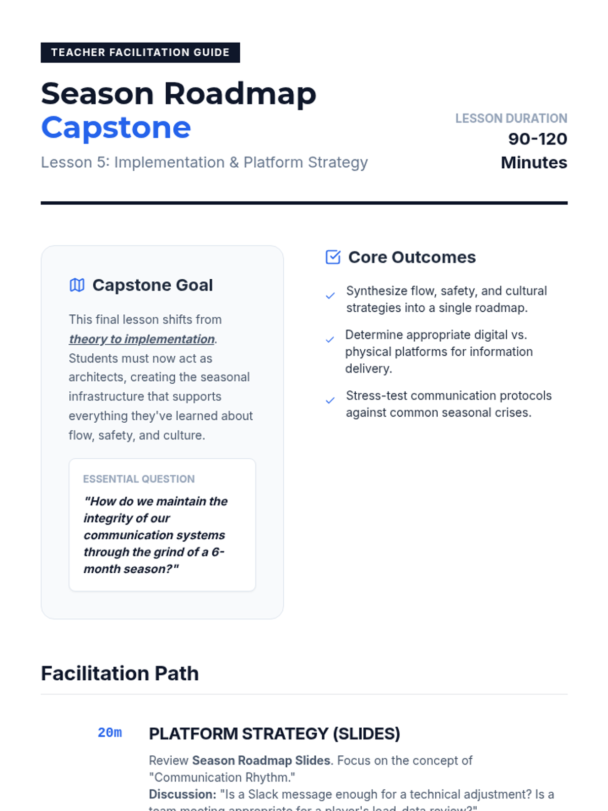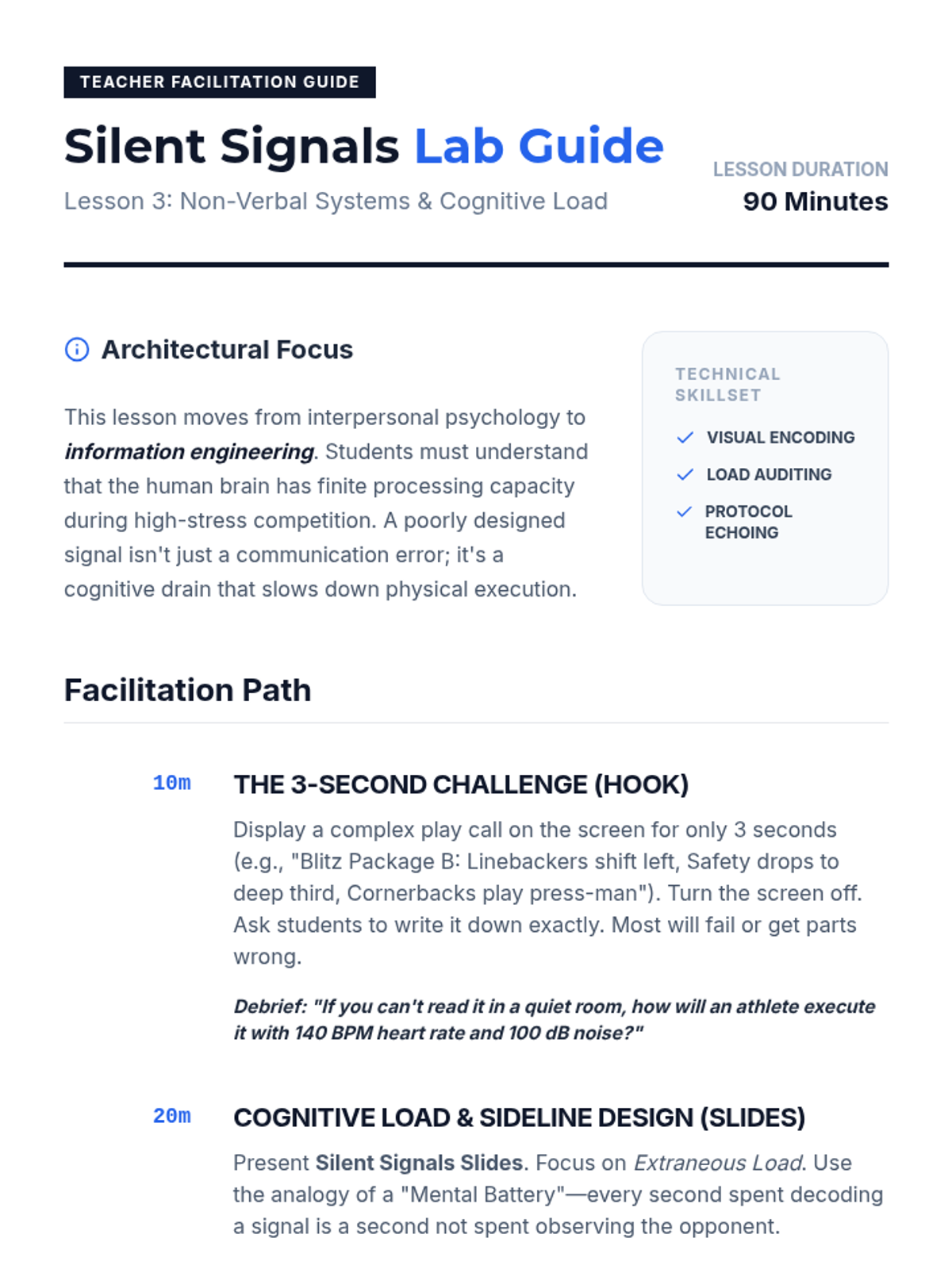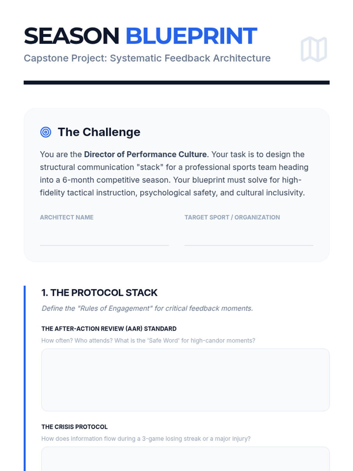 This graduate-level sequence examines the structural engineering of communication in elite athletic environments. Students will learn to design, audit, and implement sophisticated communication systems that enhance psychological safety, reduce cognitive load, and optimize tactical execution across diverse rosters.