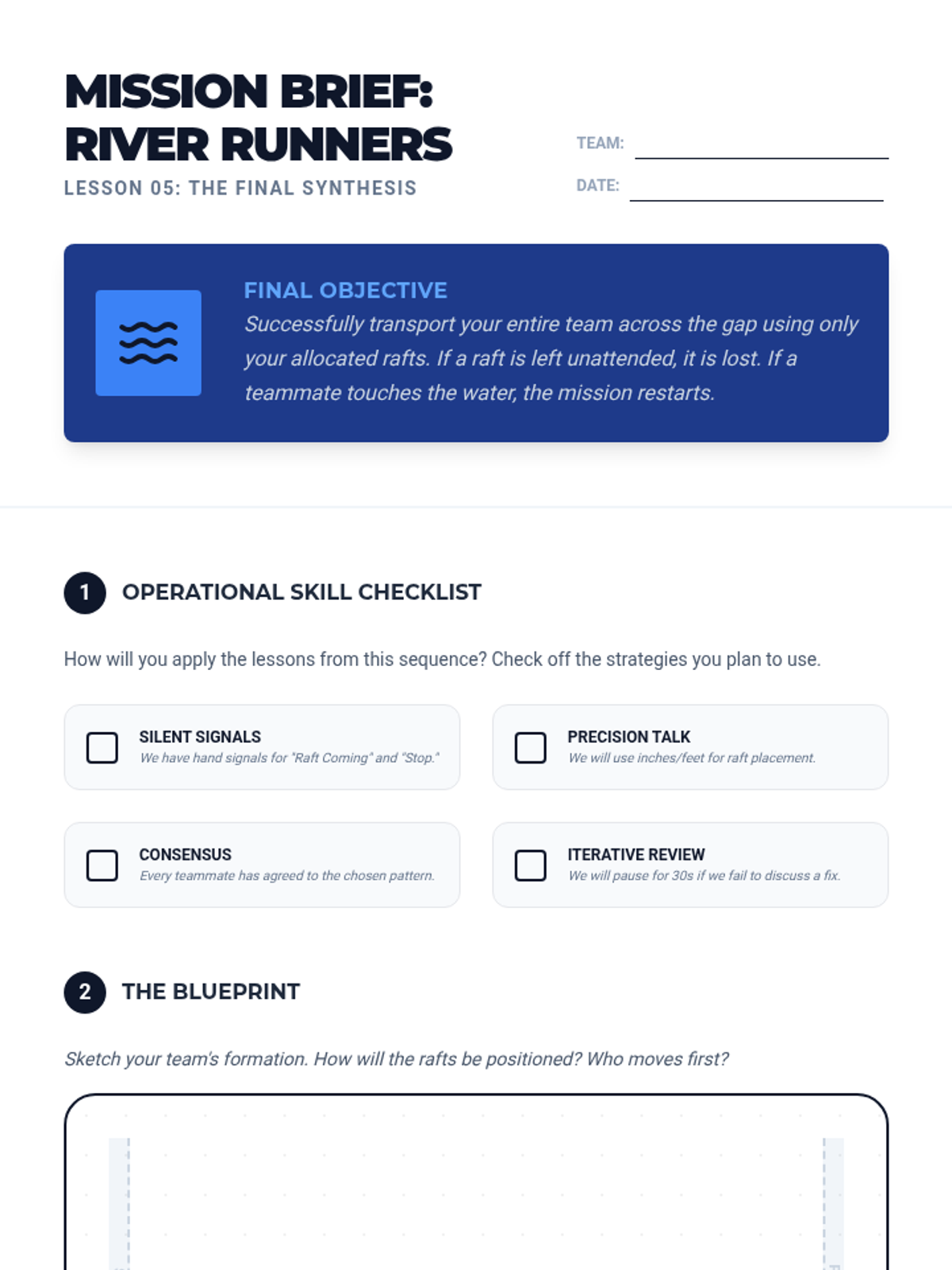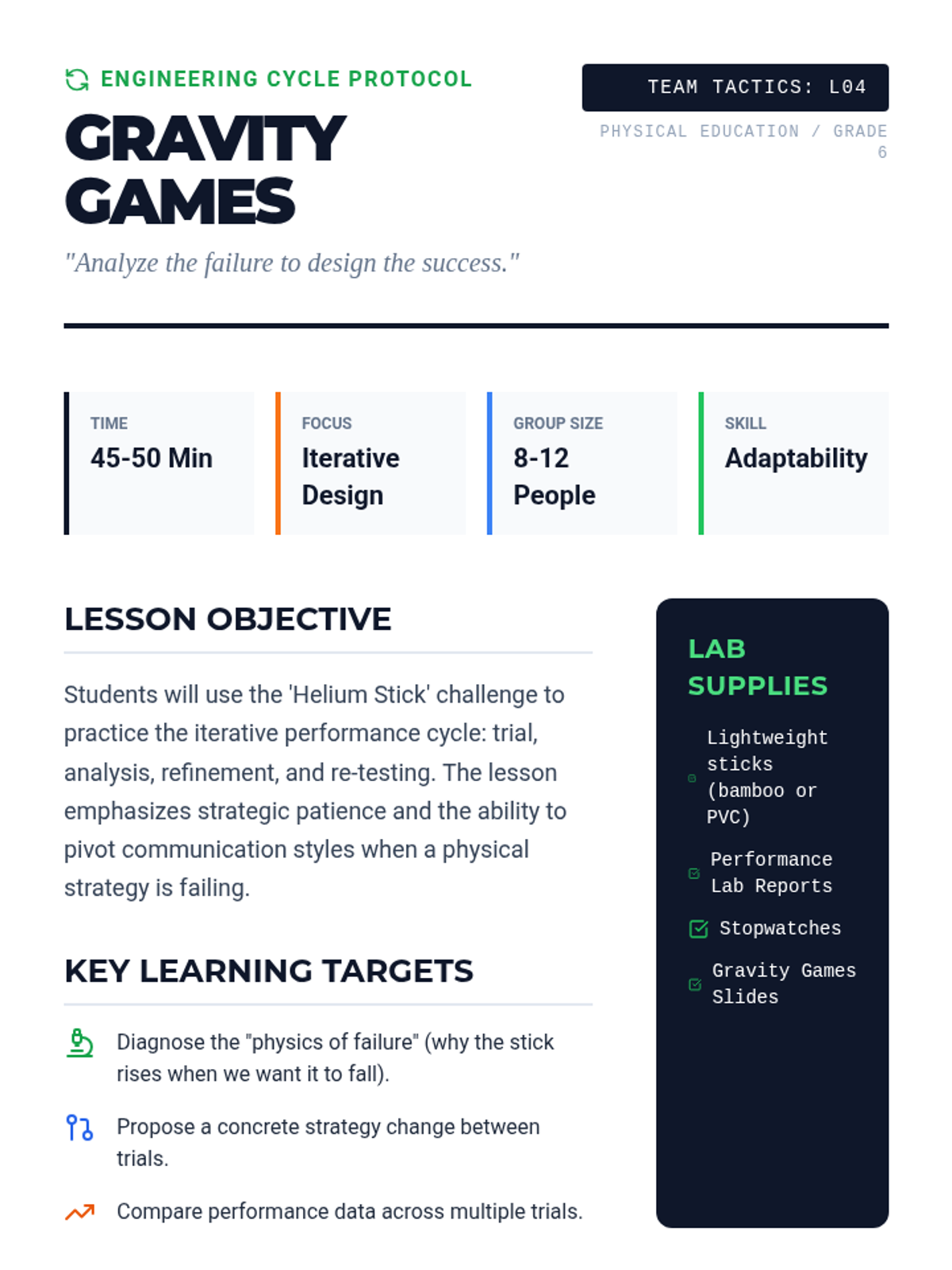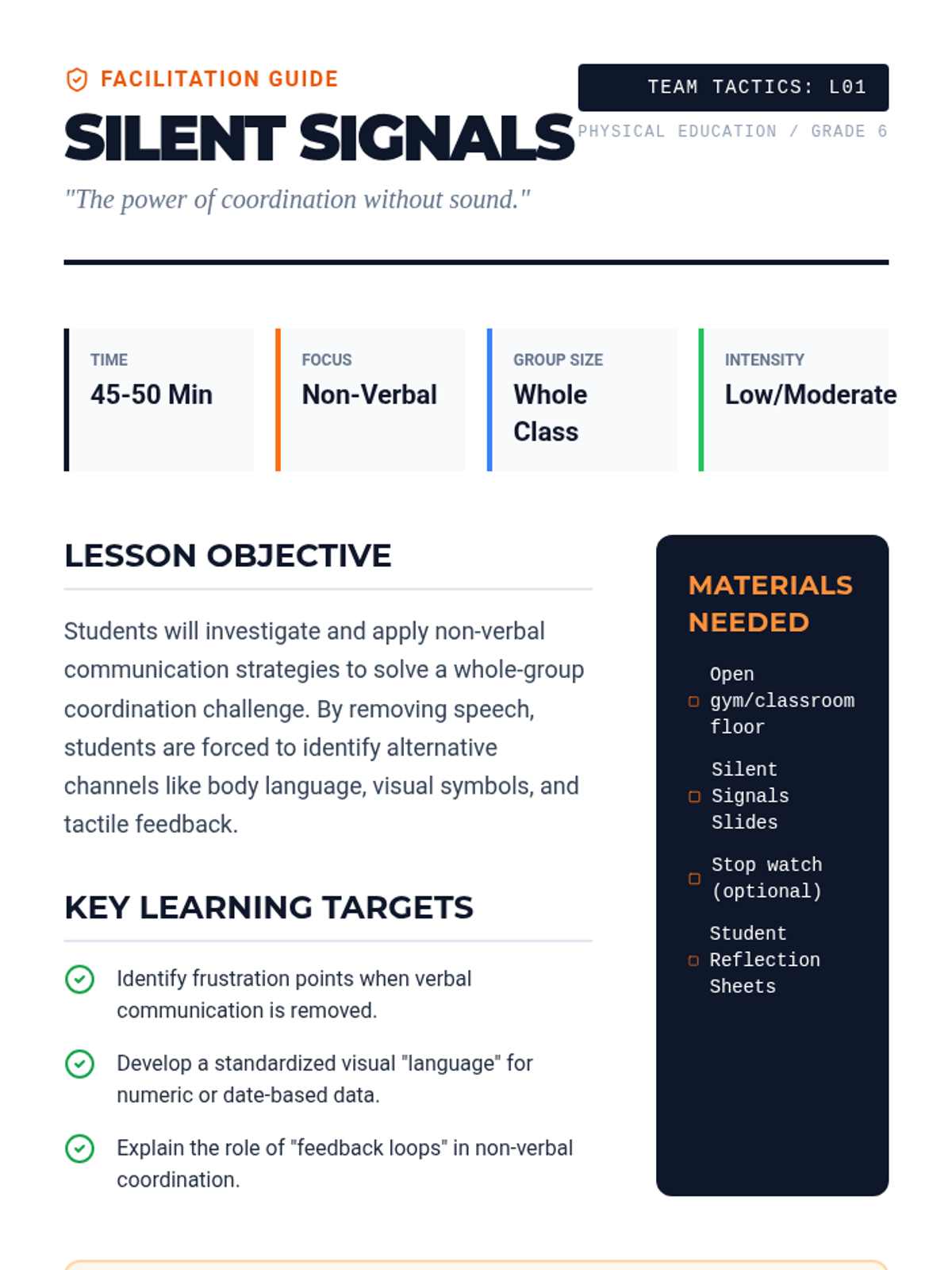 This sequence explores the critical role of communication in group success. Students progress from non-verbal coordination to complex, multi-stage problem-solving, learning to diagnose and fix communication breakdowns in physical challenges.
