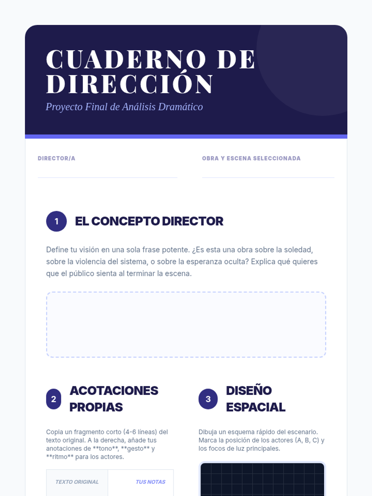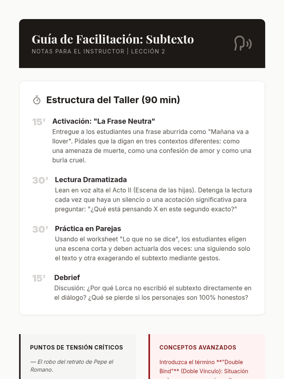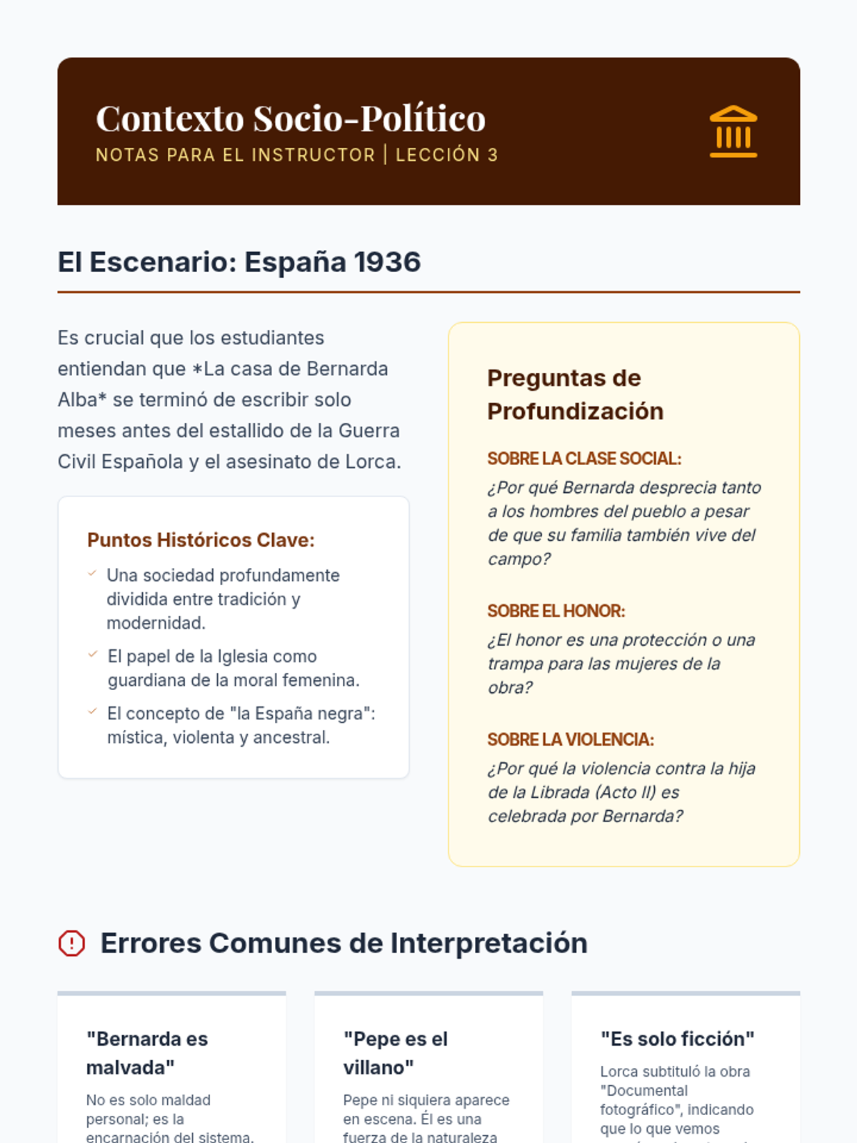 An advanced Spanish reading sequence exploring dramatic texts from Federico García Lorca to modern playwrights, focusing on symbolism, subtext, and the sociopolitical critique of Spanish society. Students analyze the transition from classical tragedy to contemporary drama through the lens of performance and directorial interpretation.