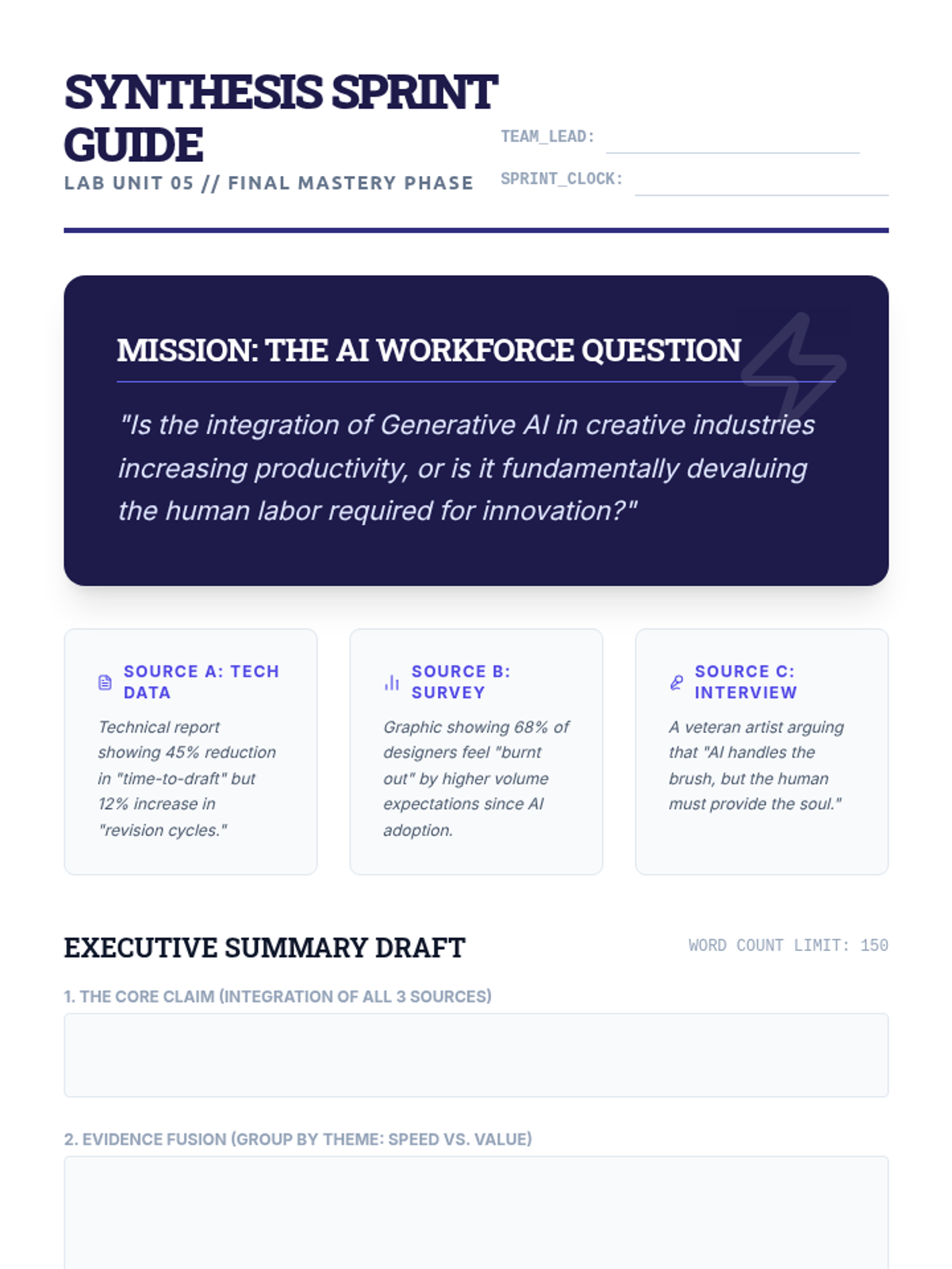 A comprehensive sequence for 9th Grade Advanced English students focusing on extracting, analyzing, and synthesizing information from dense technical and academic texts. Students move from understanding text features to creating integrated executive summaries from multiple data sources.