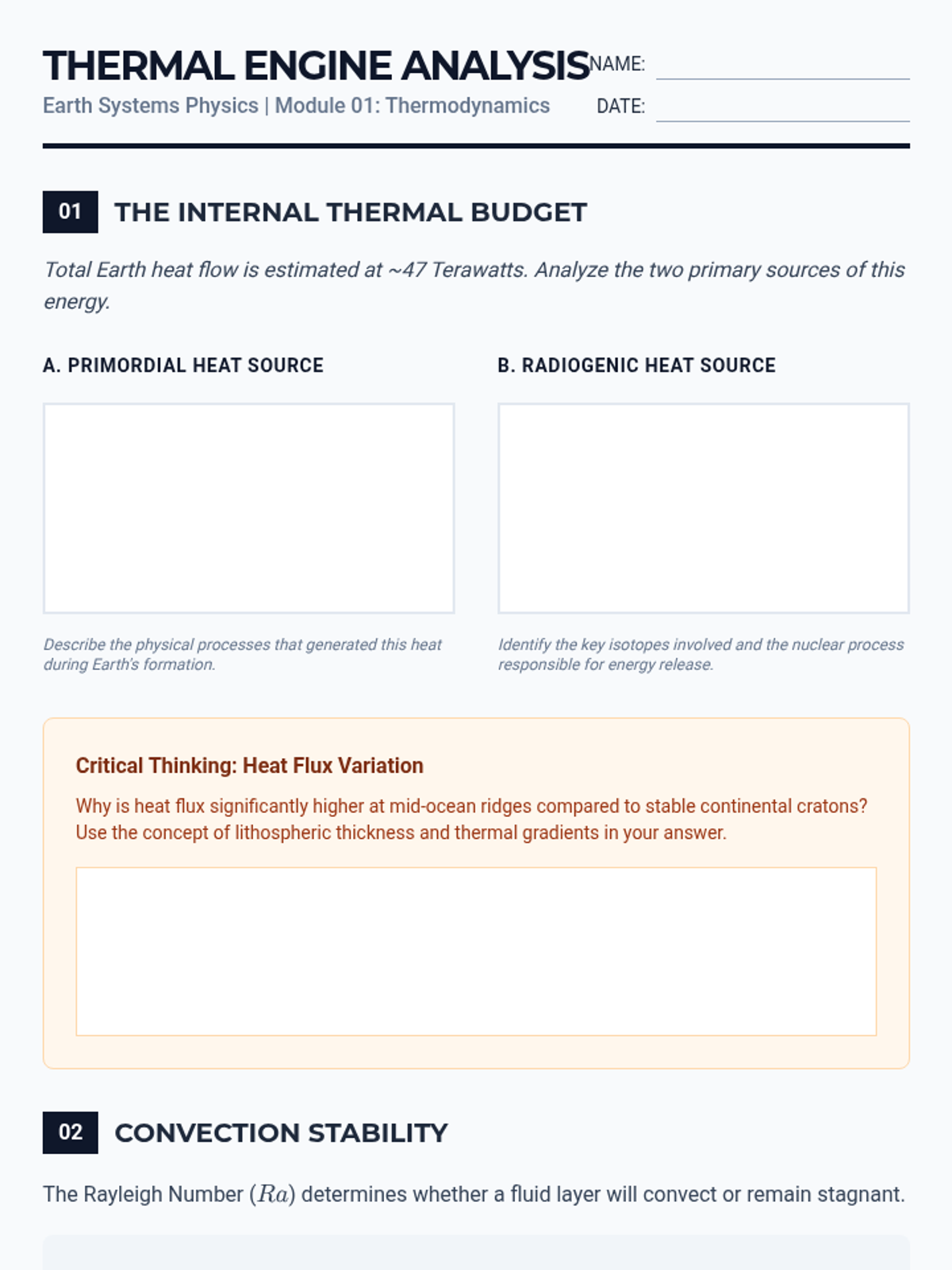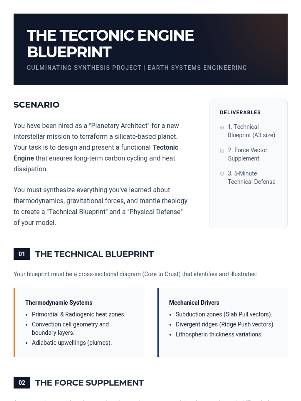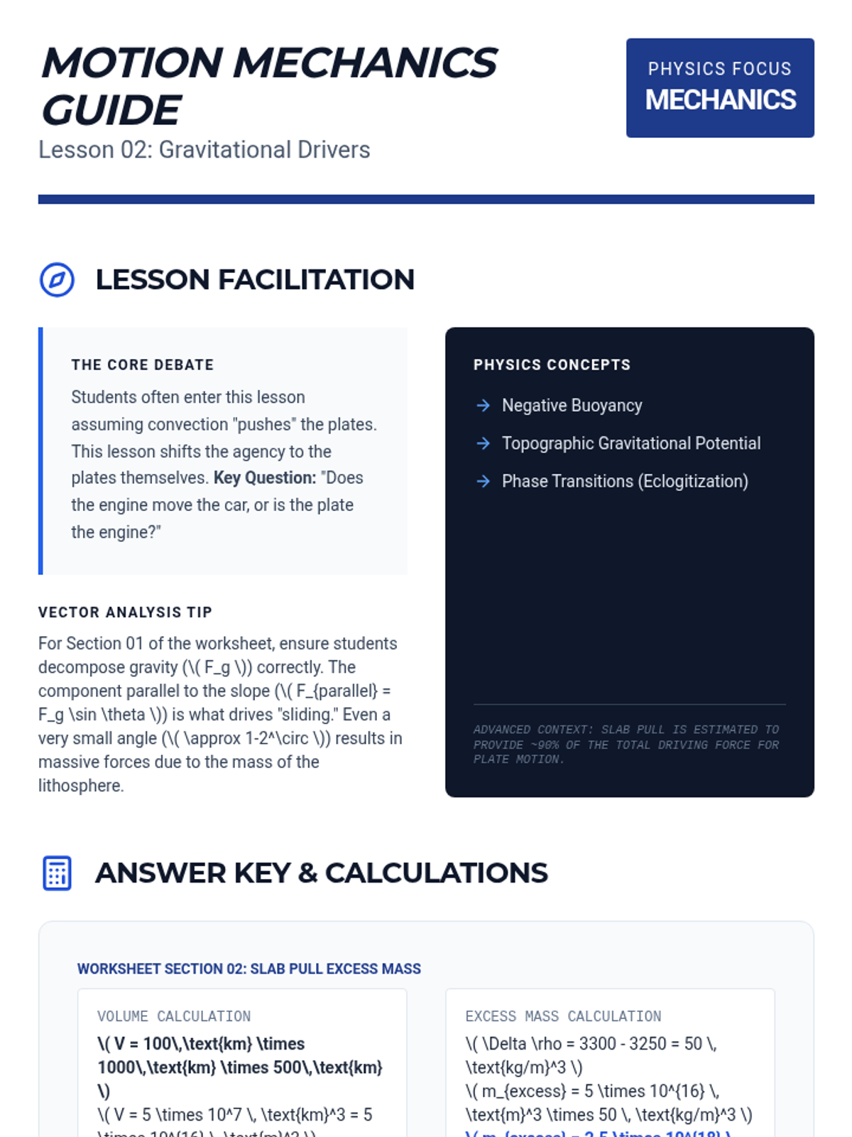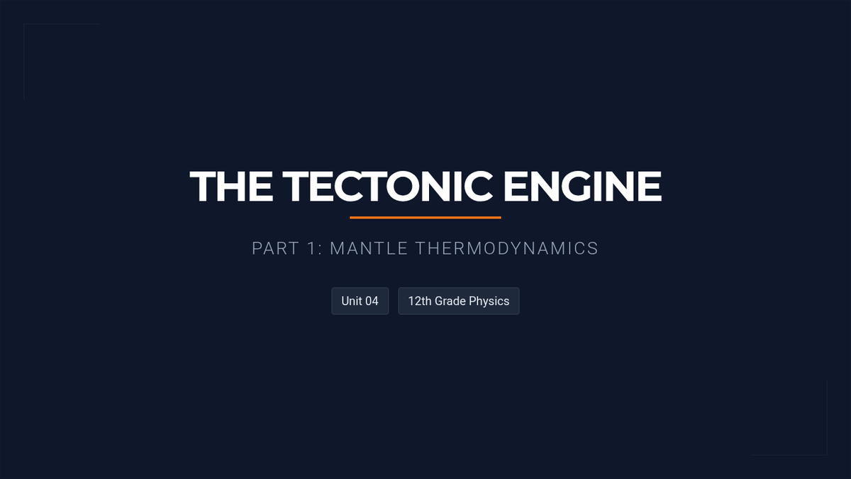 An advanced 12th-grade physics-oriented exploration of plate tectonics, focusing on the thermodynamic engines, gravitational forces, and rheological properties that drive lithospheric movement. Students will move from heat budgets to vector calculations of plate velocity.