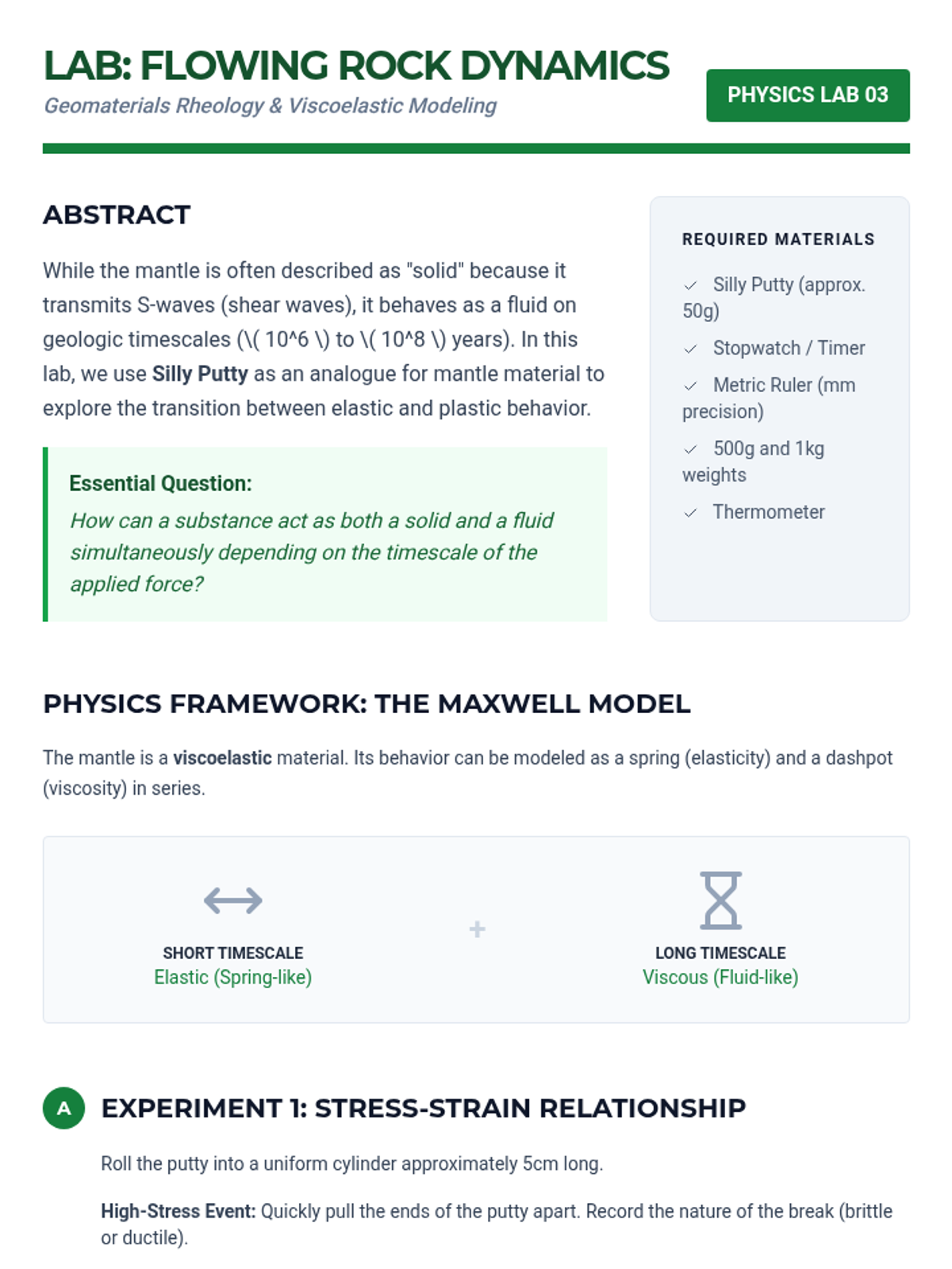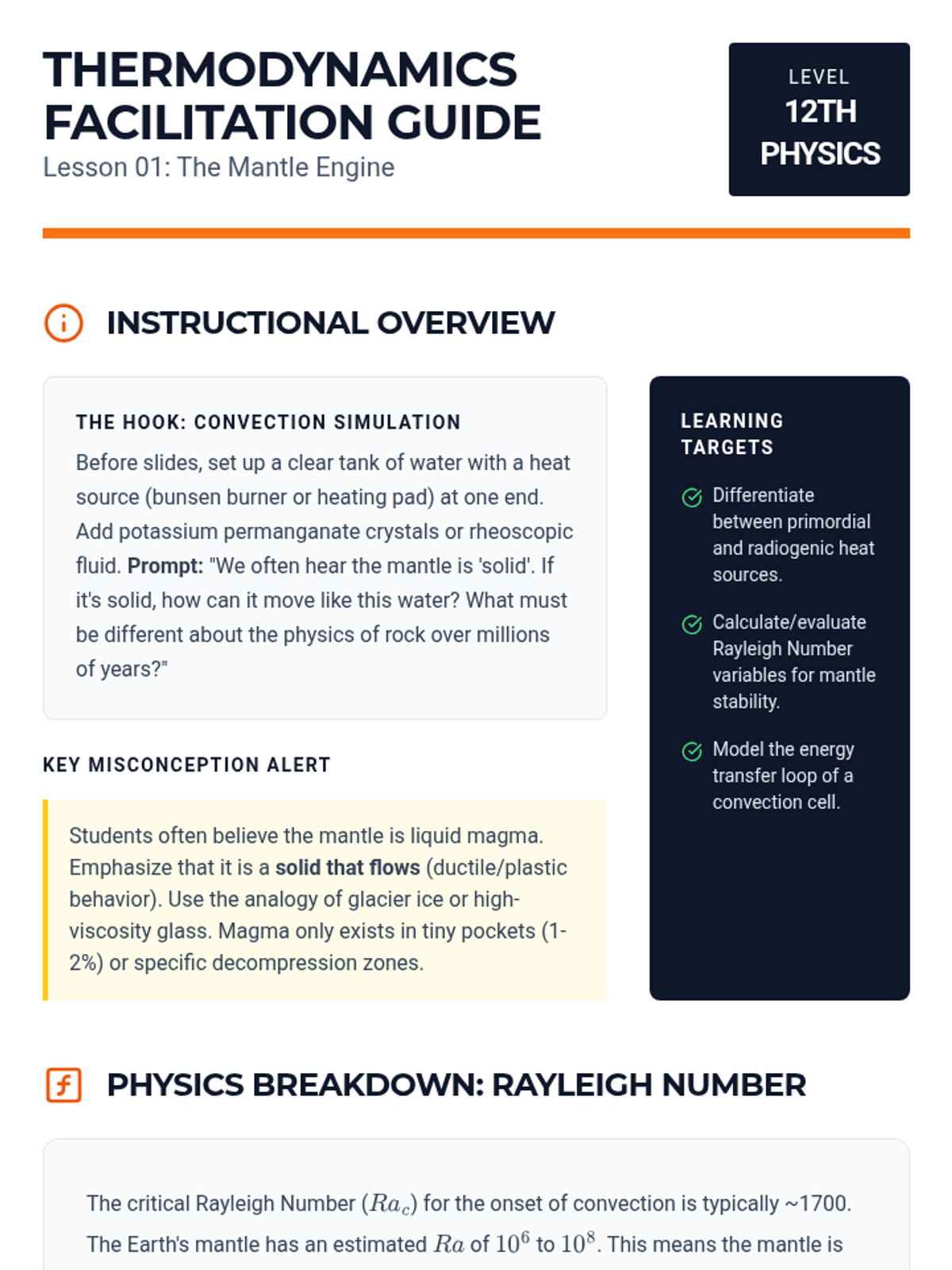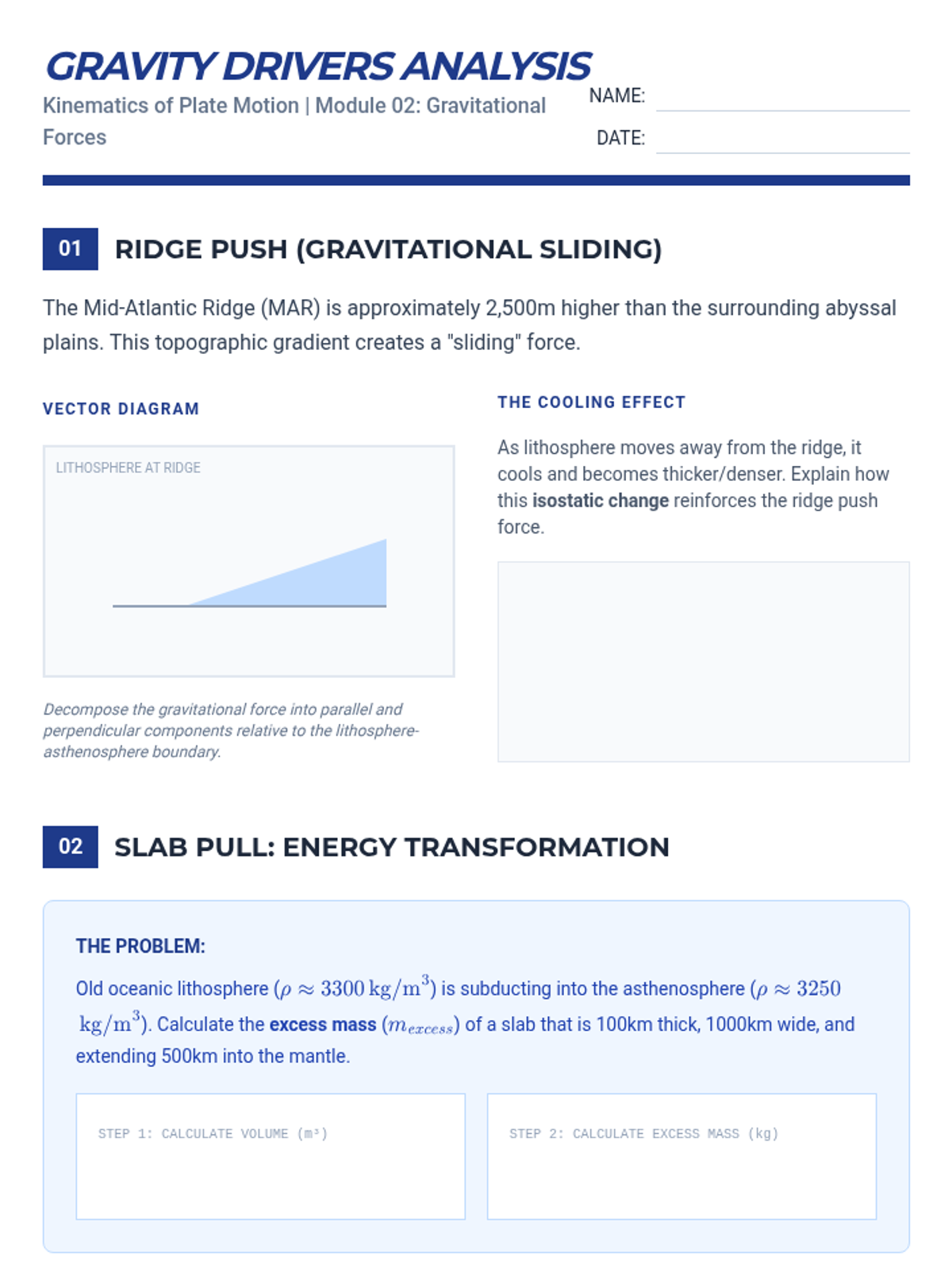 An advanced 12th-grade physics-oriented exploration of plate tectonics, focusing on the thermodynamic engines, gravitational forces, and rheological properties that drive lithospheric movement. Students will move from heat budgets to vector calculations of plate velocity.