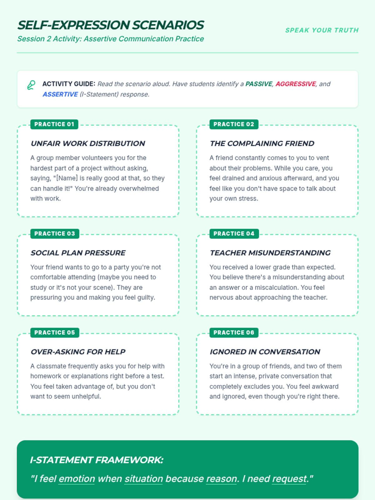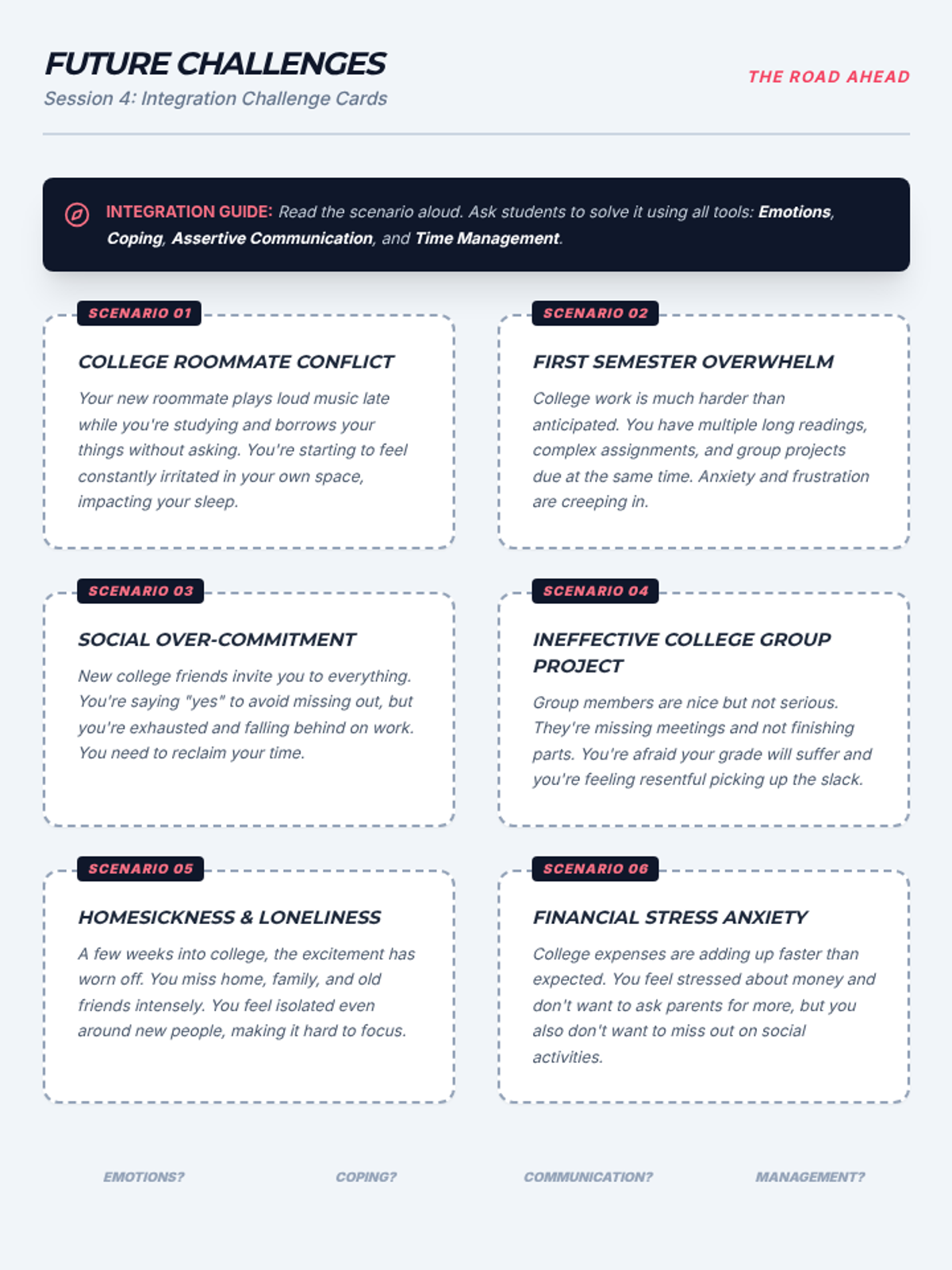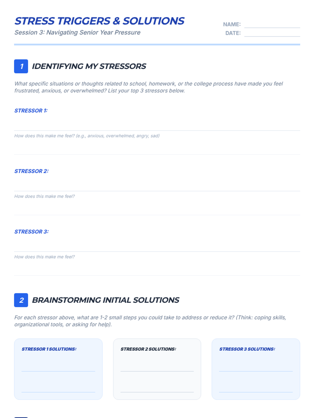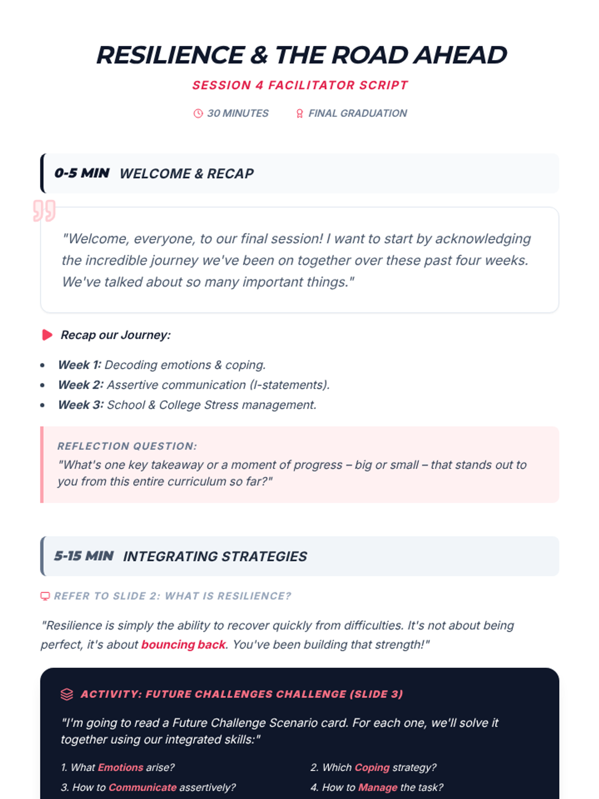 A 4-session small group counseling program for high school girls focused on identifying anxiety triggers, practicing mindfulness, and developing a personalized toolkit of coping strategies. The sequence emphasizes peer support, empowerment, and practical application within the school environment.