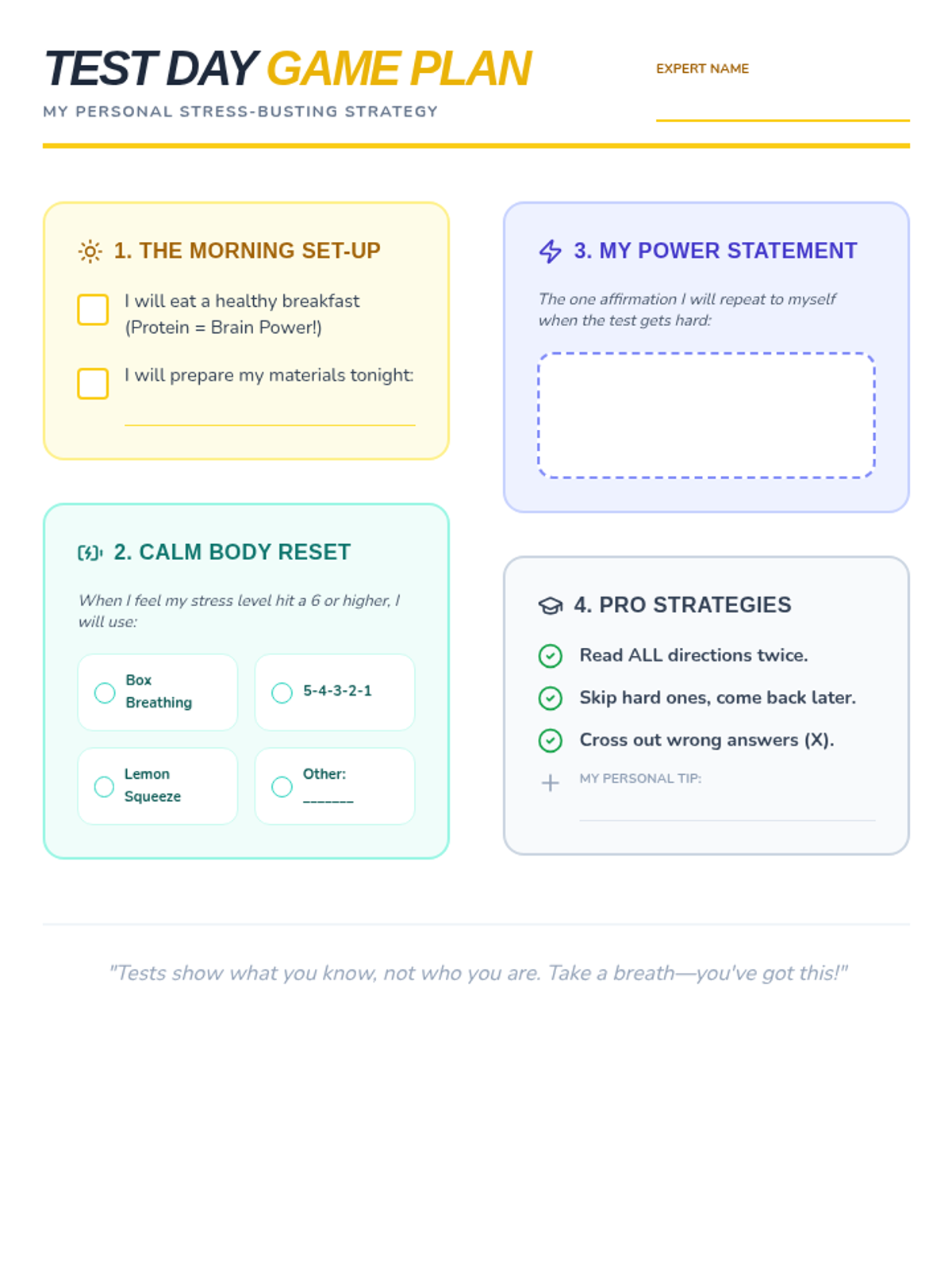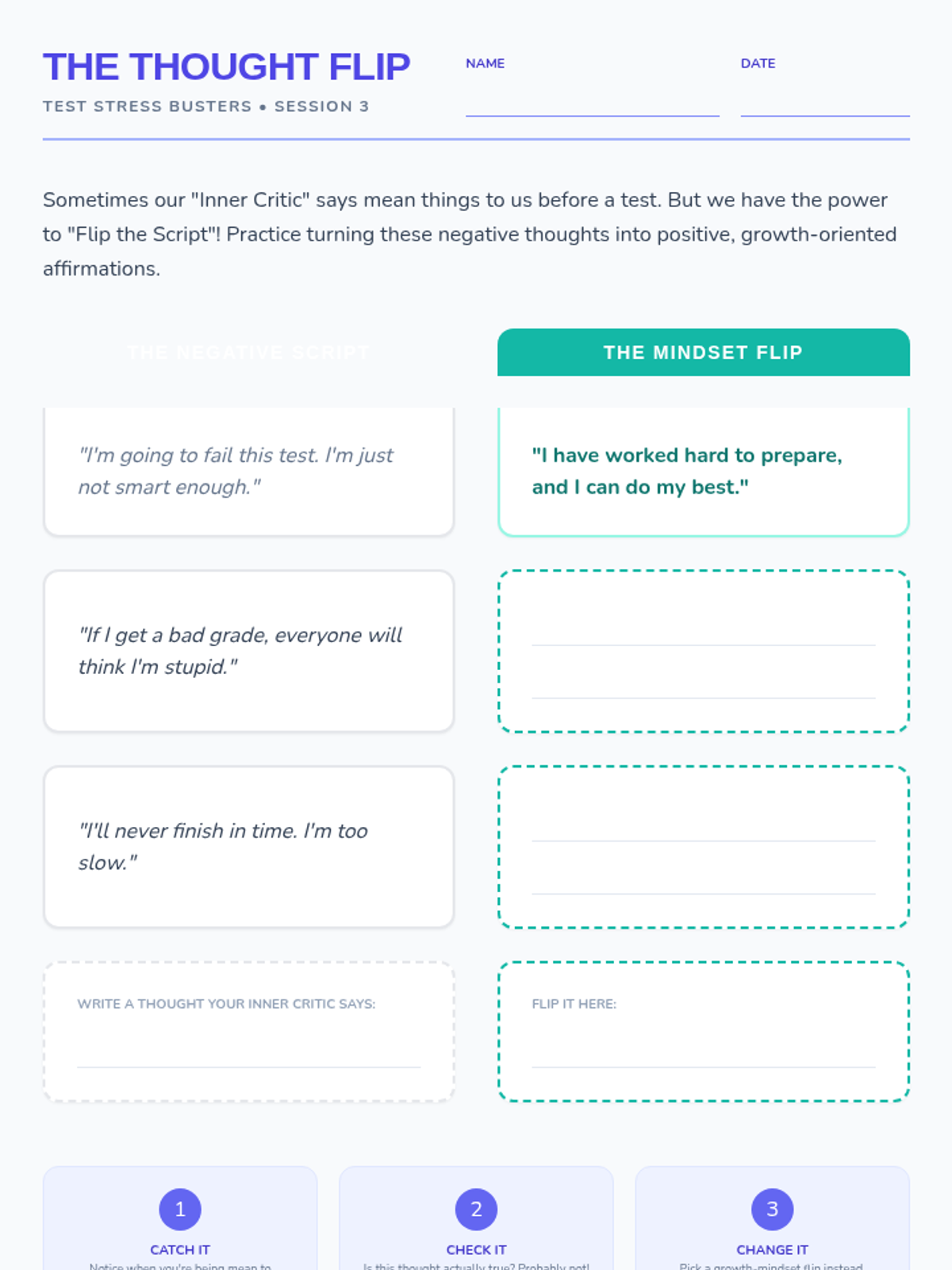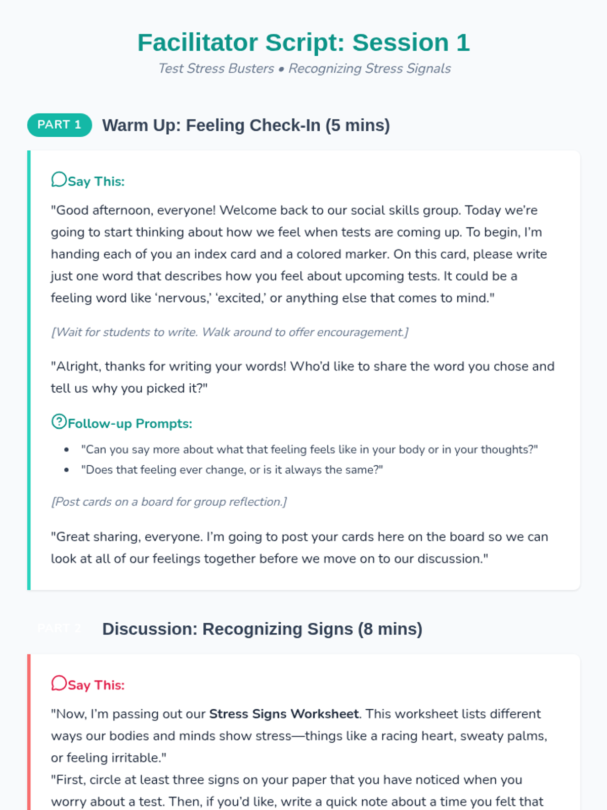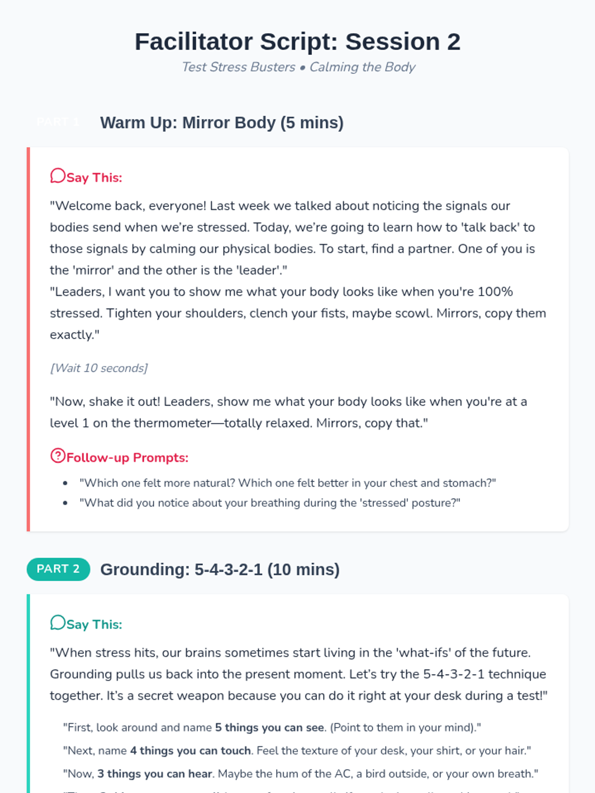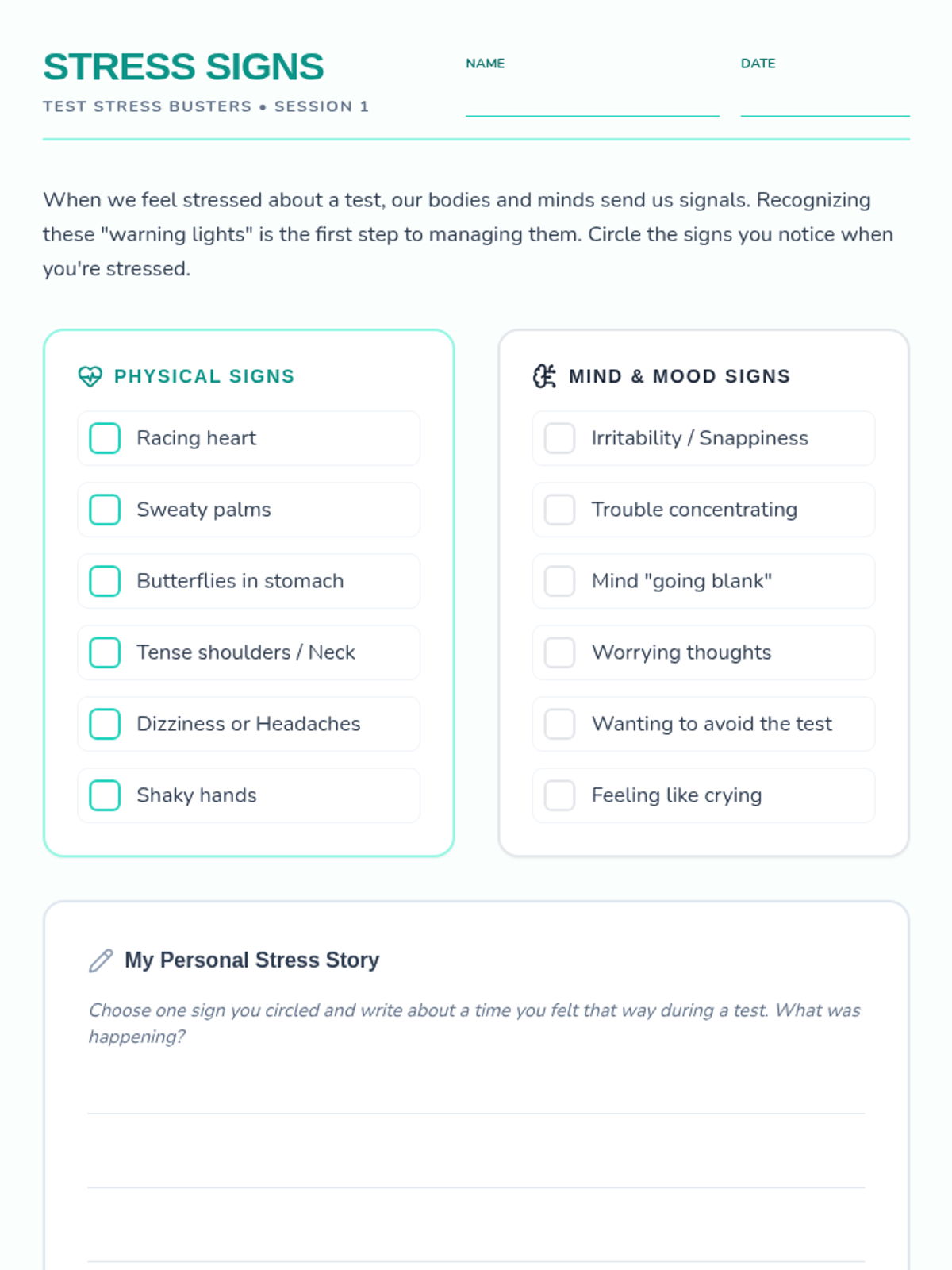 A four-session counseling program designed for middle school girls to identify stress signals, practice regulation techniques, and build test-taking confidence.