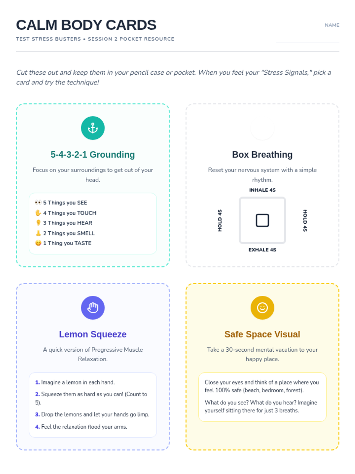 A 6-session counseling group designed to help students identify triggers, understand physical symptoms of anxiety, and build a personalized toolkit of coping strategies through a 'Calm Explorer' theme.