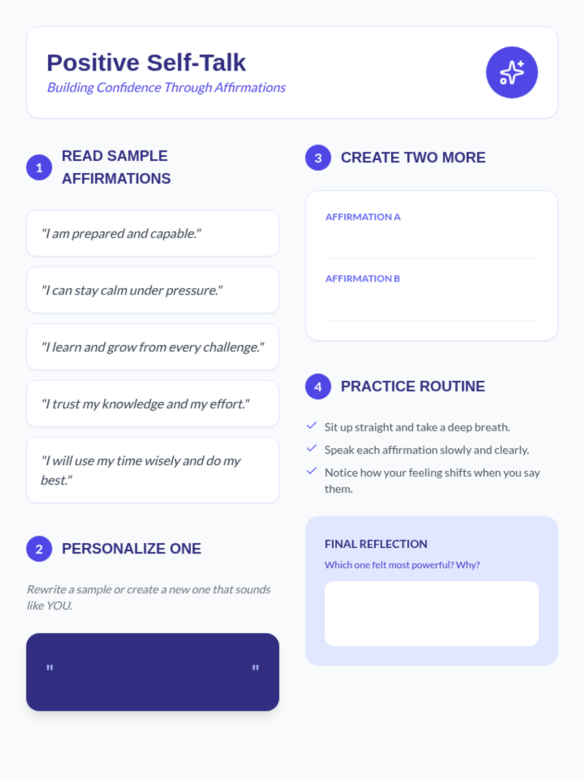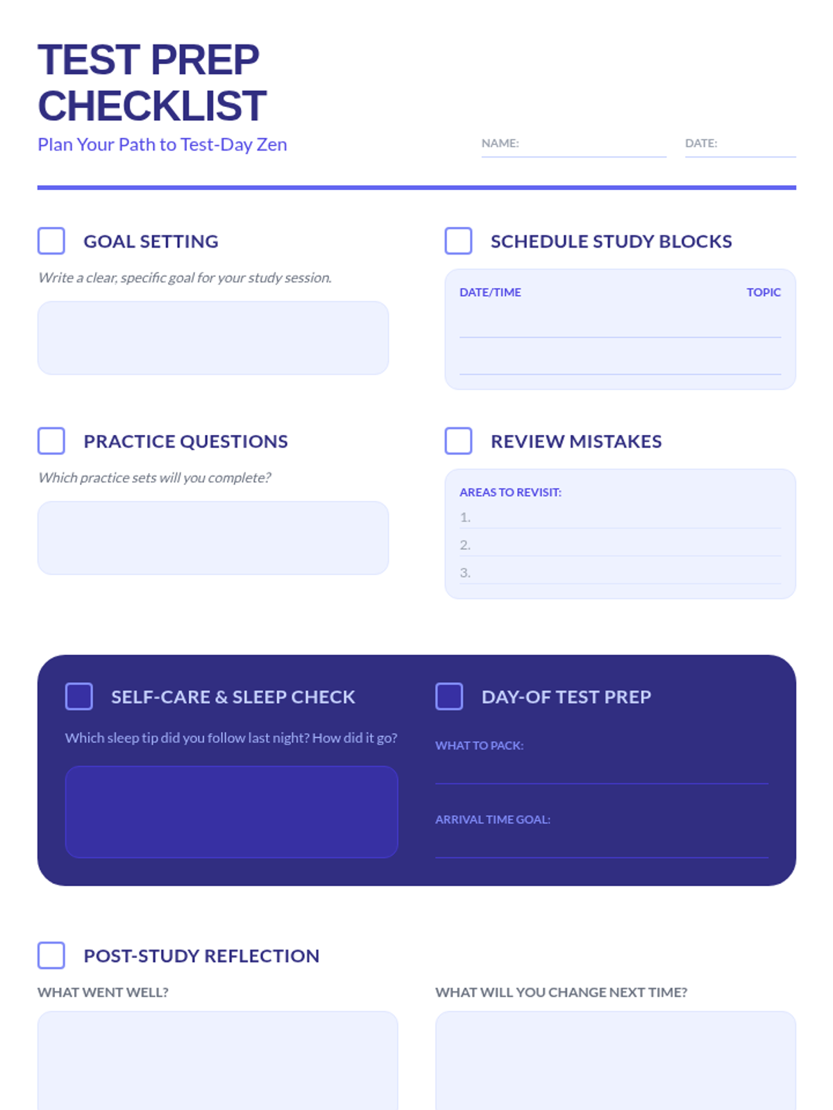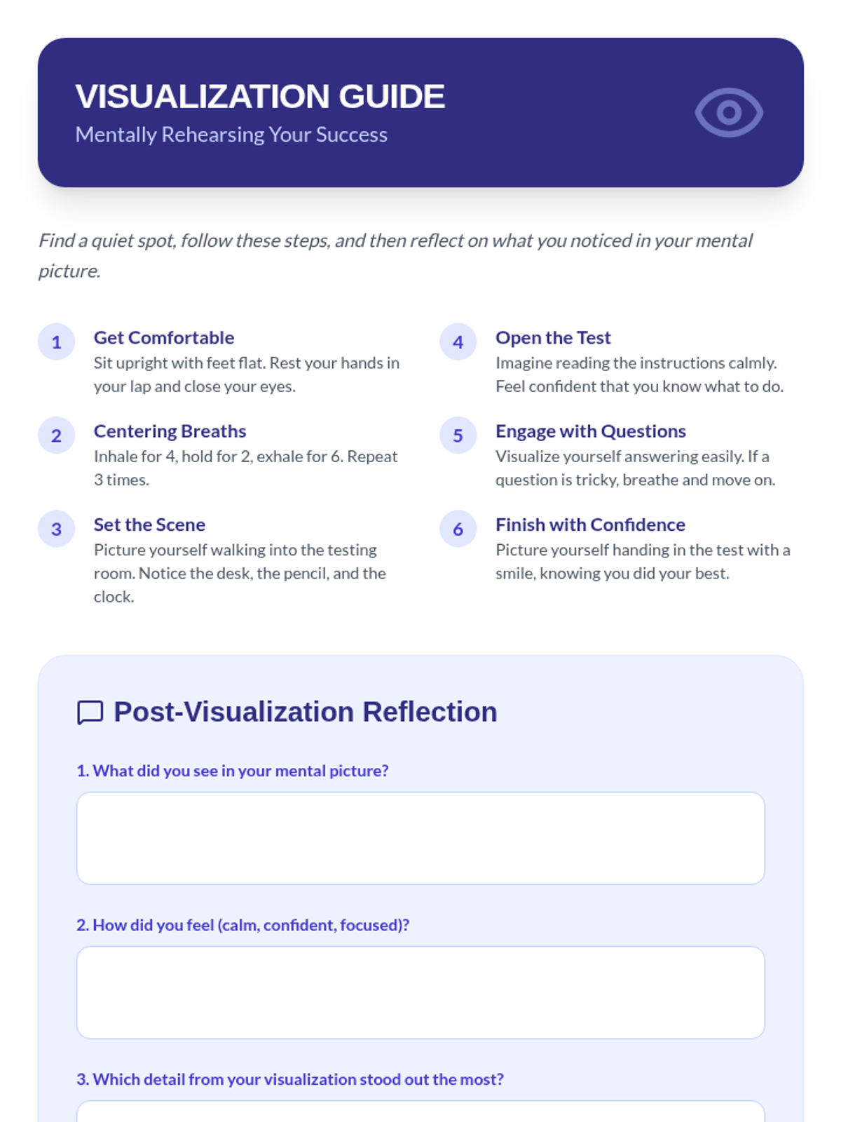 A 2-session series for 8th graders focused on managing state test anxiety through sleep hygiene, stress reduction, and structured prep routines.