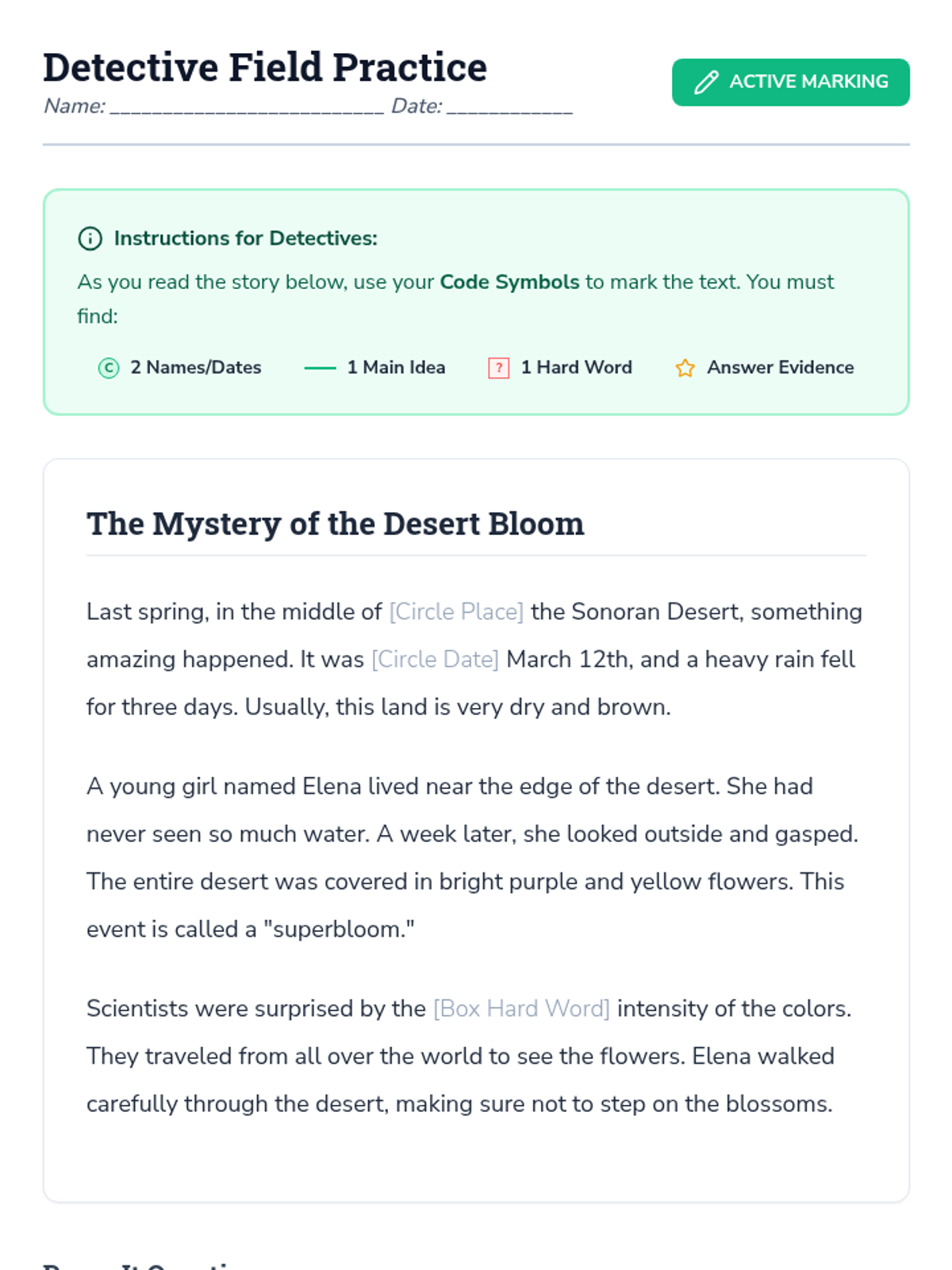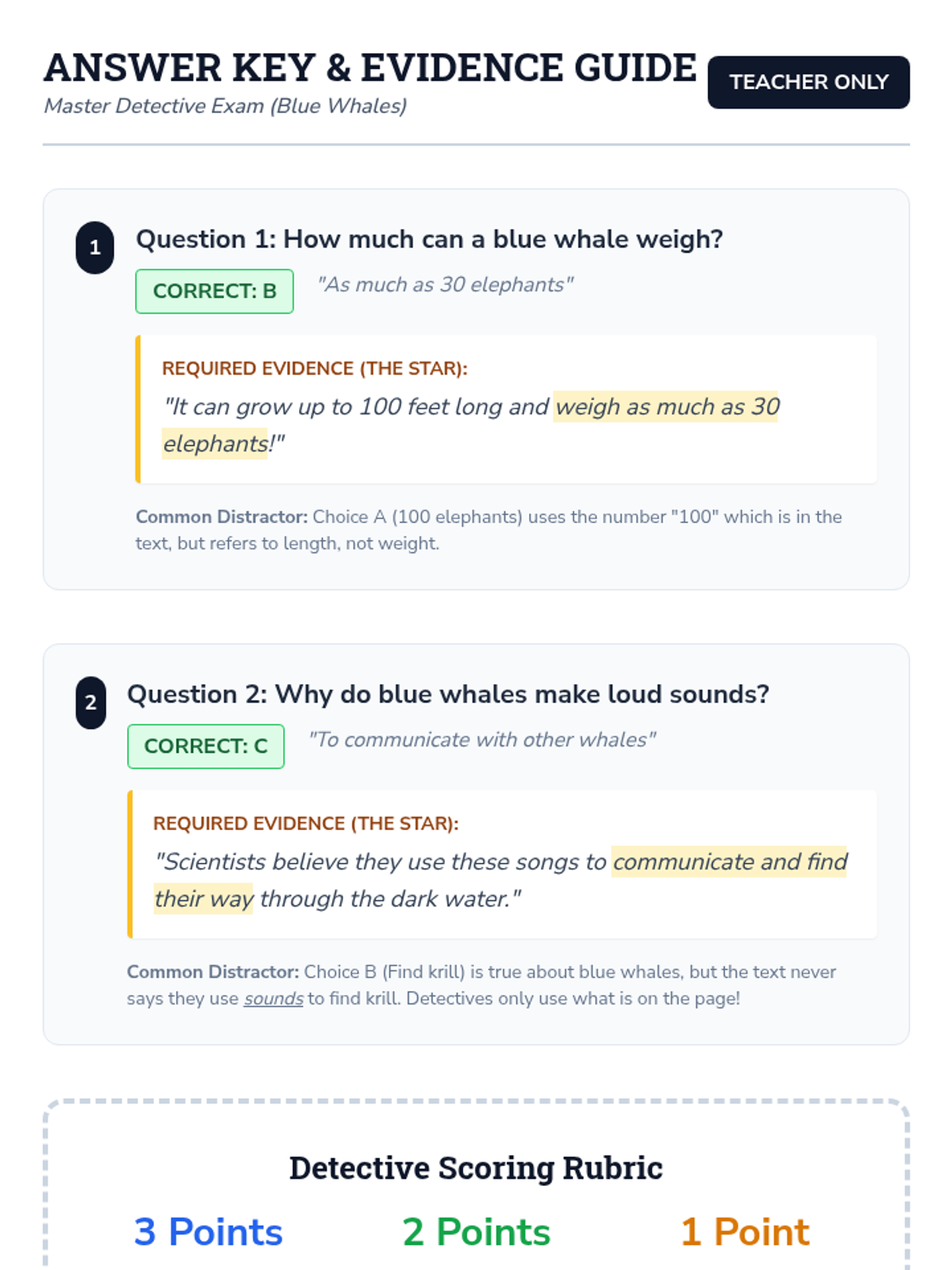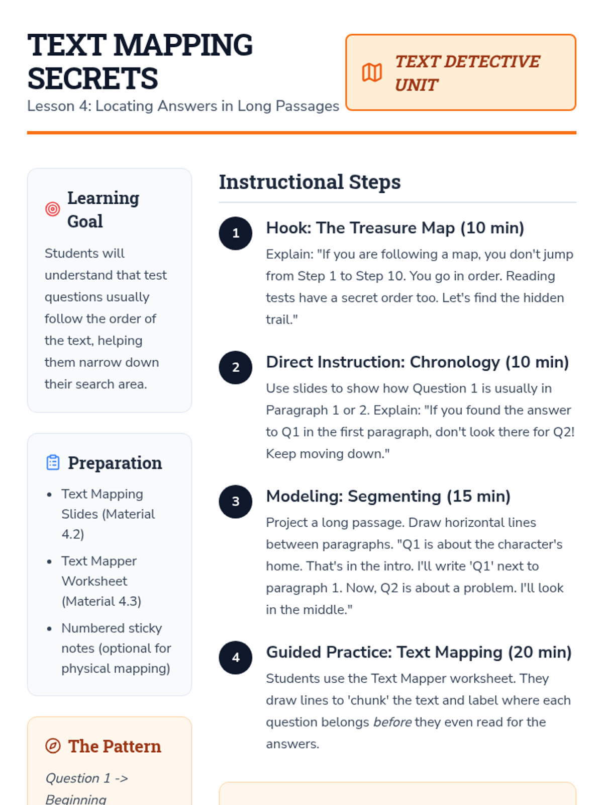 A 5-lesson unit for 4th Grade ESL students focusing on test-taking strategies for reading comprehension. Students learn to use their 'detective tools' to find evidence, annotate effectively, and navigate passages with a focus on 'proving' their answers rather than guessing.
