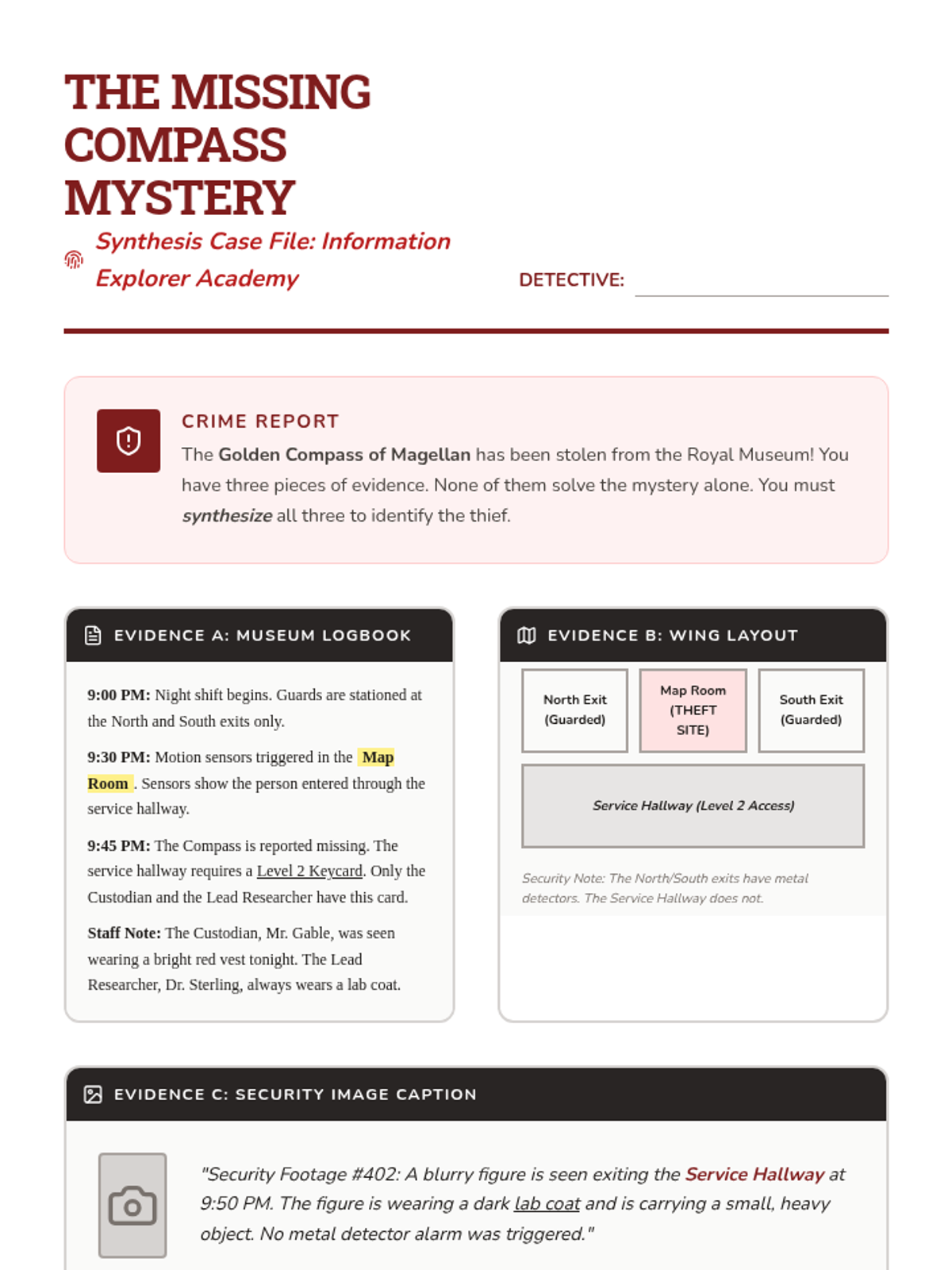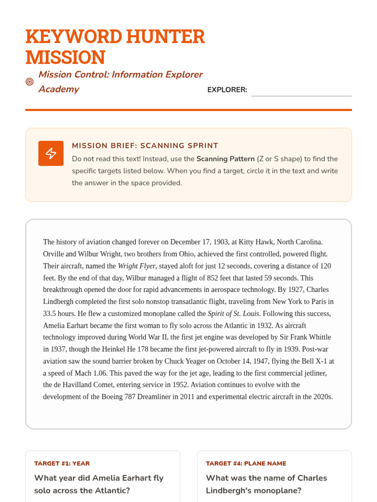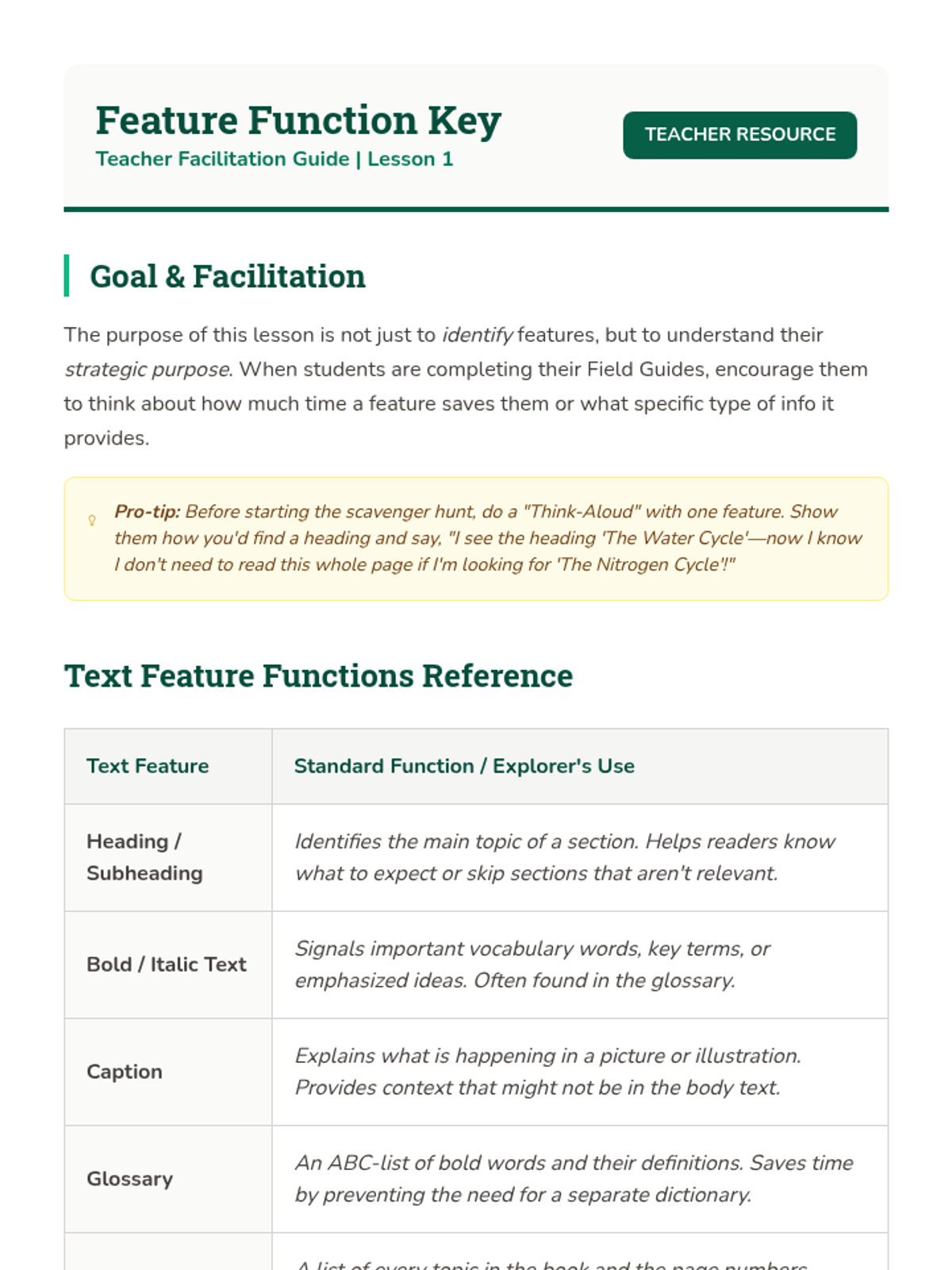A comprehensive sequence for 6th-grade students to master informational text navigation, skimming and scanning techniques, active annotation, and information synthesis. Students develop critical study skills through an 'Information Explorer' theme, progressing from basic feature identification to complex synthesis.