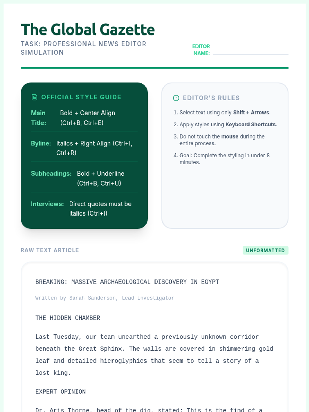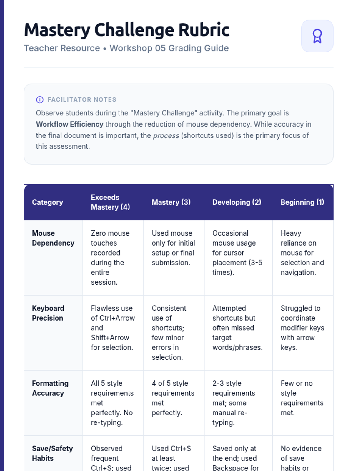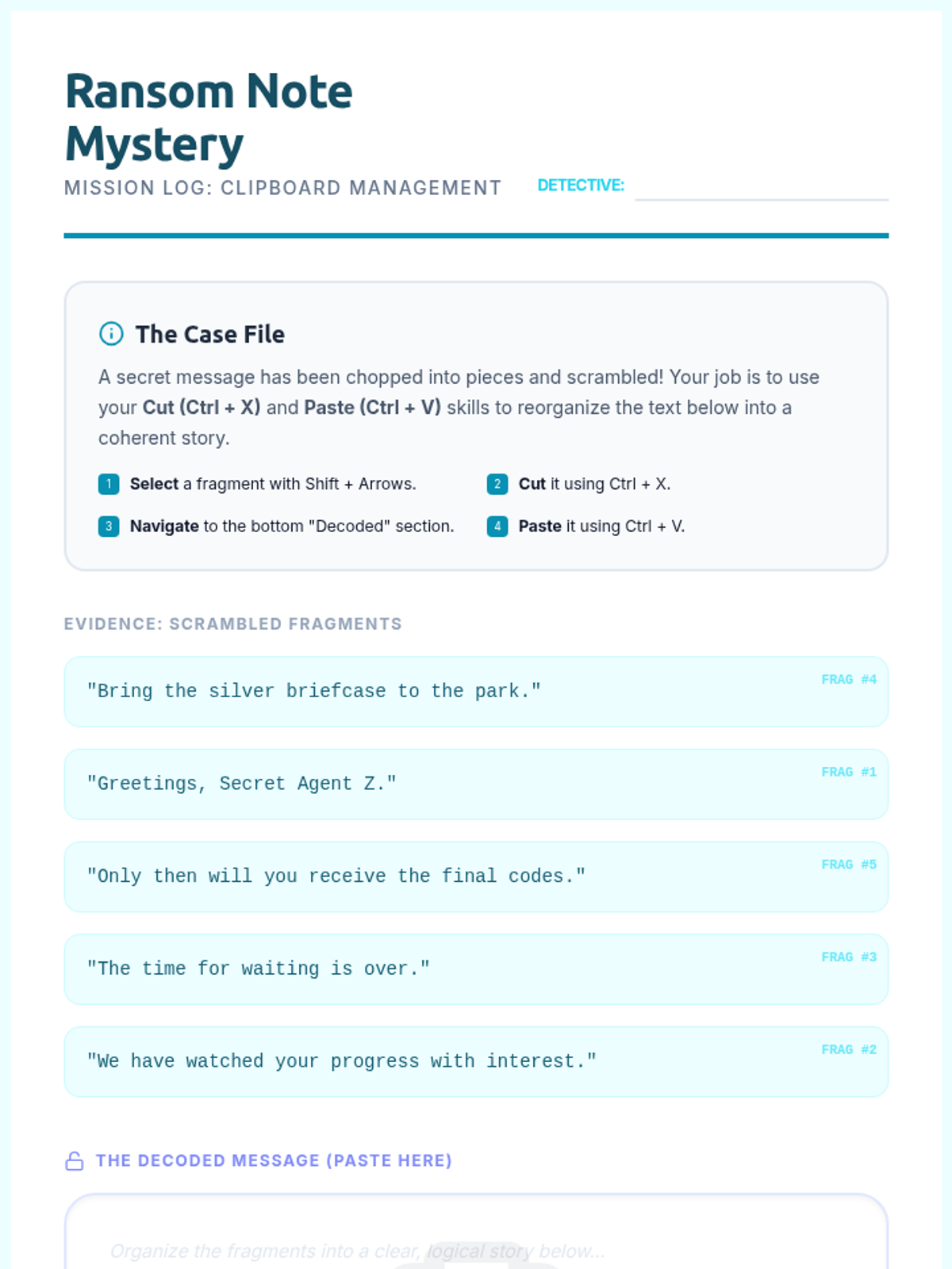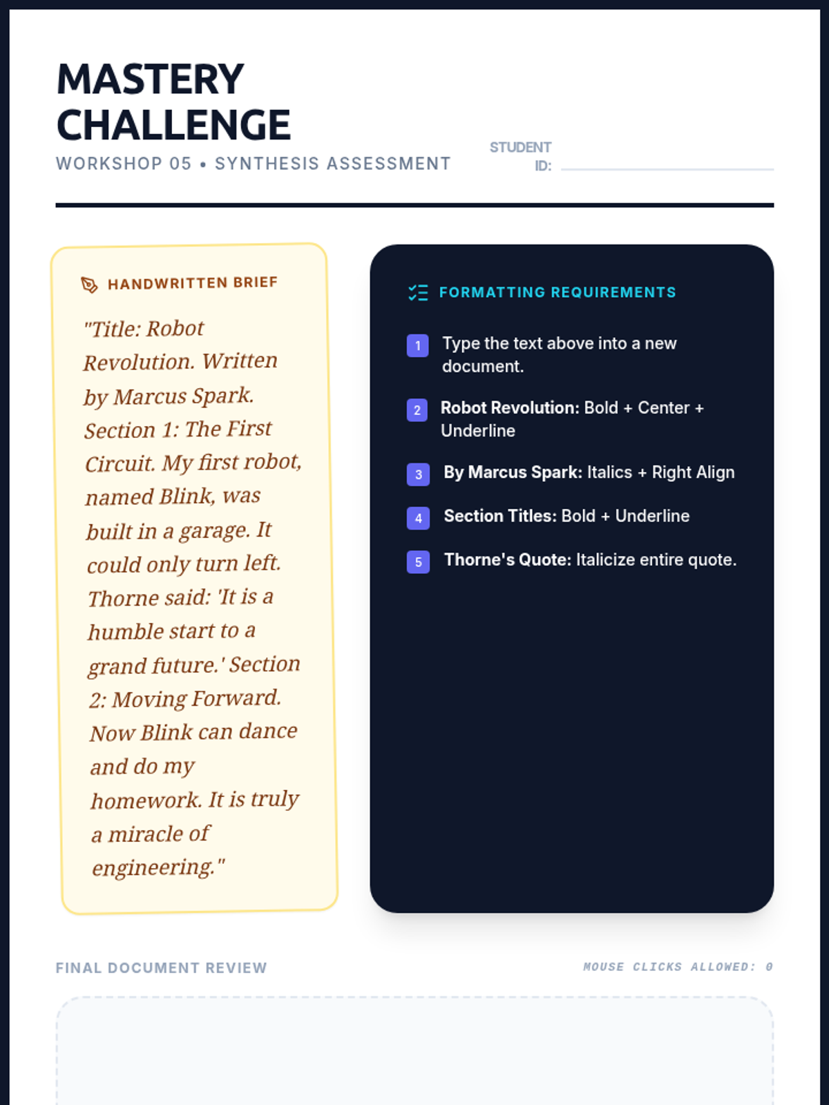 A comprehensive workshop-style sequence for 7th-grade students to master text processing and document formatting using keyboard shortcuts, enhancing academic productivity and independence.