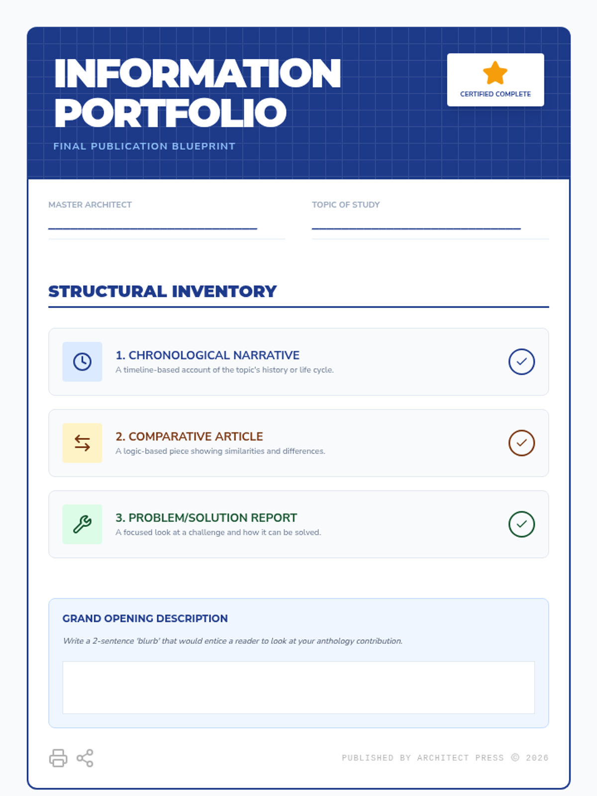 A 5th-grade ELA sequence where students act as 'Information Architects' to research a topic and draft it using three different text structures (Chronological, Comparison, and Problem/Solution) to understand how organizational patterns influence meaning.