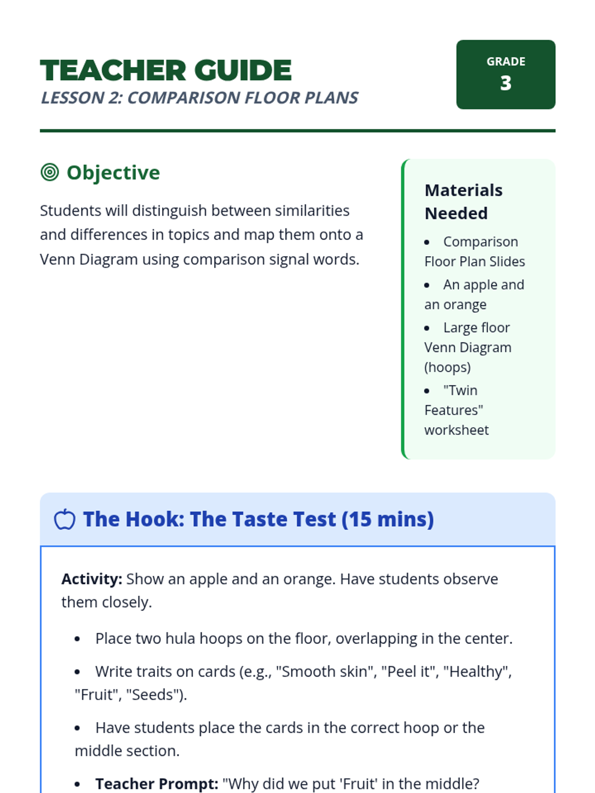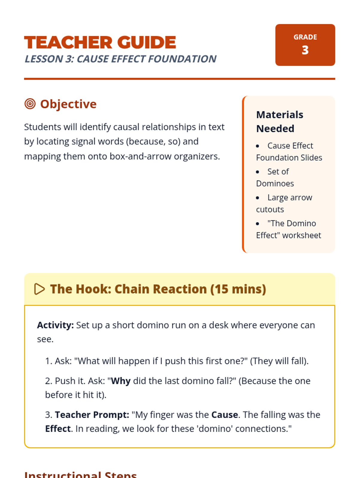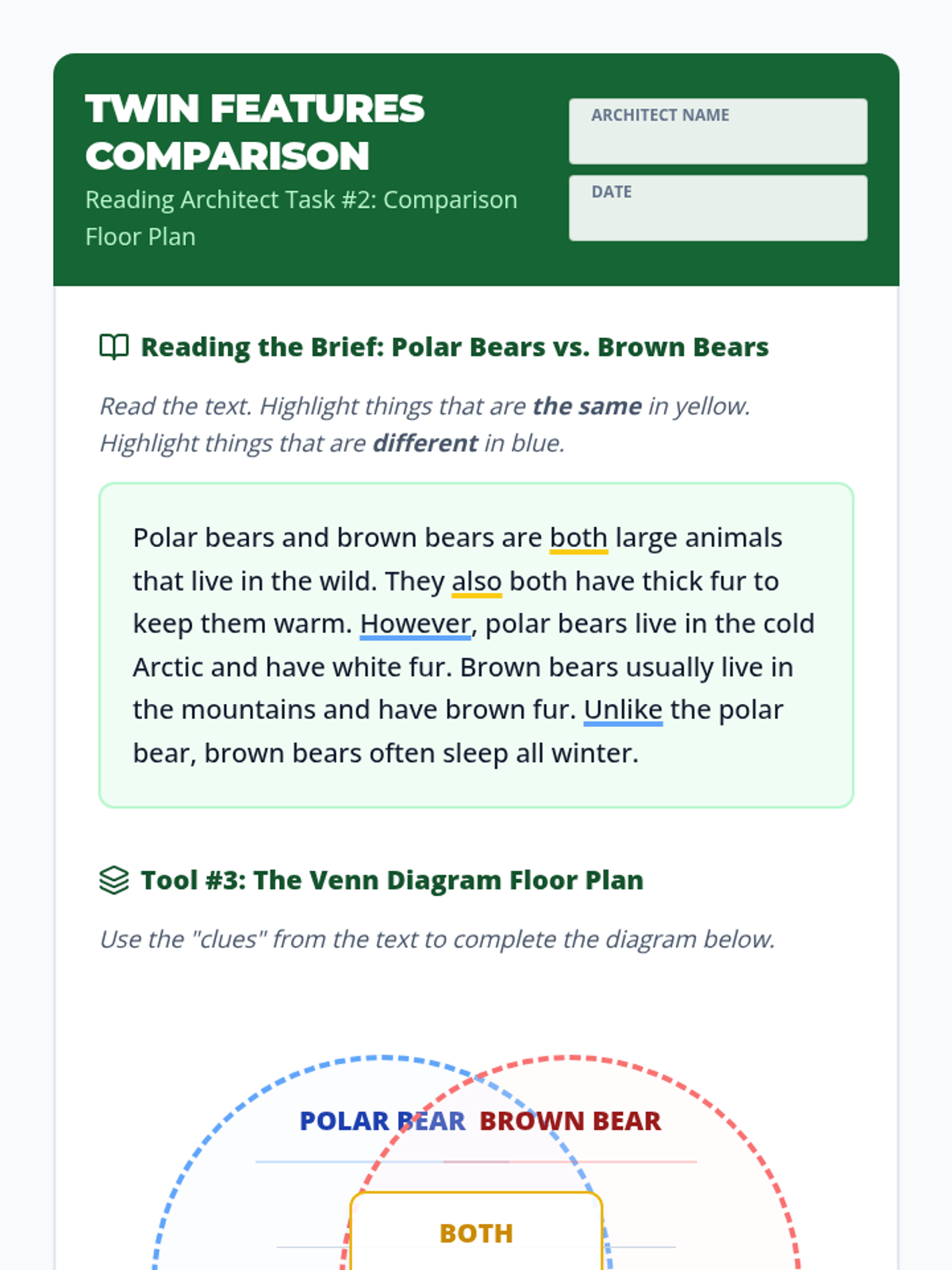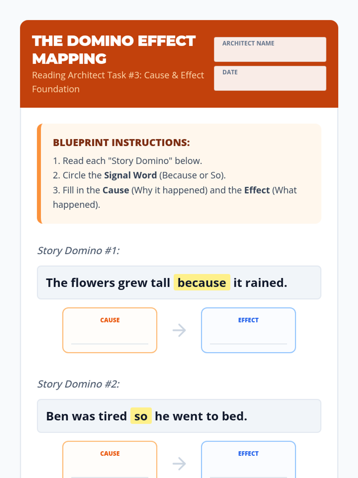 This sequence introduces 3rd-grade students to three primary text structures: sequence, comparison, and cause-effect. Using a 'Reading Architect' theme, students learn to use specific graphic organizers to map out information, identifying signal words as clues for which 'blueprint' to use.