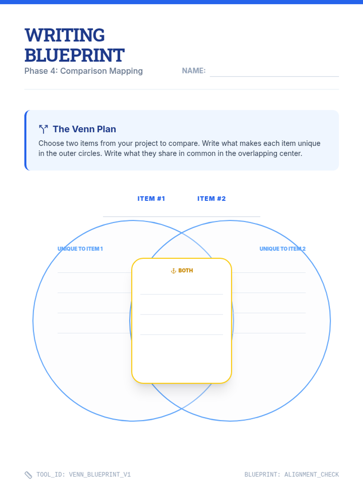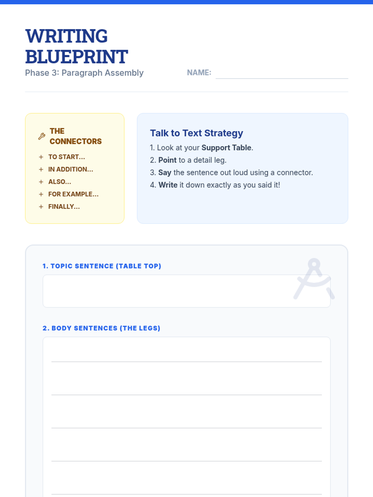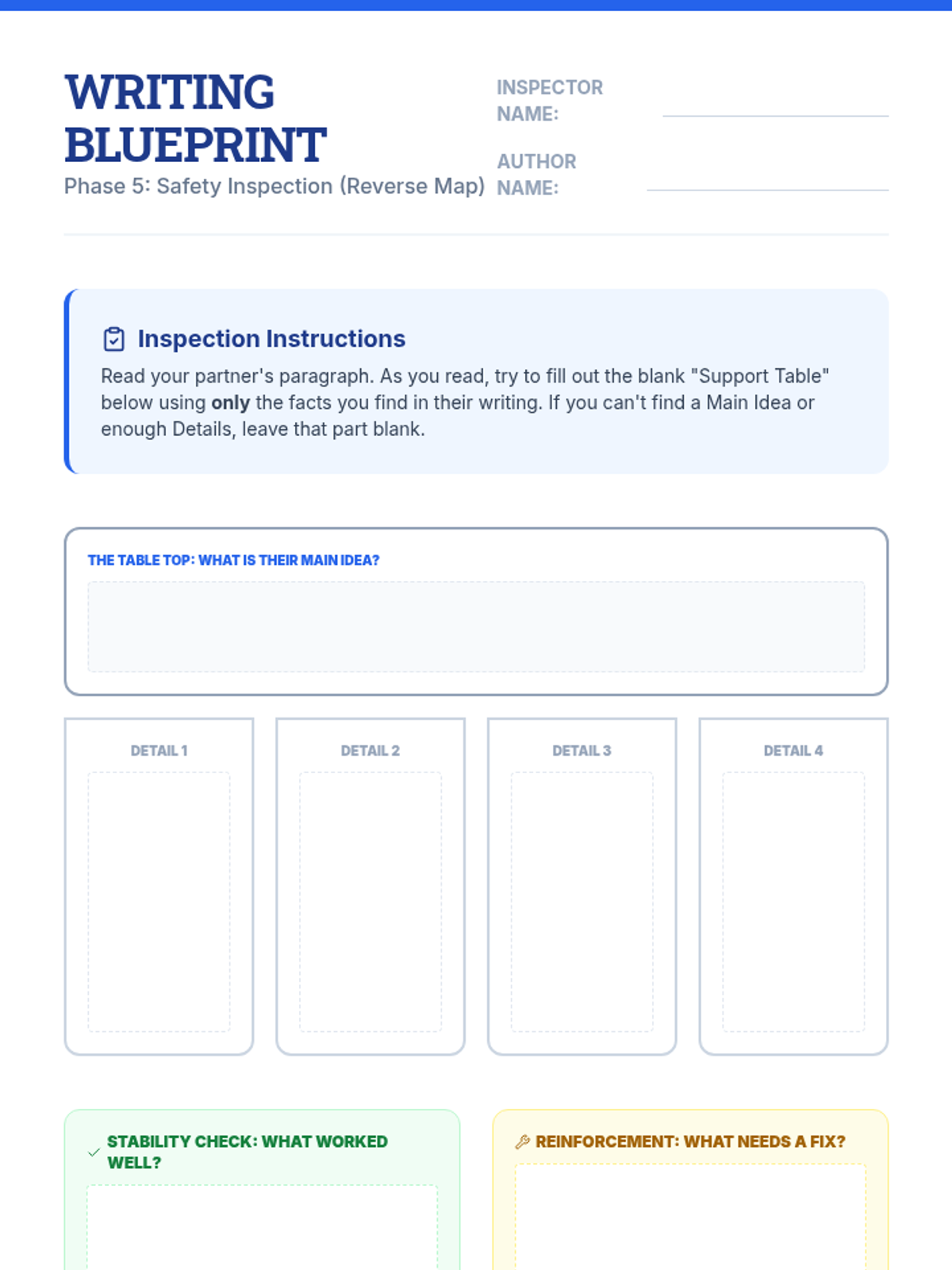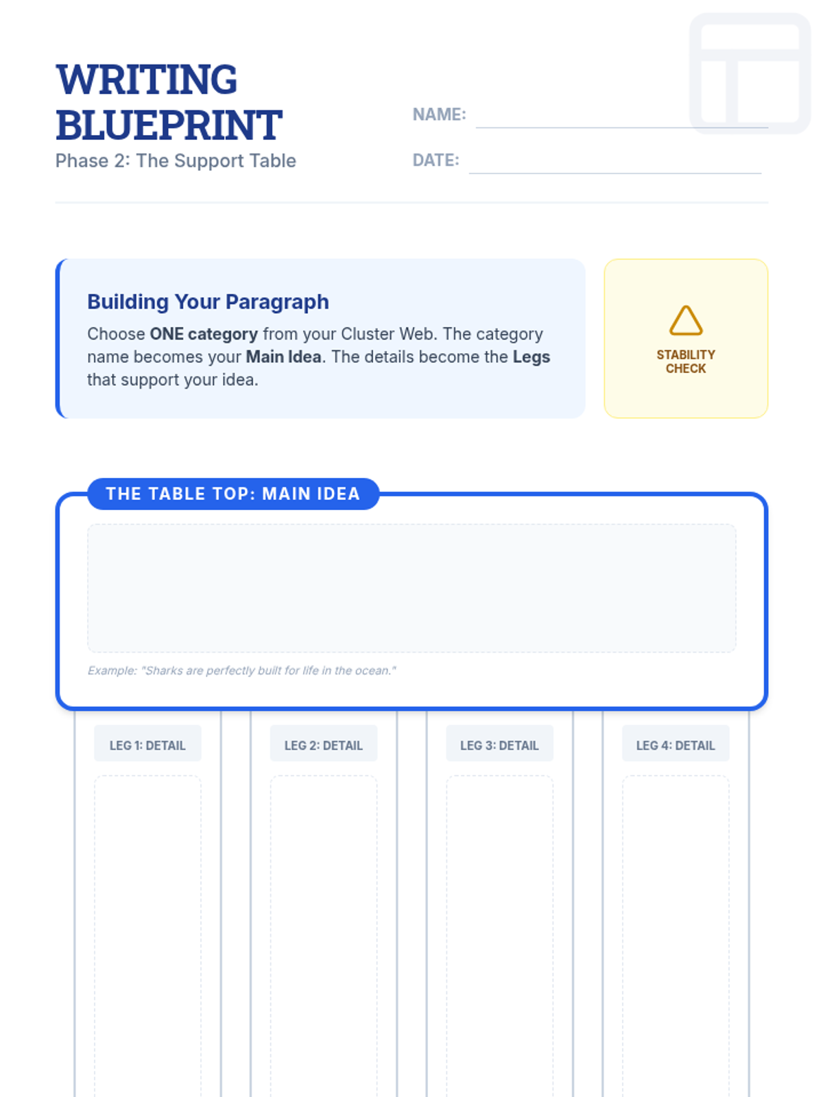 This sequence helps 6th-grade students with executive functioning needs transition from brainstorming to structured expository writing. Using the 'Blueprint for Writing' theme, students master visual organizers like web maps, table structures, and Venn diagrams to draft coherent informational articles.