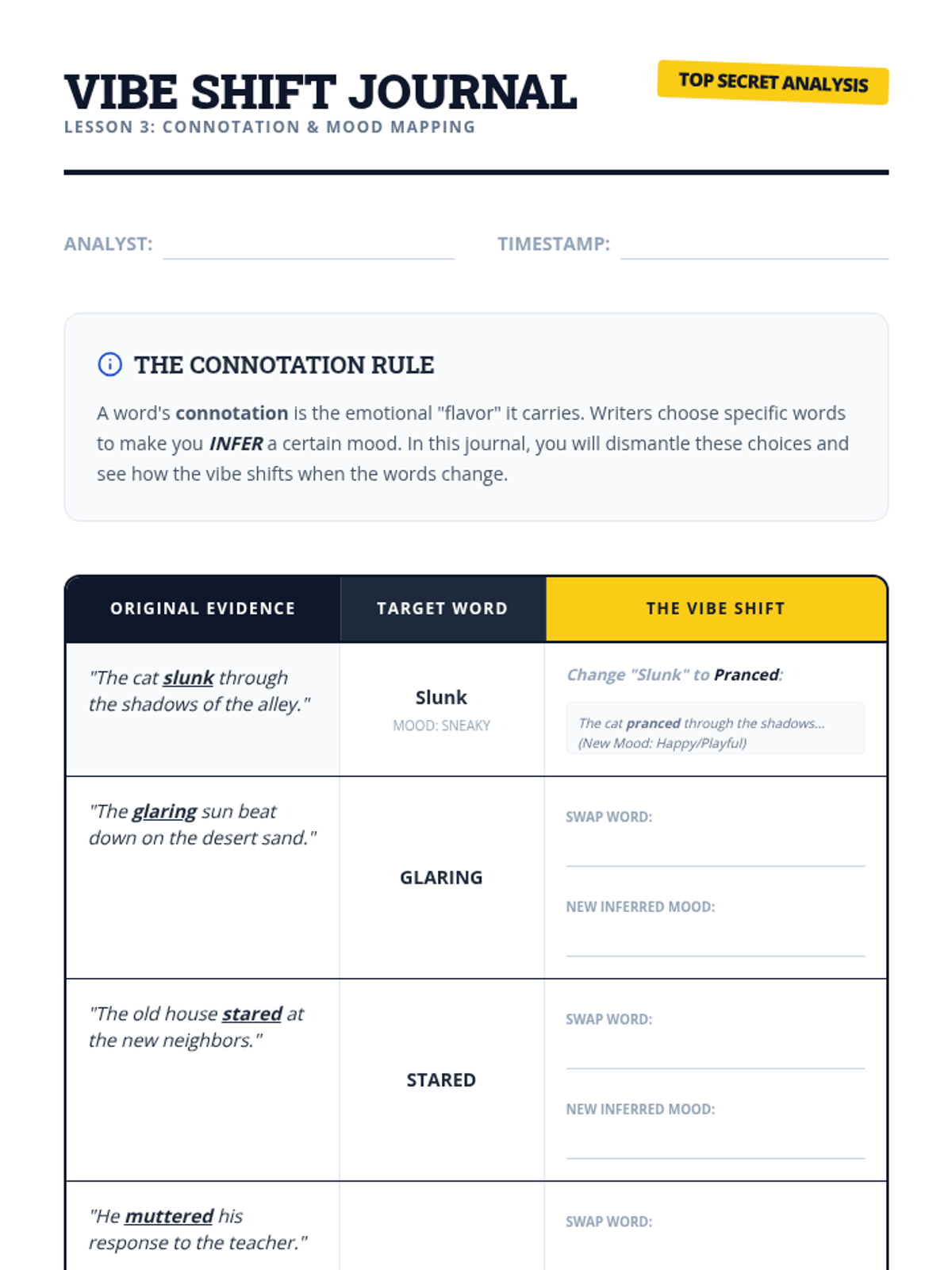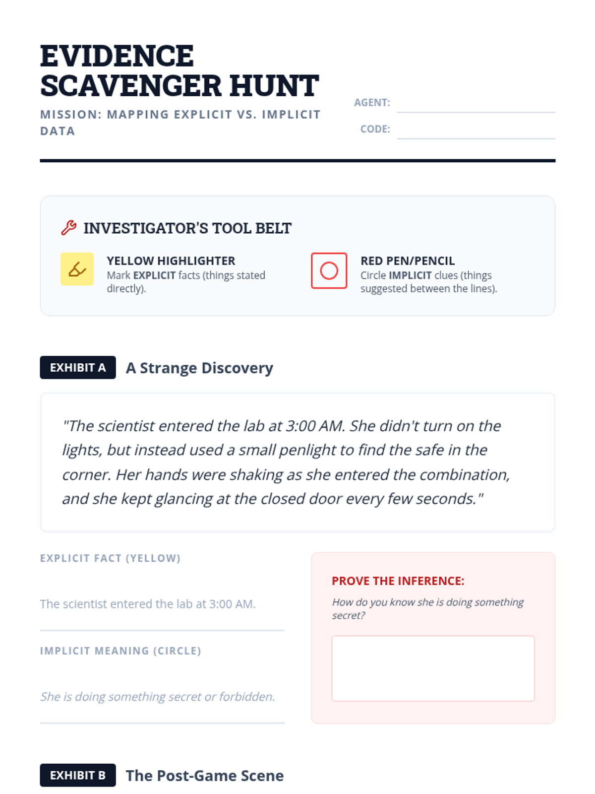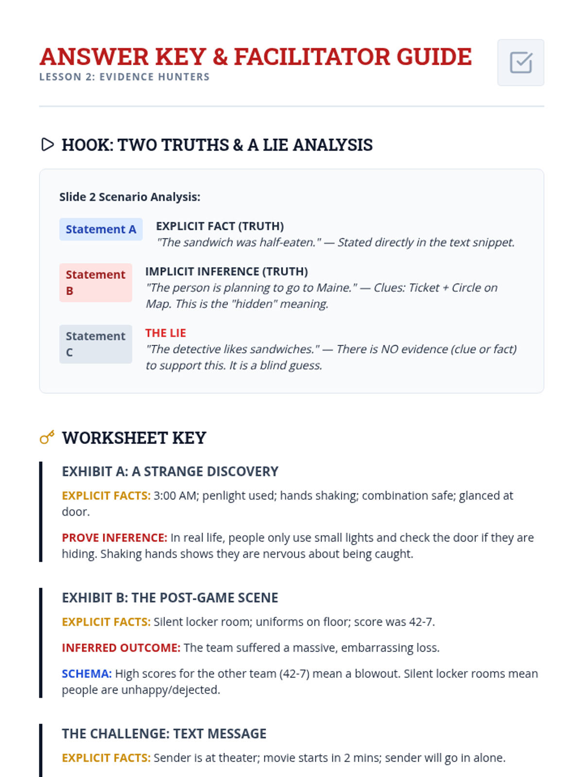 A structured ELA workshop sequence for 11th-grade academic support, focusing on the cognitive process of making inferences and predictions. Students move from visual analysis to complex text synthesis using the 'Evidence + Schema = Inference' equation.