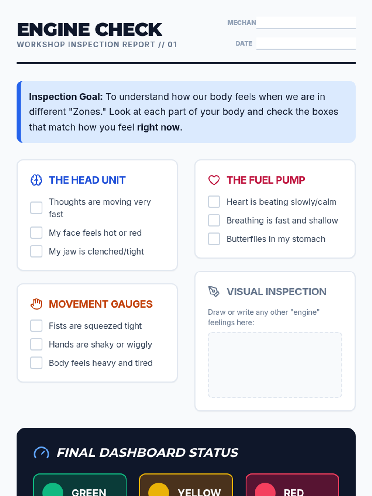 A comprehensive series of lessons for high school students focusing on the four Zones of Regulation. Students will learn to identify internal physical cues, external triggers, and specific coping strategies to manage low-energy (Blue), regulated (Green), elevated (Yellow), and extreme (Red) states.