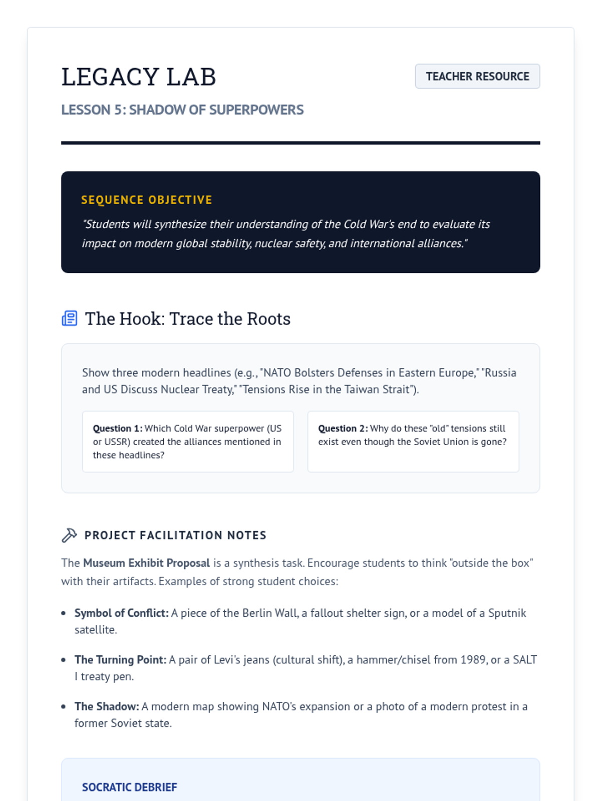 This sequence explores the final chapters of the Cold War, from the diplomatic easing of tensions to the dramatic collapse of the Soviet Union and its lasting impact on modern global politics.